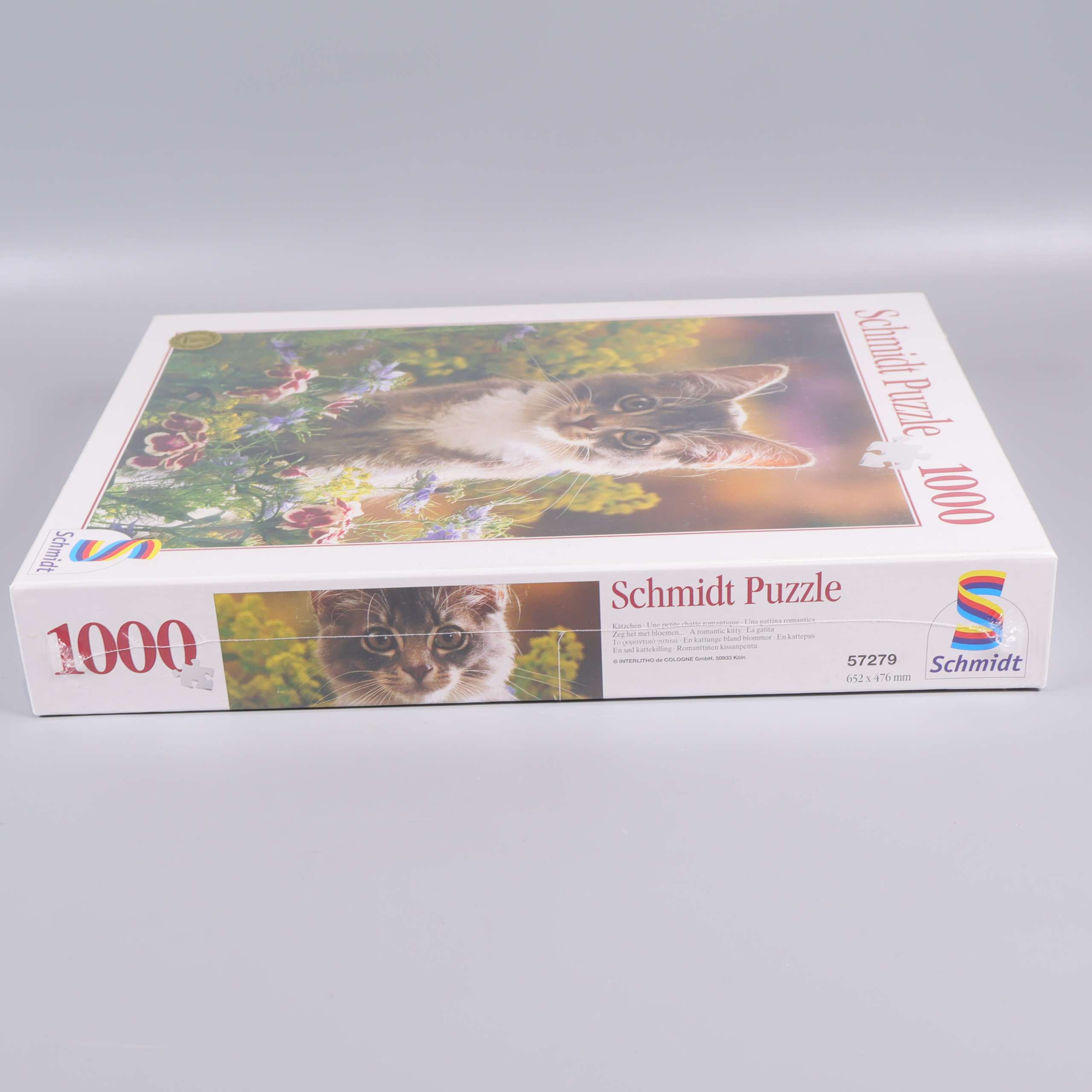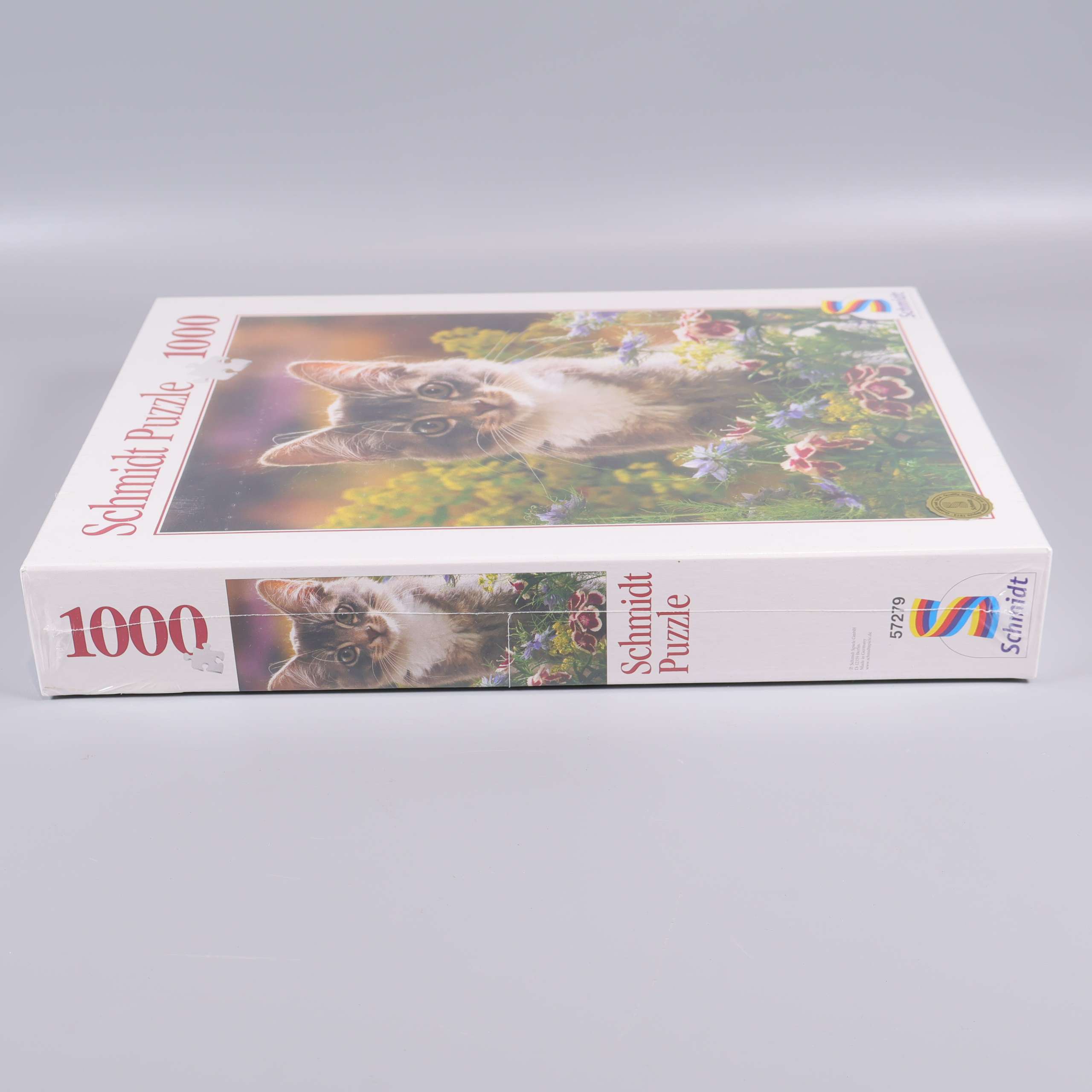 Ett charmigt pussel med ett detaljrikt kattmotiv omgiven av blommor och grönska. Med 1000 bitar får du både en kreativ utmaning och en färgsprakande bild att lägga.