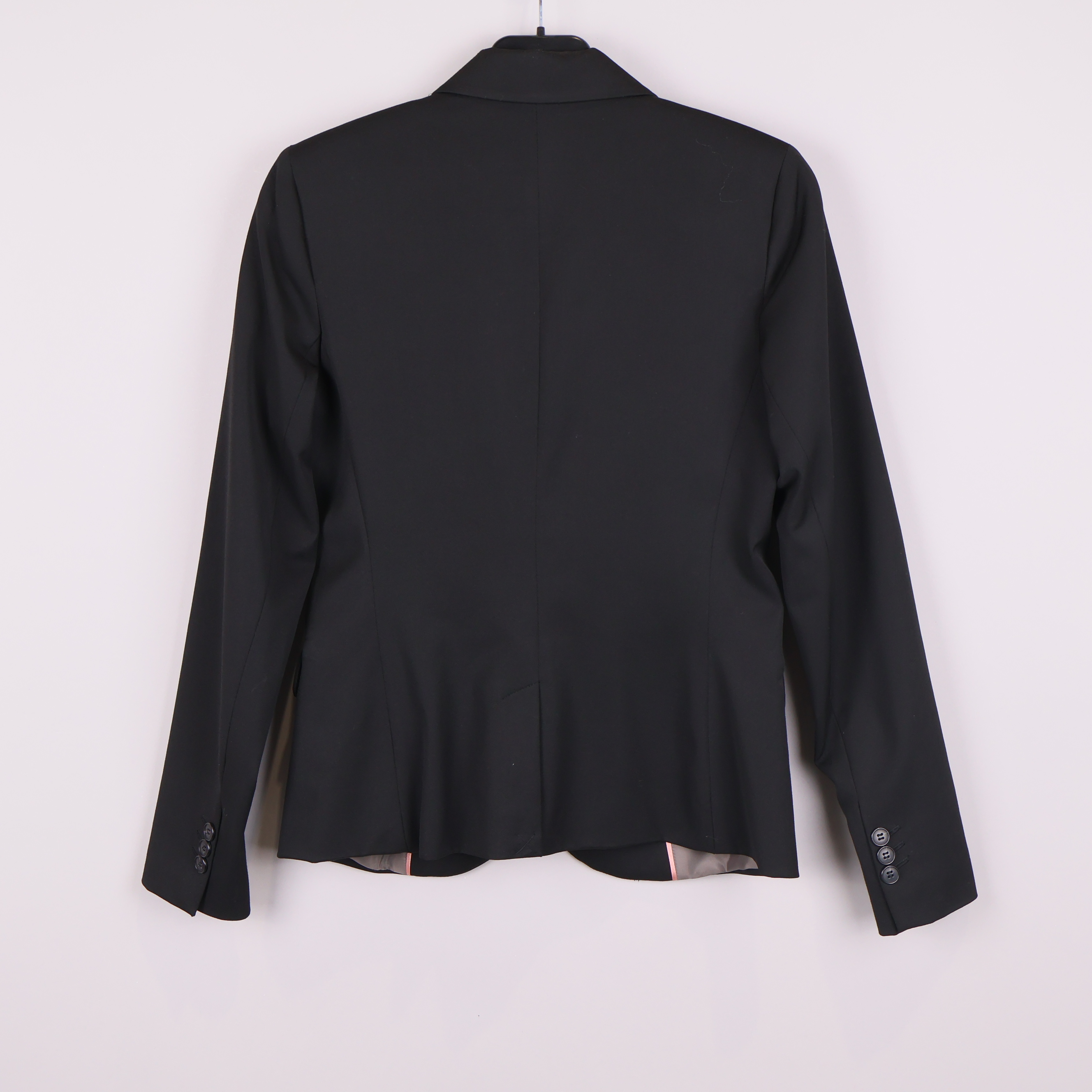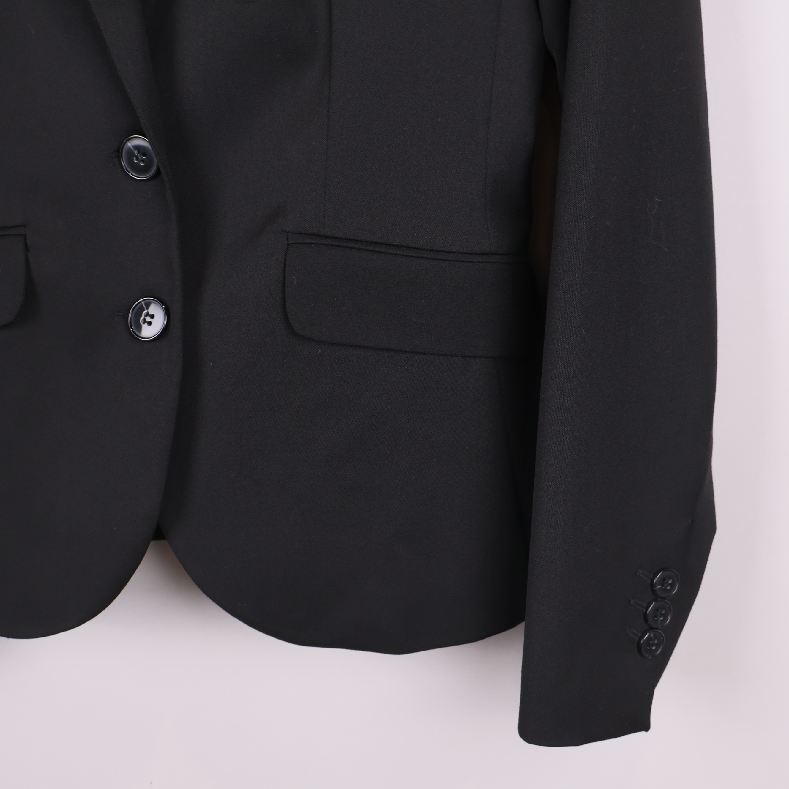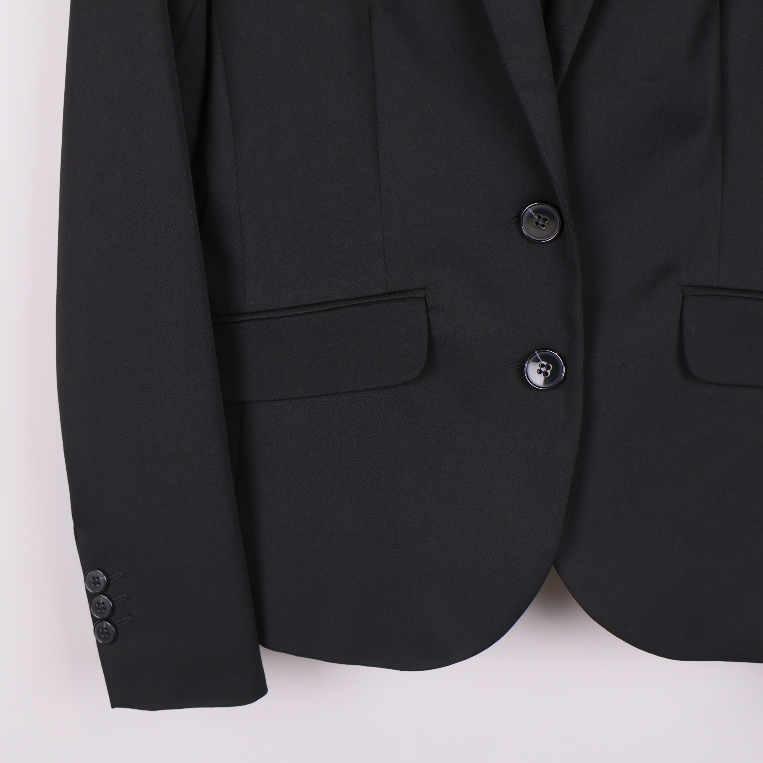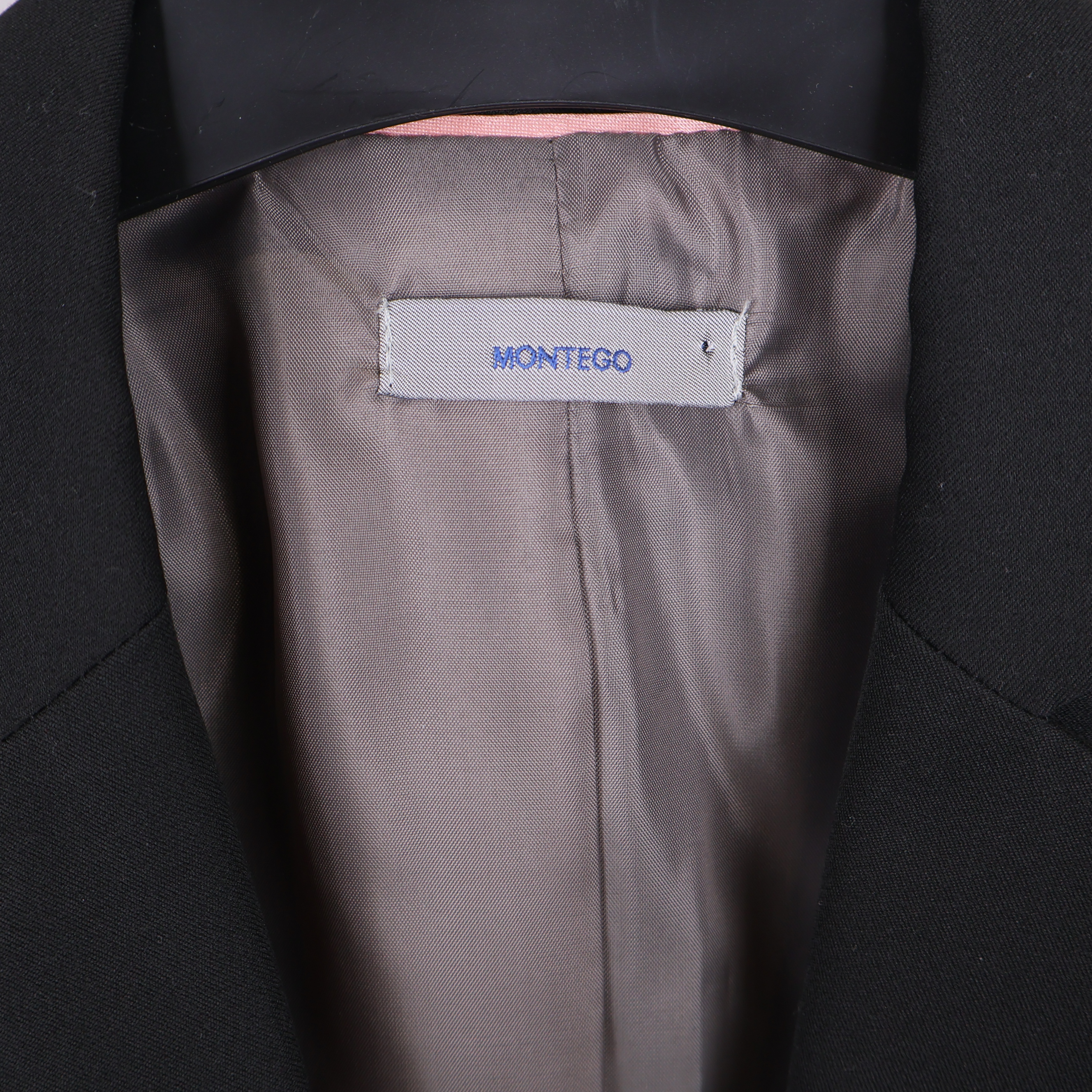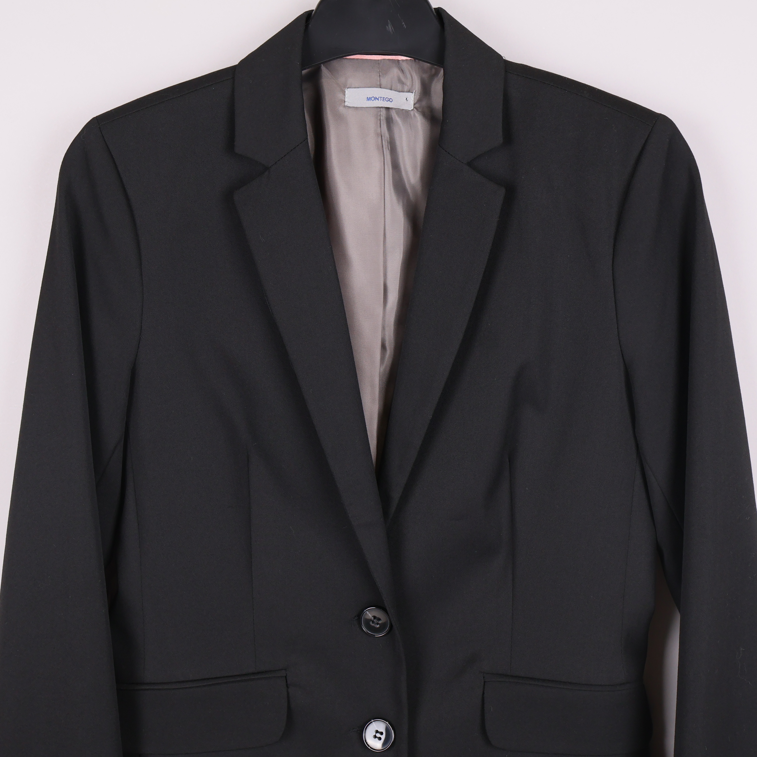 Stilren svart kavaj från Montego med två knappar framtill och klassiska slag. Den har raka ärmar, två fickor med lock och smidig innerficka.
