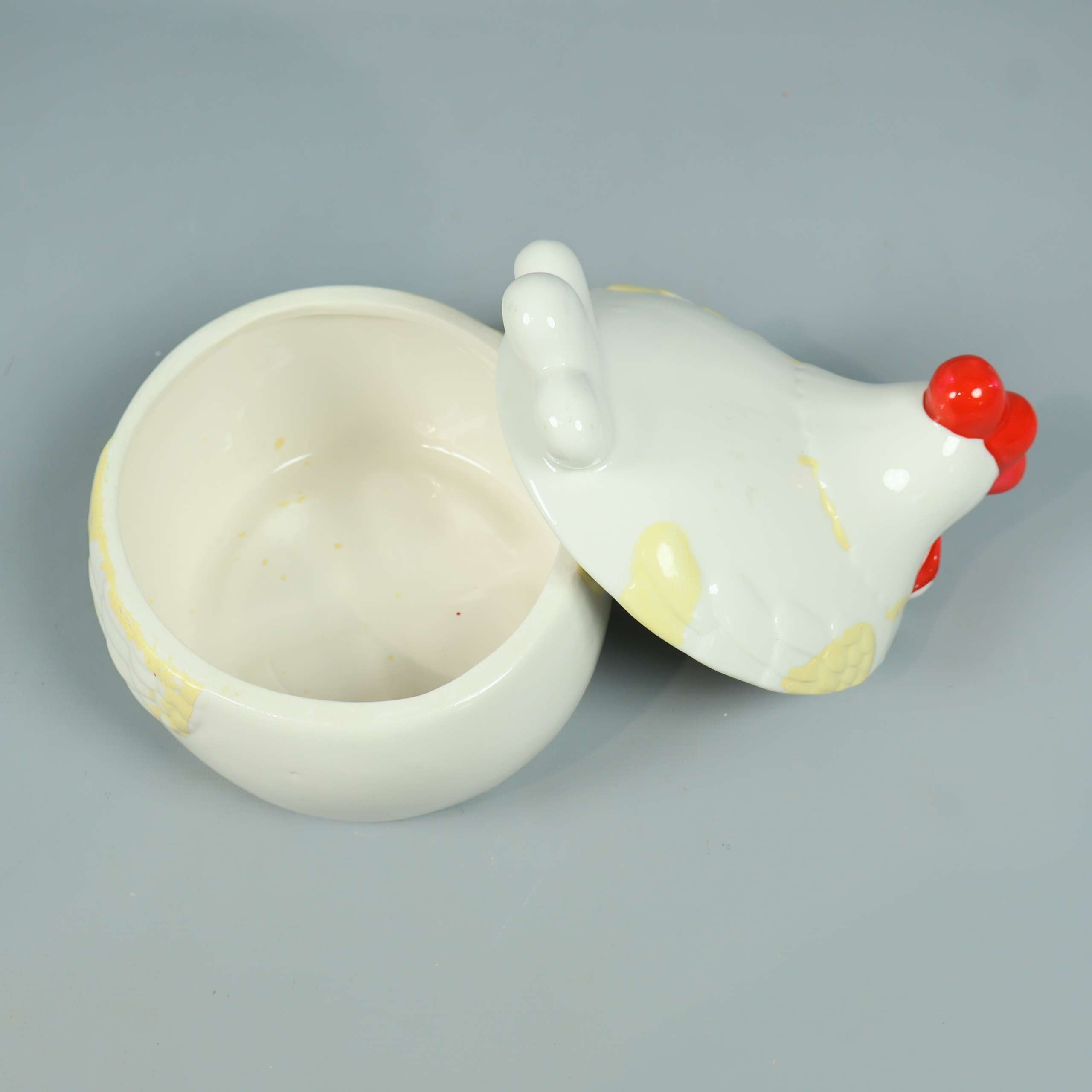 Keramisk burk med hönsmotiv
