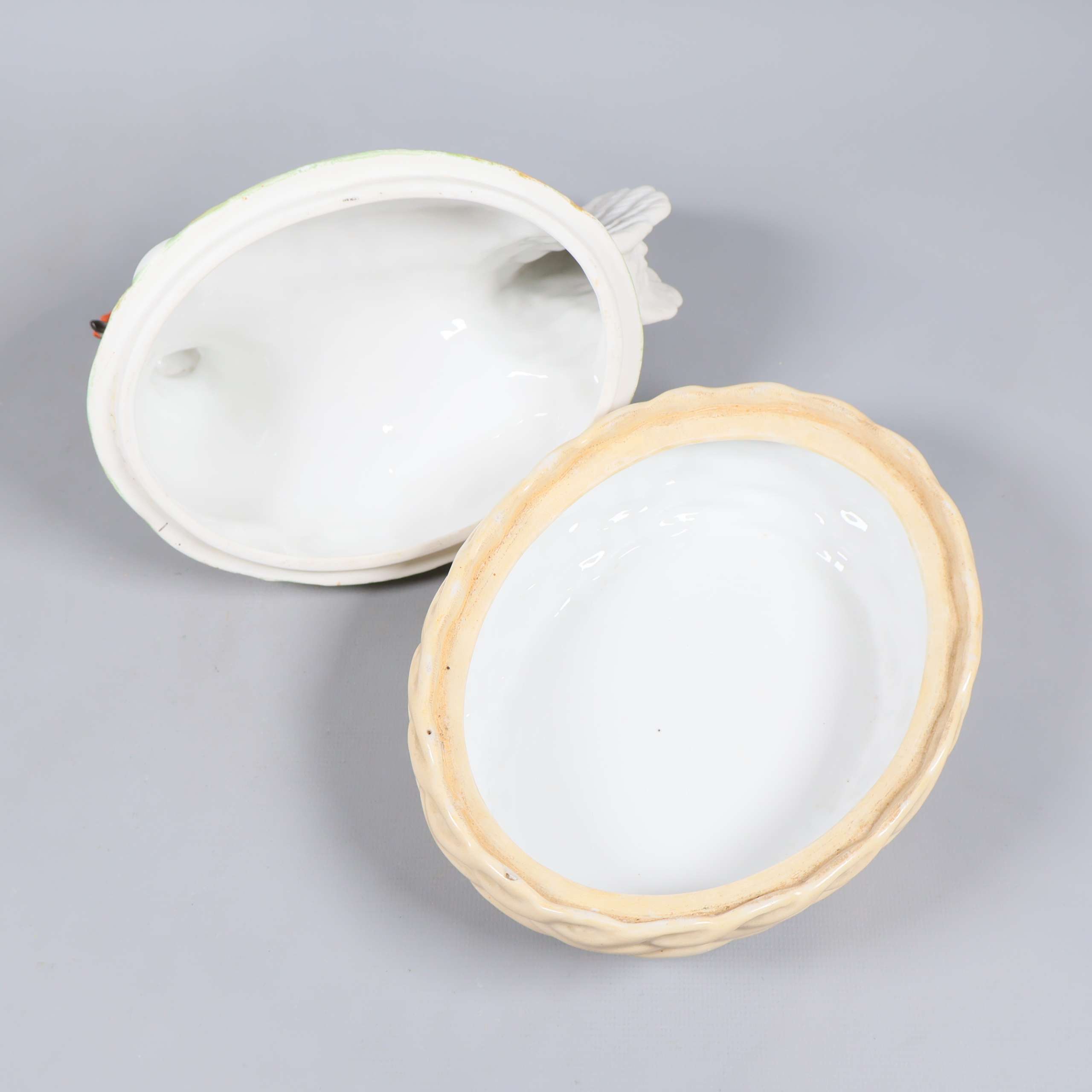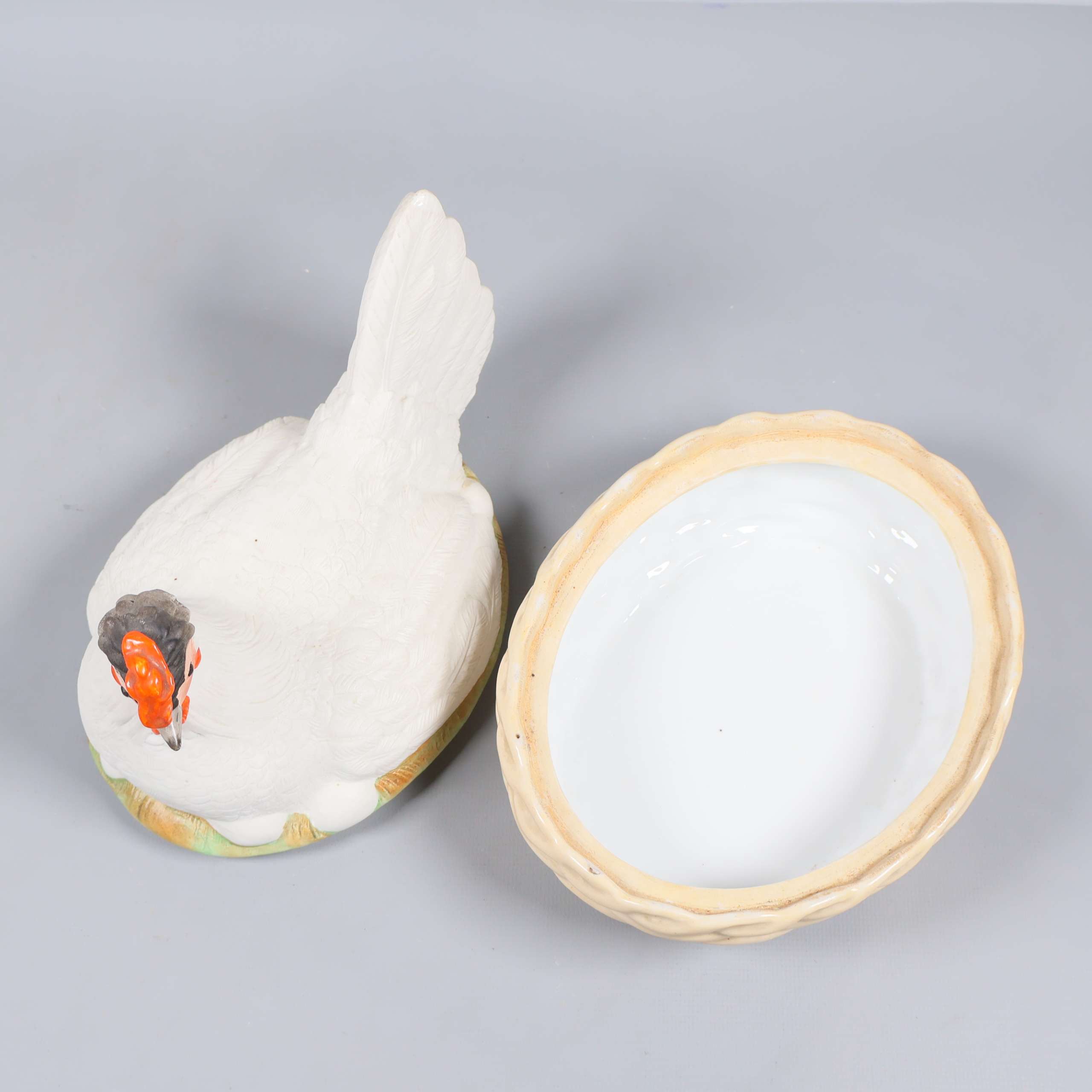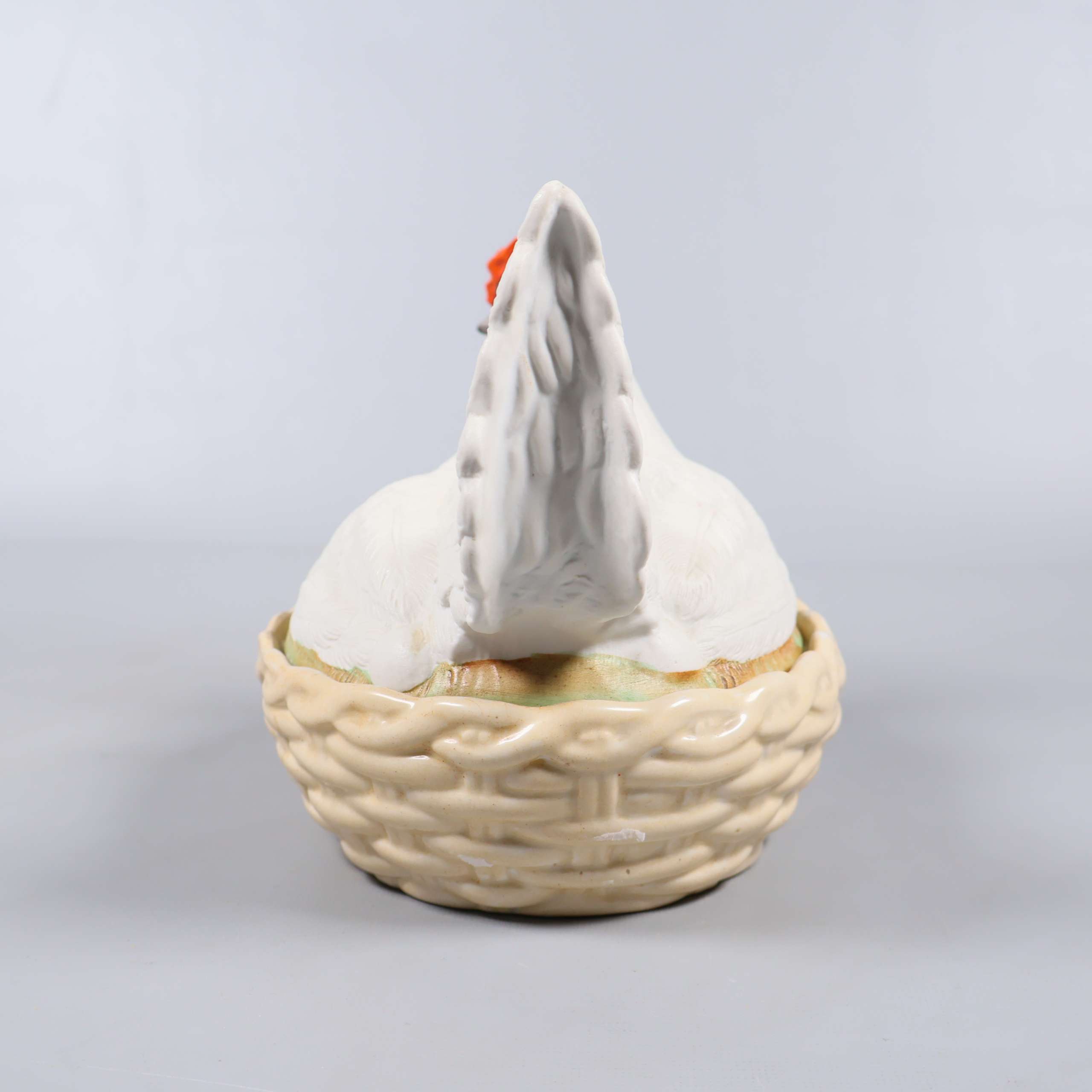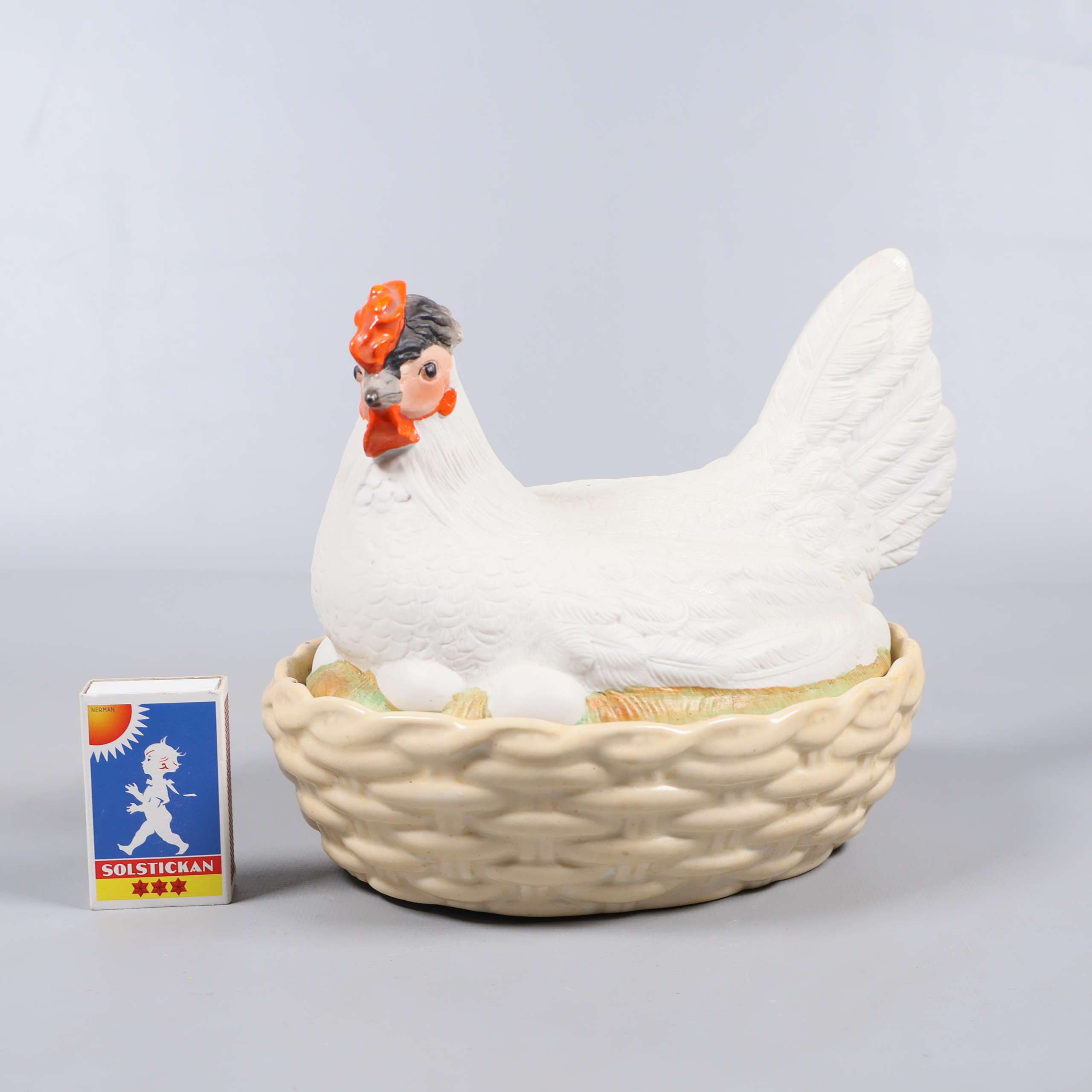 Keramisk kycklingform med lock 169 kr Product variation Antal st Beskrivning Charmig kycklingform med lock, tillverkad i keramik och utformad som en vit höna på en flätad korg. Insidan är glaserad för enkel rengöring och designen har lekfulla detaljer i orange och grått. Perfekt som dekoration eller förvaring. Visa all beskrivning Detaljer Höjd: 17 cmLängd: 21 cm Skick Gott skick Produkten har använts men är av fin kvalitet, det kan förekomma mindre förslitningar. Läs mer om hur vi bedömer Färg Vit Material Keramik Produkten är unik och finns enbart som 1 st i lager. Fri frakt på alla köp över 990 kr. 14 dagars ångerrät.