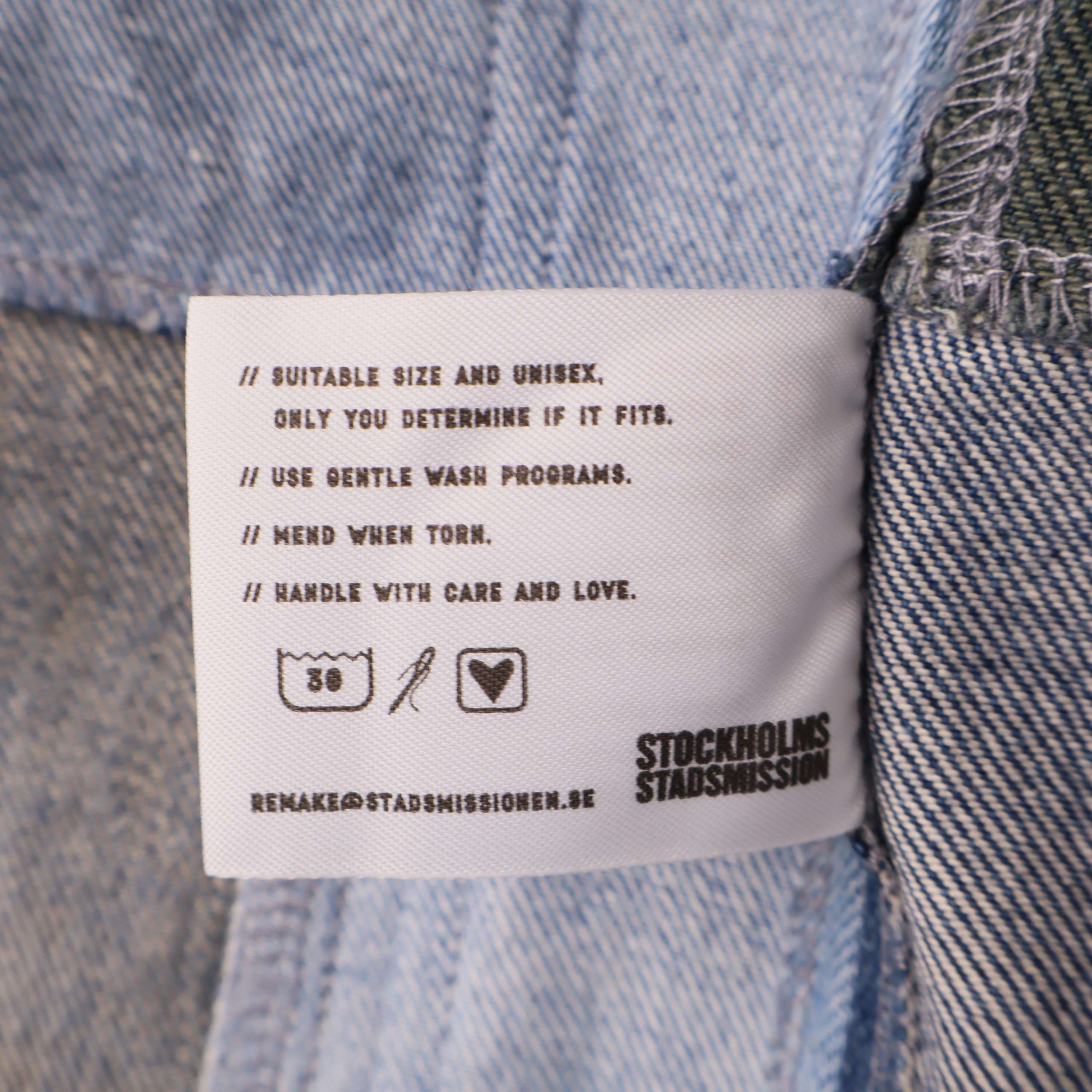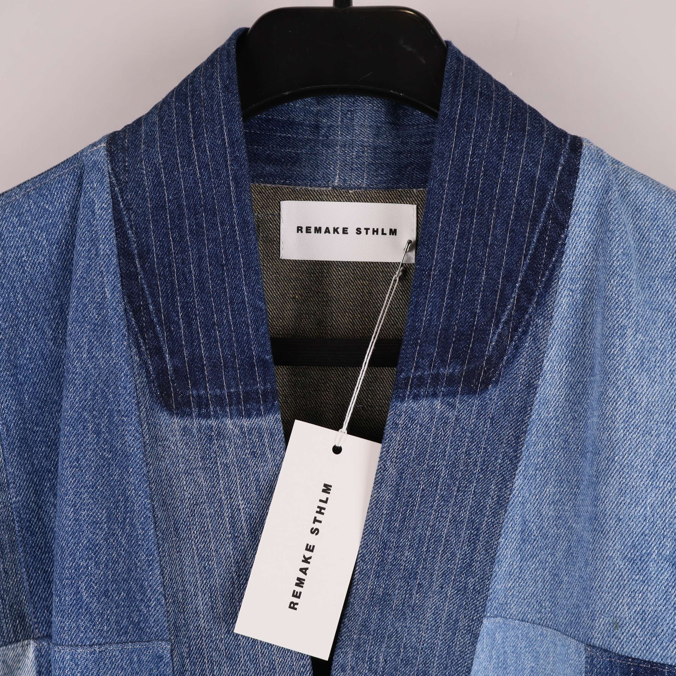 Jackan Kami är en Remake klassiker. Jackan är sydd av metervara gjord av återvunna denimjeans. Modellen är kimonoinspirerad, höftlång med lång ärm. Varje jacka är unik och har fina detaljer från orginaljeansen. Kami är lätt att kombinera med andra plagg och blir snabbt en favorit i garderoben. Detta unika plagg är patchad av denim.
