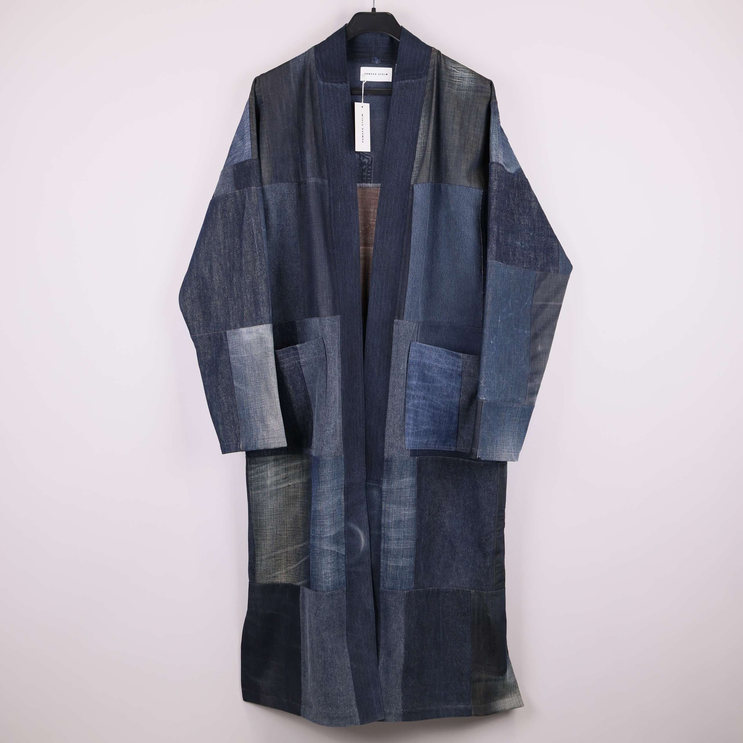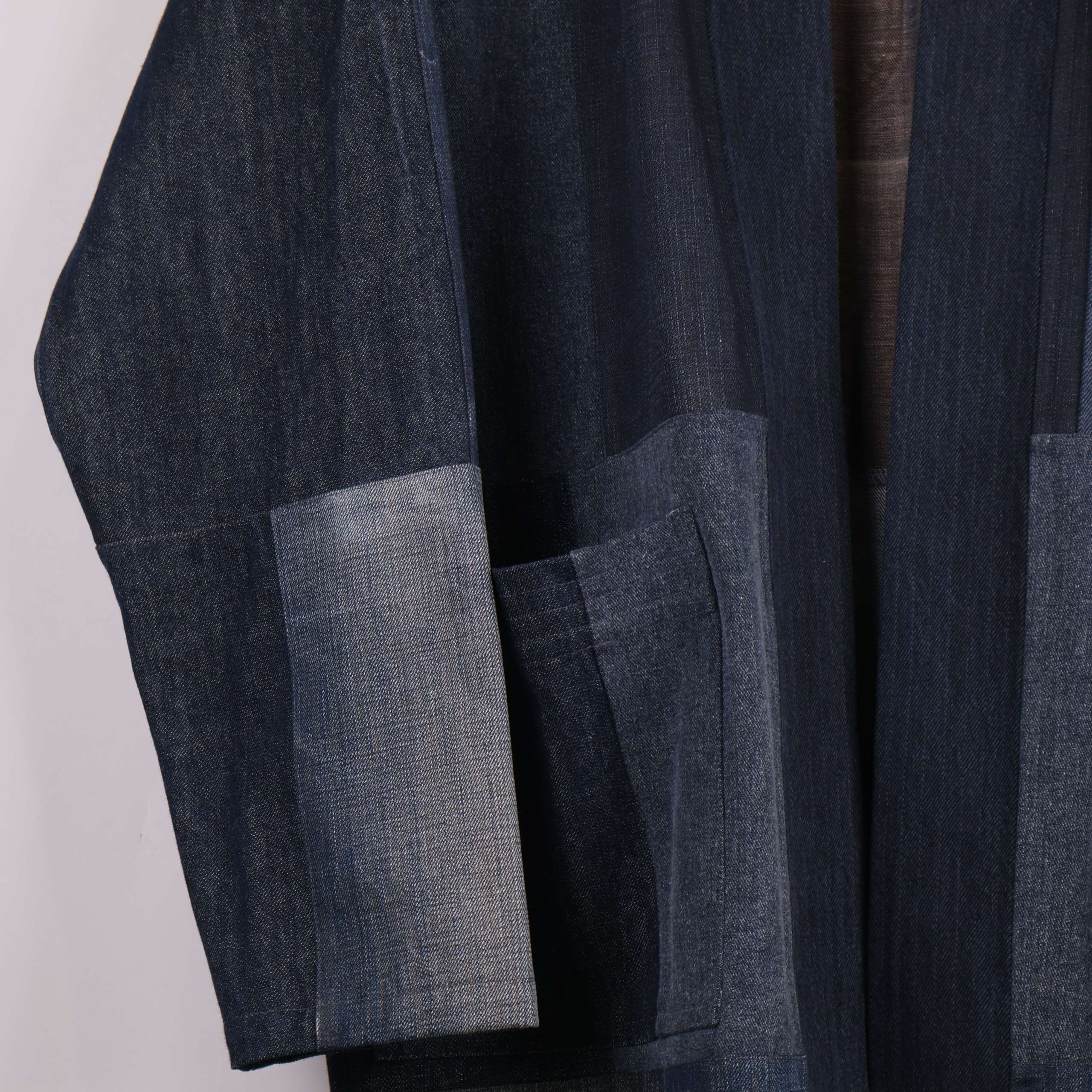Kimonoinspirerad Kami Lång denim patchwork kappa Mörkblå