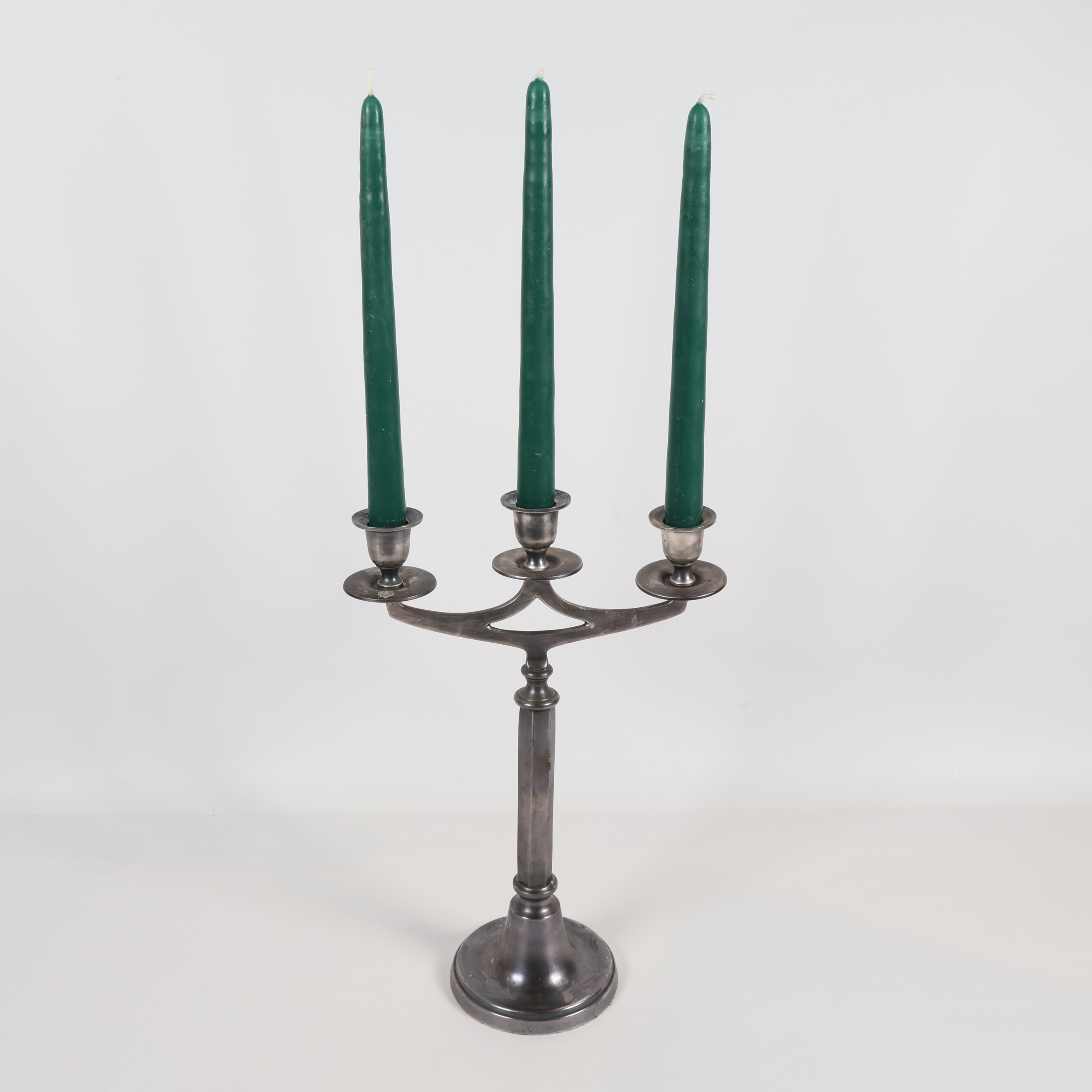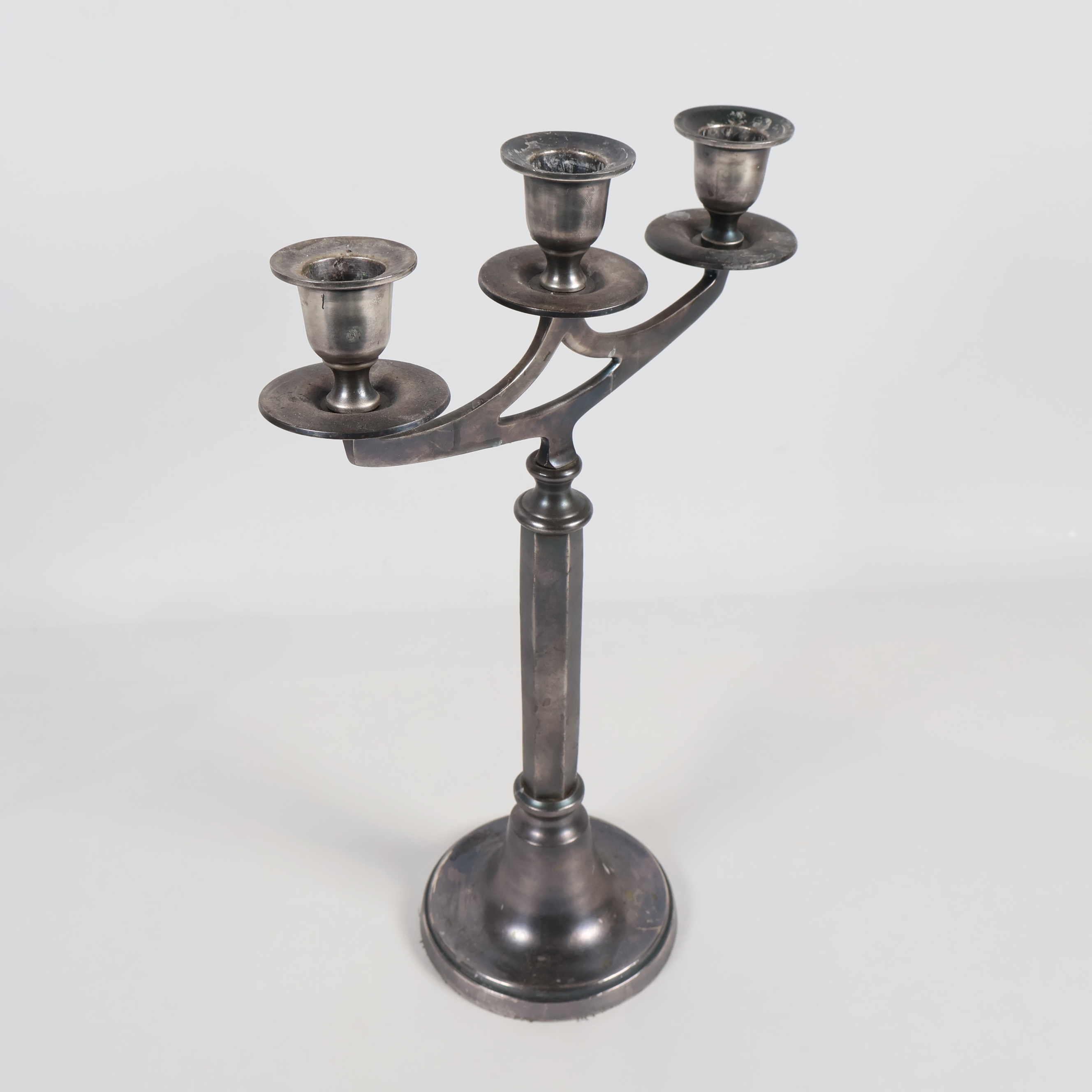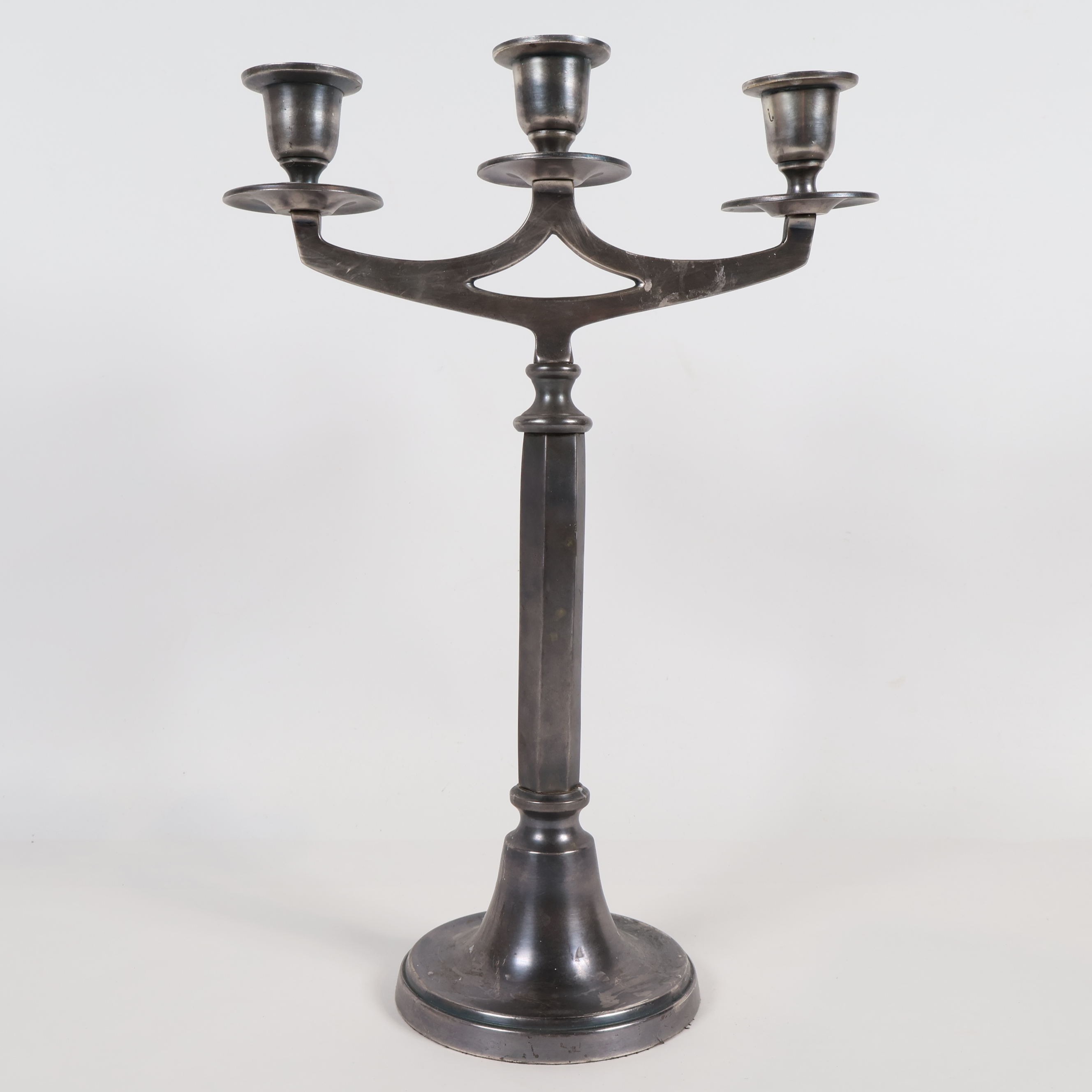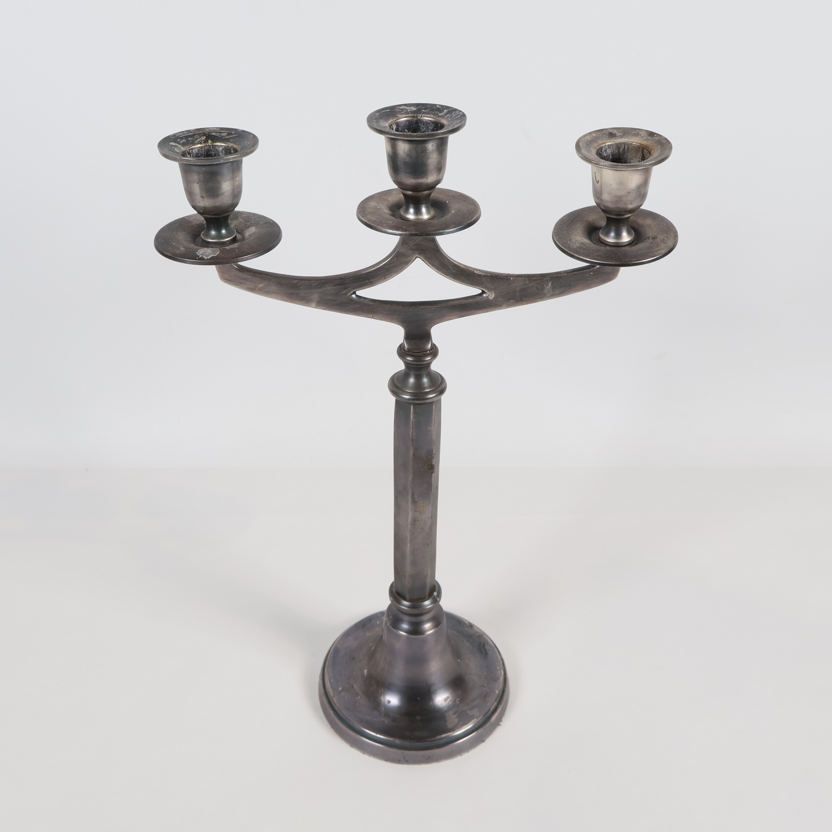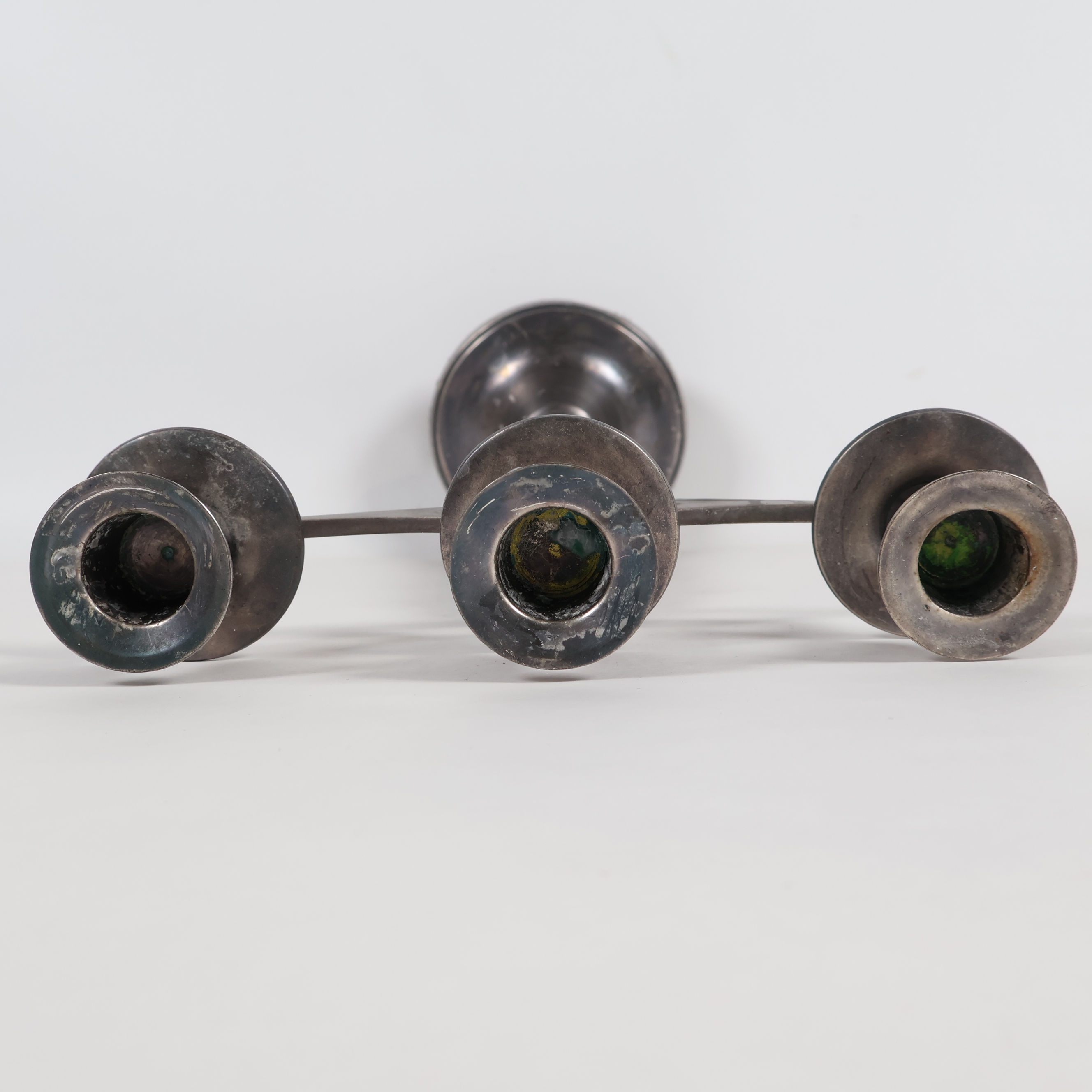 Elegant ljusstake med tre armar och tidlös design i metallfärg. Ytan har en matt, något patinerad look, vilket ger en charmig vintage vibe till ditt hem. Övrigt: Repig fot (bild 5), Stearinrester