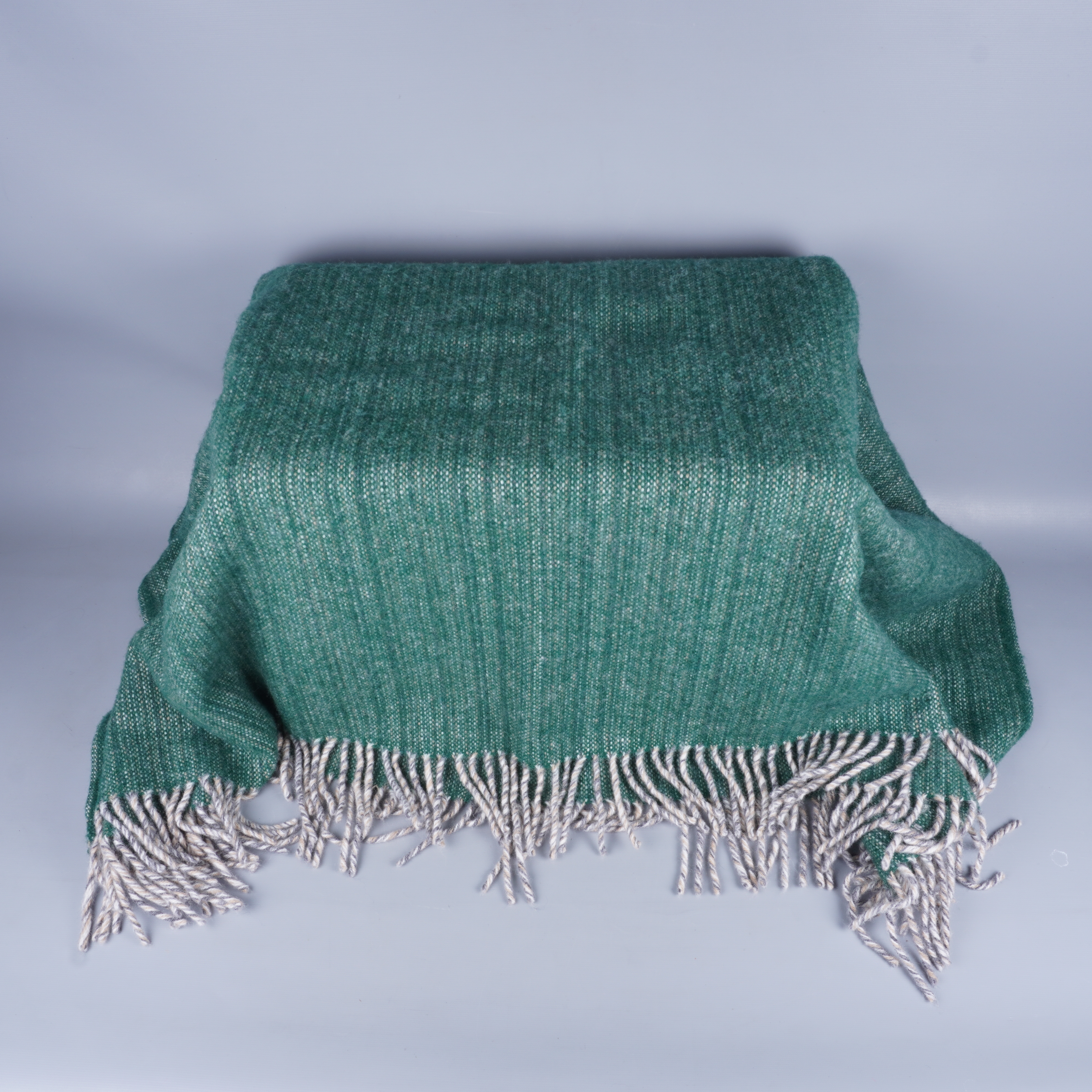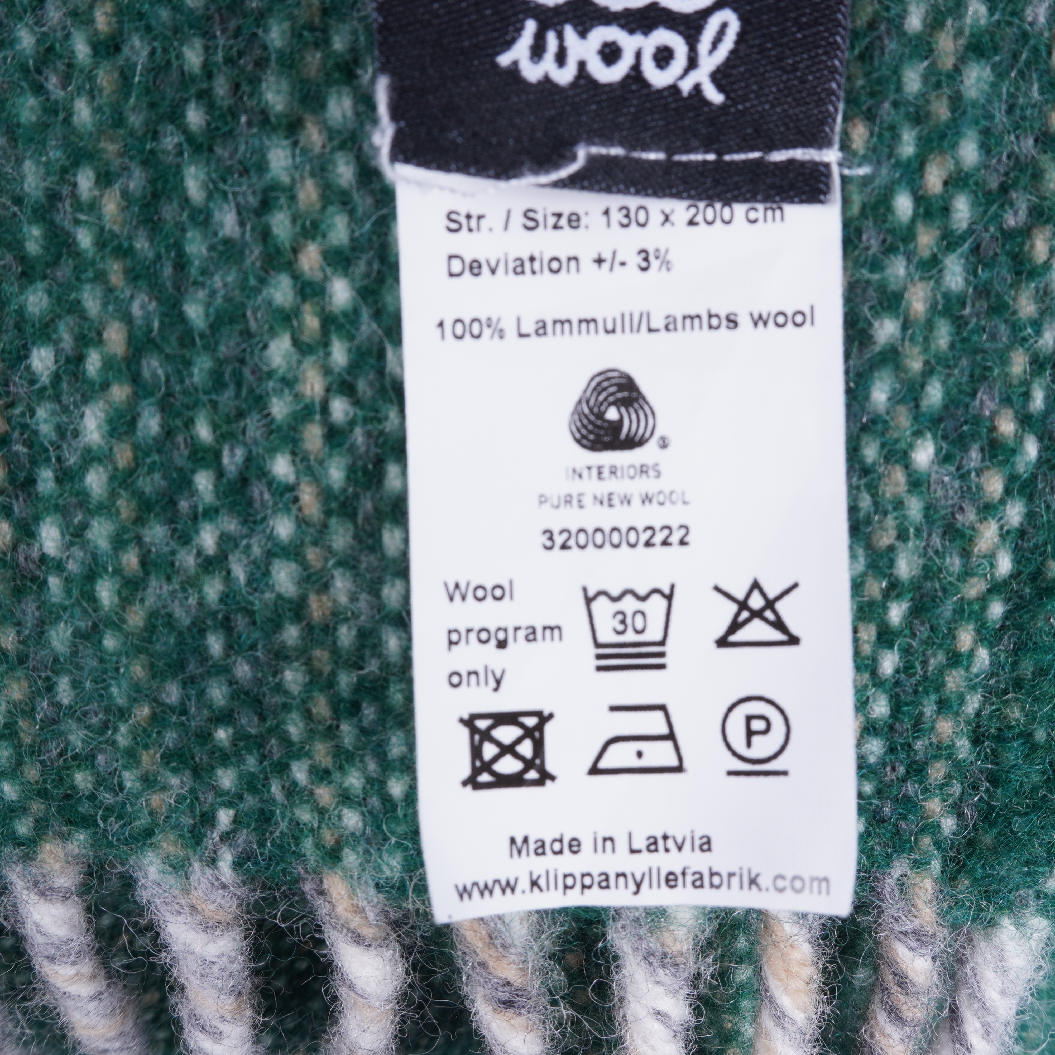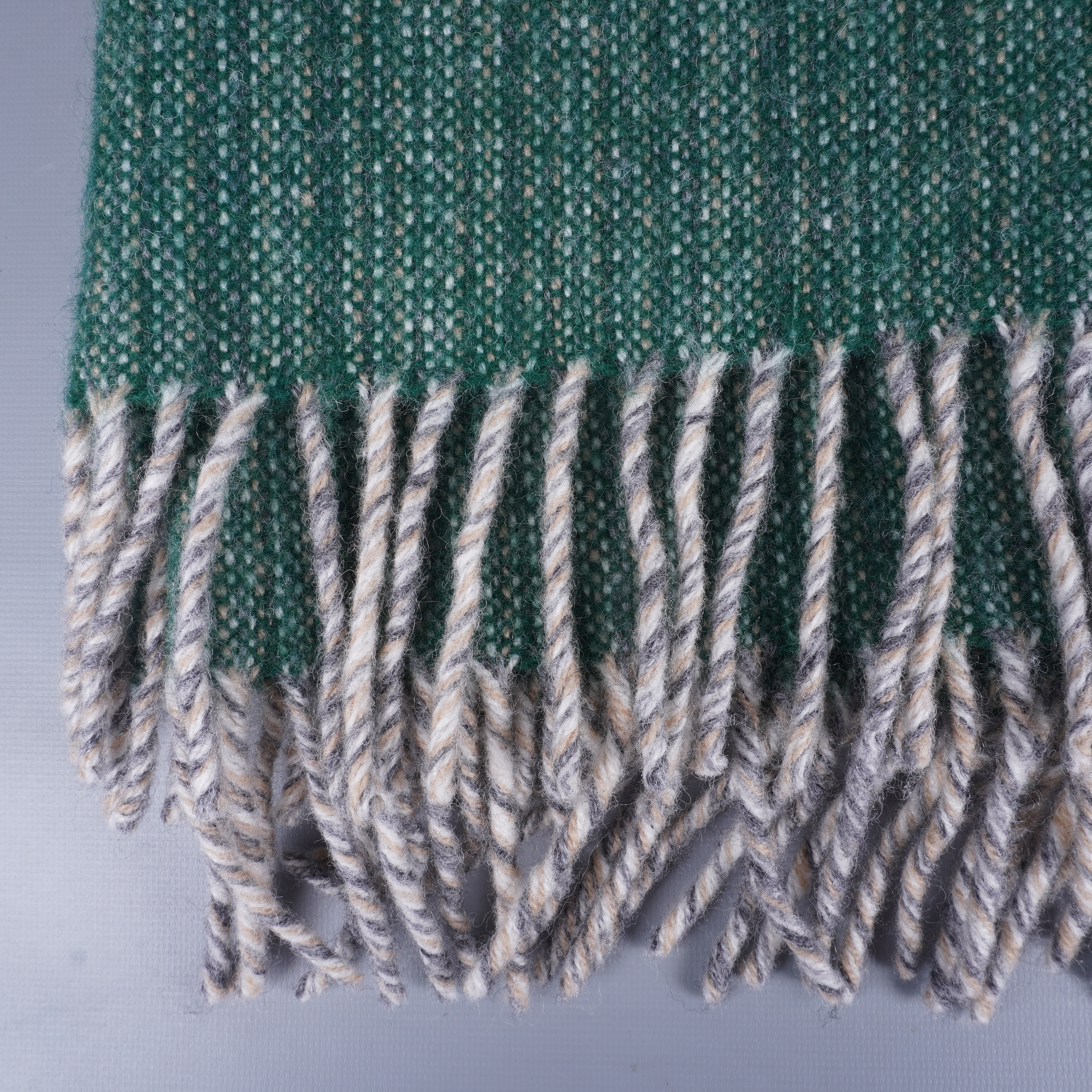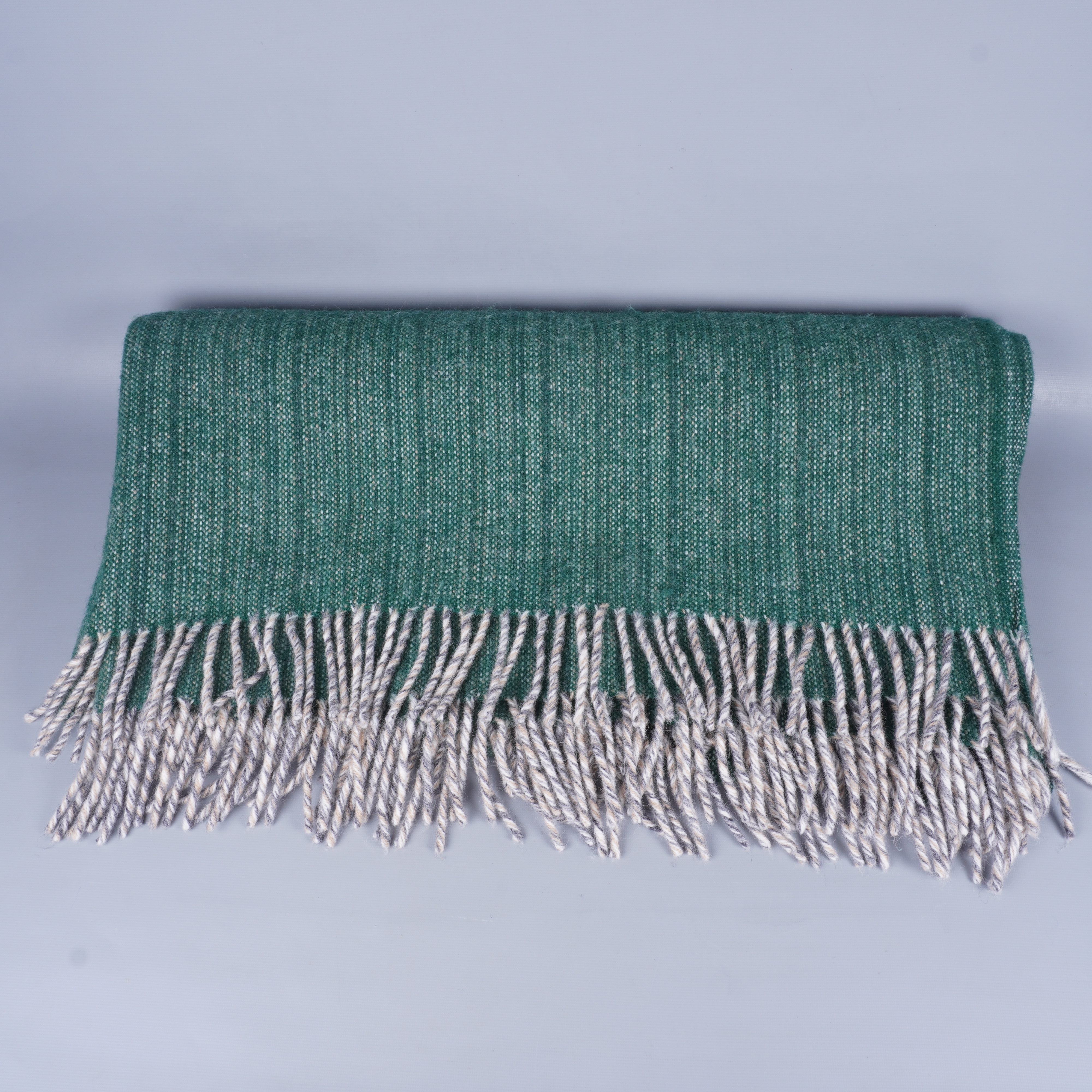 Klippan - Grön lammulls filt med fransar