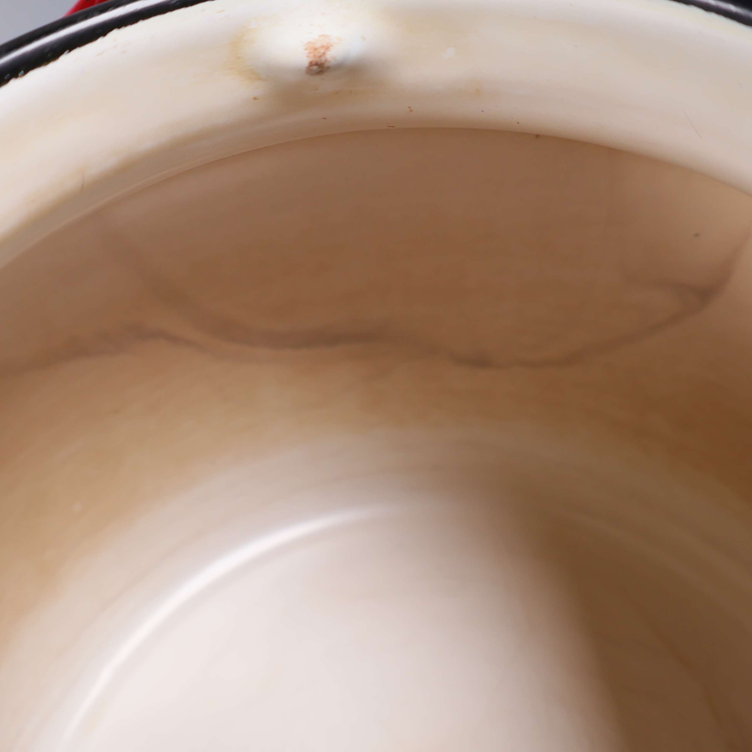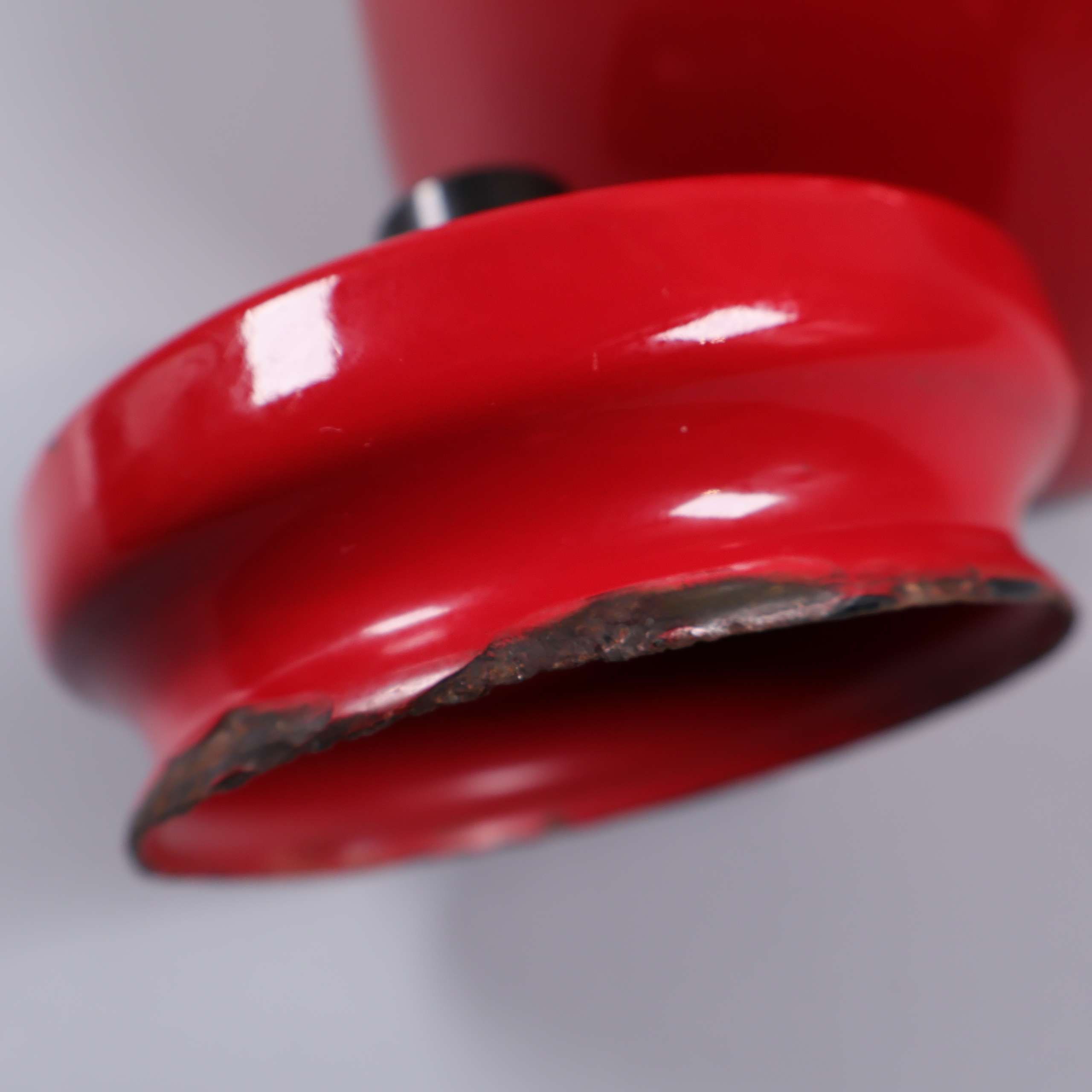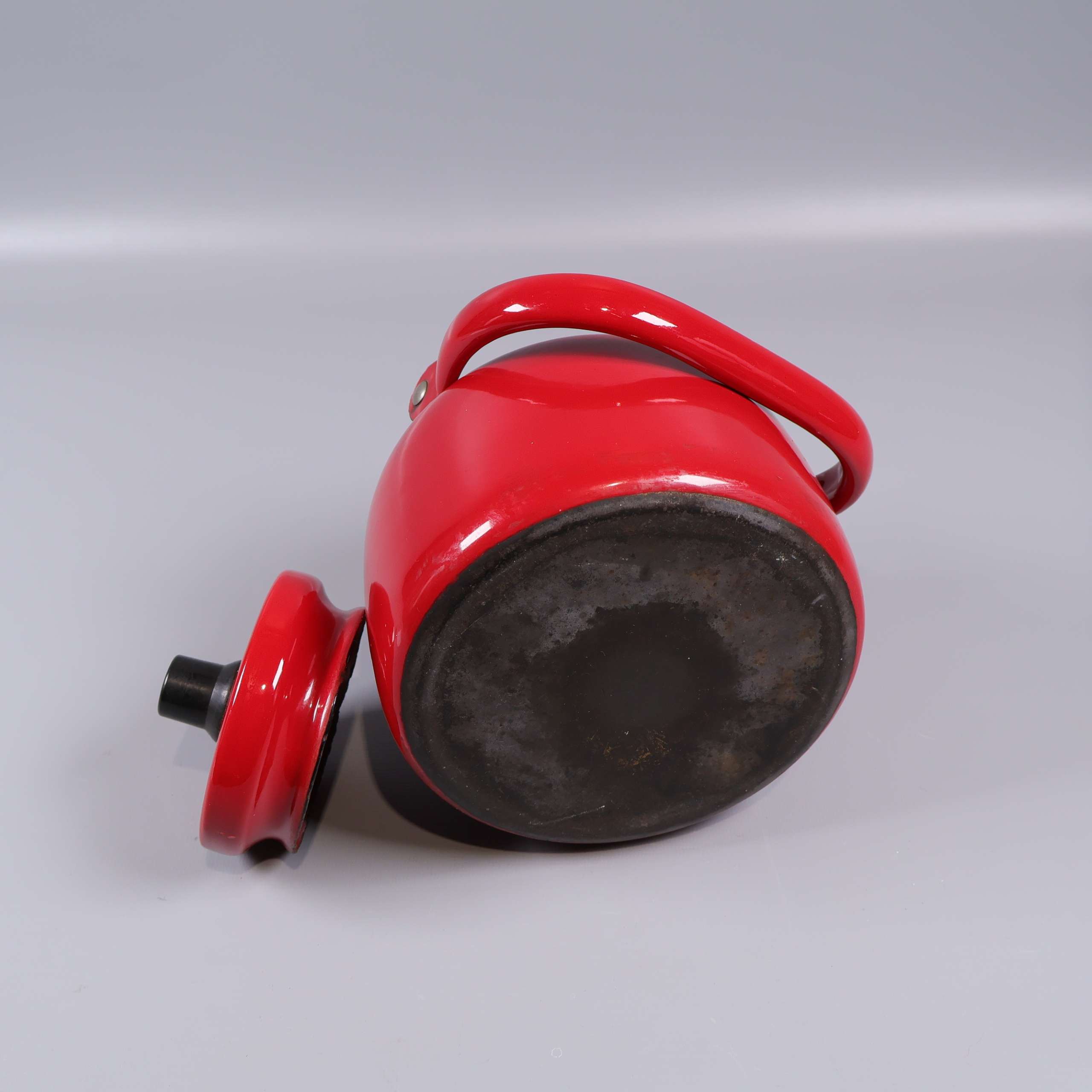 Kockums Kockums - Röd emaljerad vattenkittel - 2 liter 259 kr Product variation Antal st Beskrivning Stilren vattenkittel med blank röd finish, generös handtag i metall och stor pip för smidig upphällning. Invändigt ljust emaljerad och rymmer 2 liter. Locket har svart vred och viss patina som ger en retro känsla. Visa all beskrivning Skick Använt skick Produkten har blivit använd och kan ha slitits eller ha mindre skador Läs mer om hur vi bedömer Dimensions Höjd: ca 18cm, Bredd: ca 24cm, Öppning: ca 10cm Färg Röd Material Emalj Varumärke Kockums Produkten är unik och finns enbart som 1 st i lager. Fri frakt på alla köp över 990 kr. 14 dagars ångerrät.