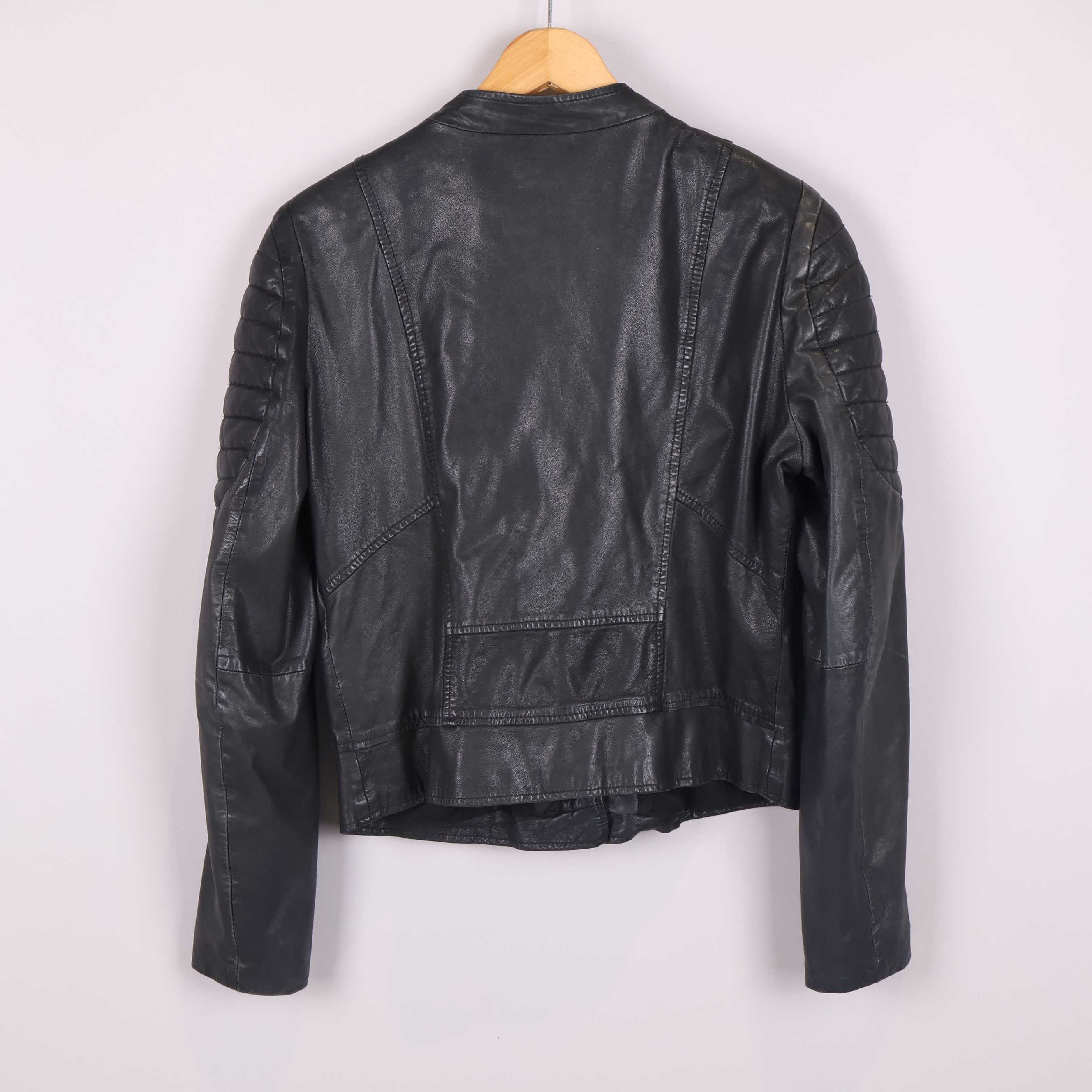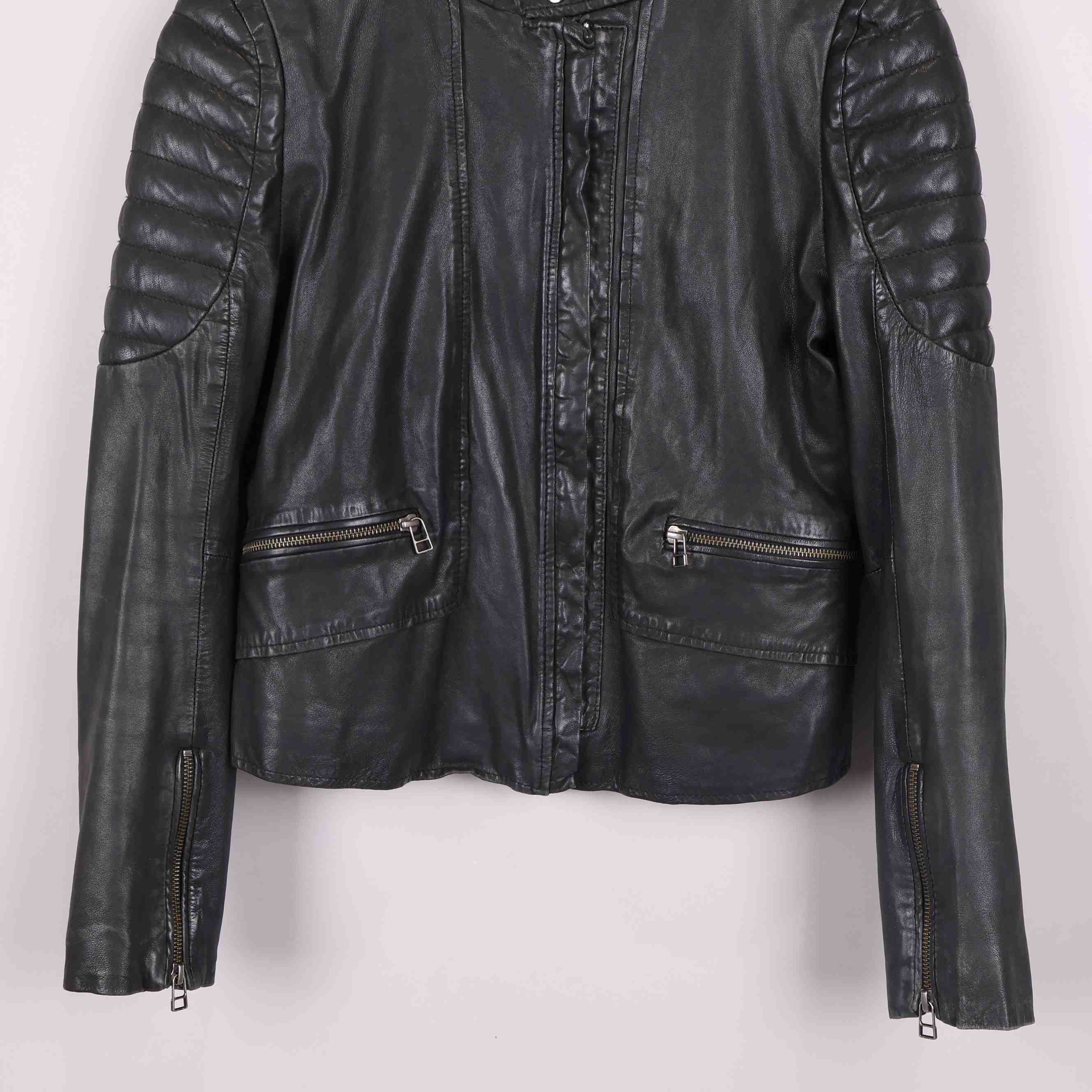 Stilren bikerjacka med kort passform och markerade detaljer på axlar och armbågar som ger en edgy känsla. Dragkedja framtill och snedställda fickor samt diskreta dragkedjor vid ärmsluten. Ytan har en klassisk läderlook som ger jackan ett tidlöst uttryck med känsla av rock chic.