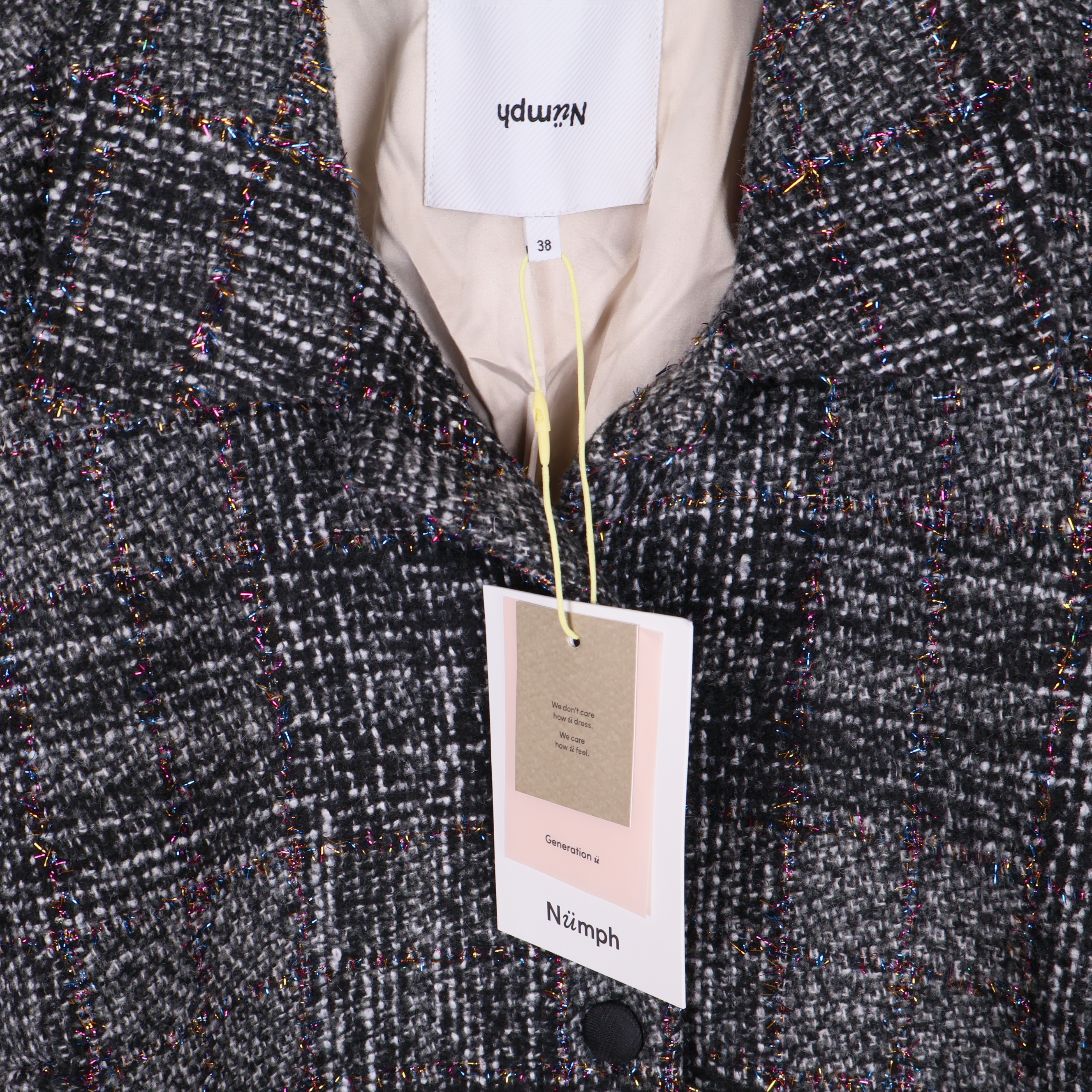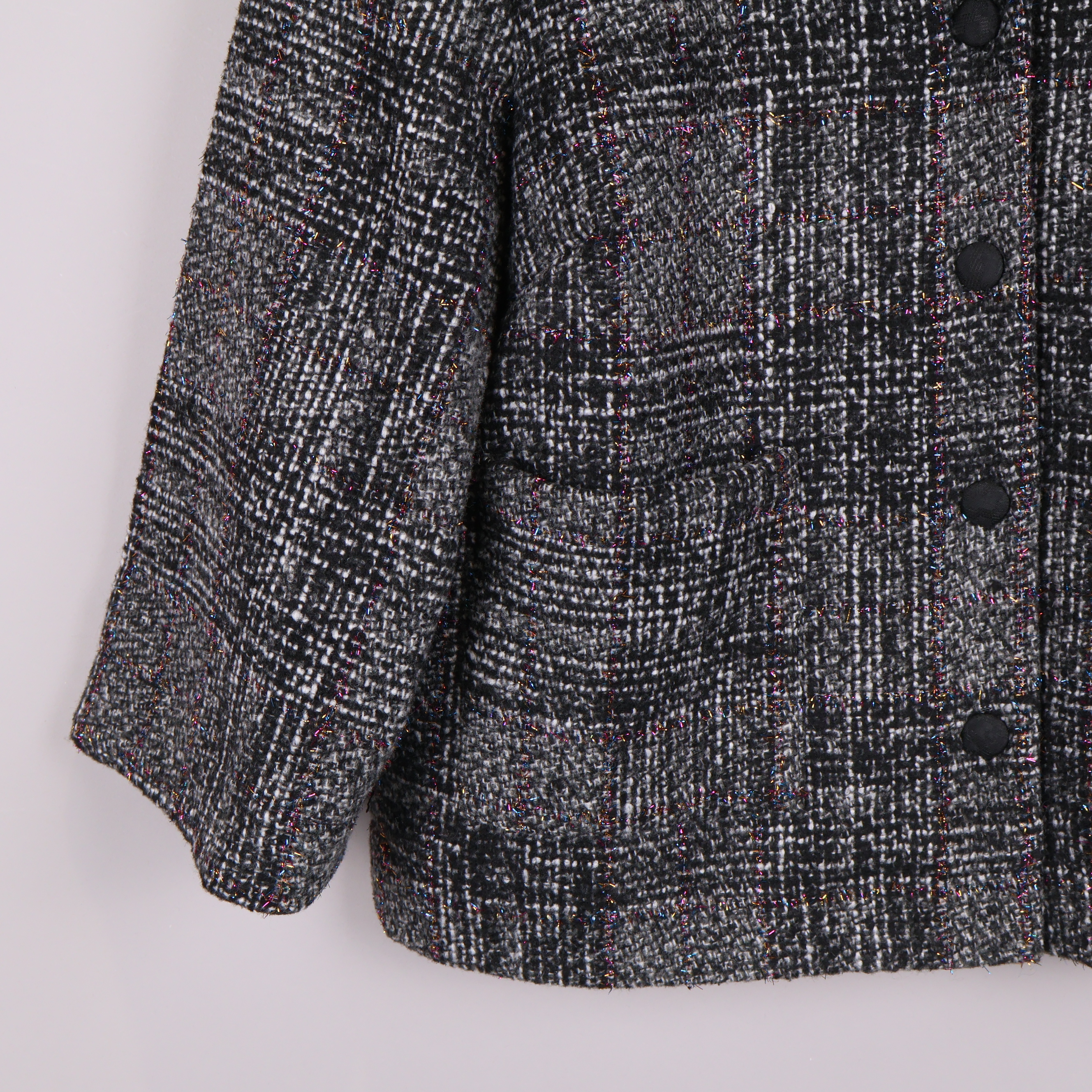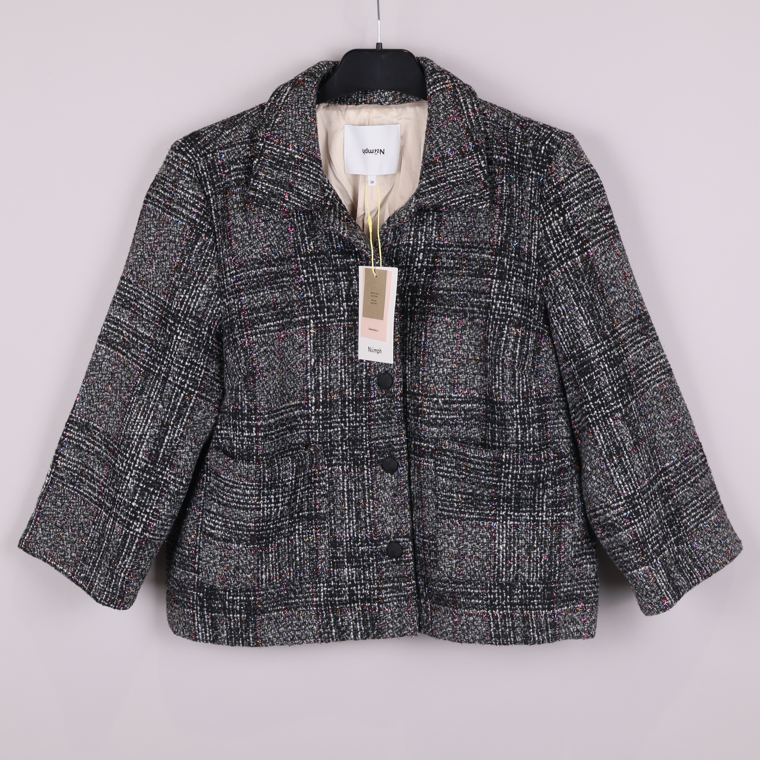 Stilren jacka med tydligt rutigt mönster och diskreta färginslag för ett modernt statement. Den korta modellen har klassisk krage, raka ärmar och knäppning framtill samt två praktiska framfickor. Ytan har en tvistad textur med mjuk känsla. Vadderad insida ger extra komfort.