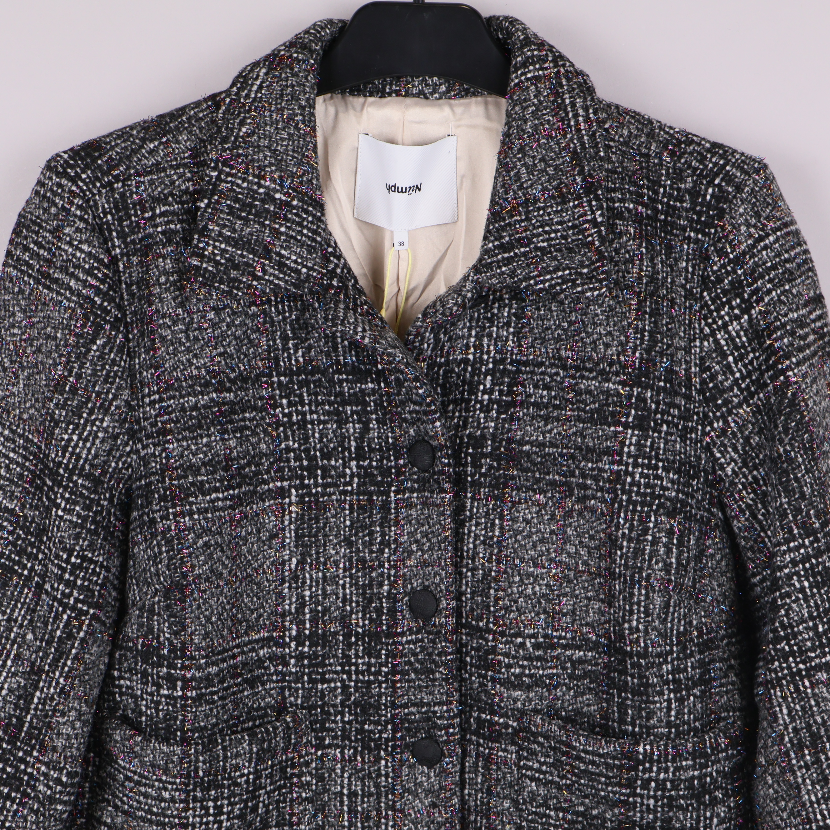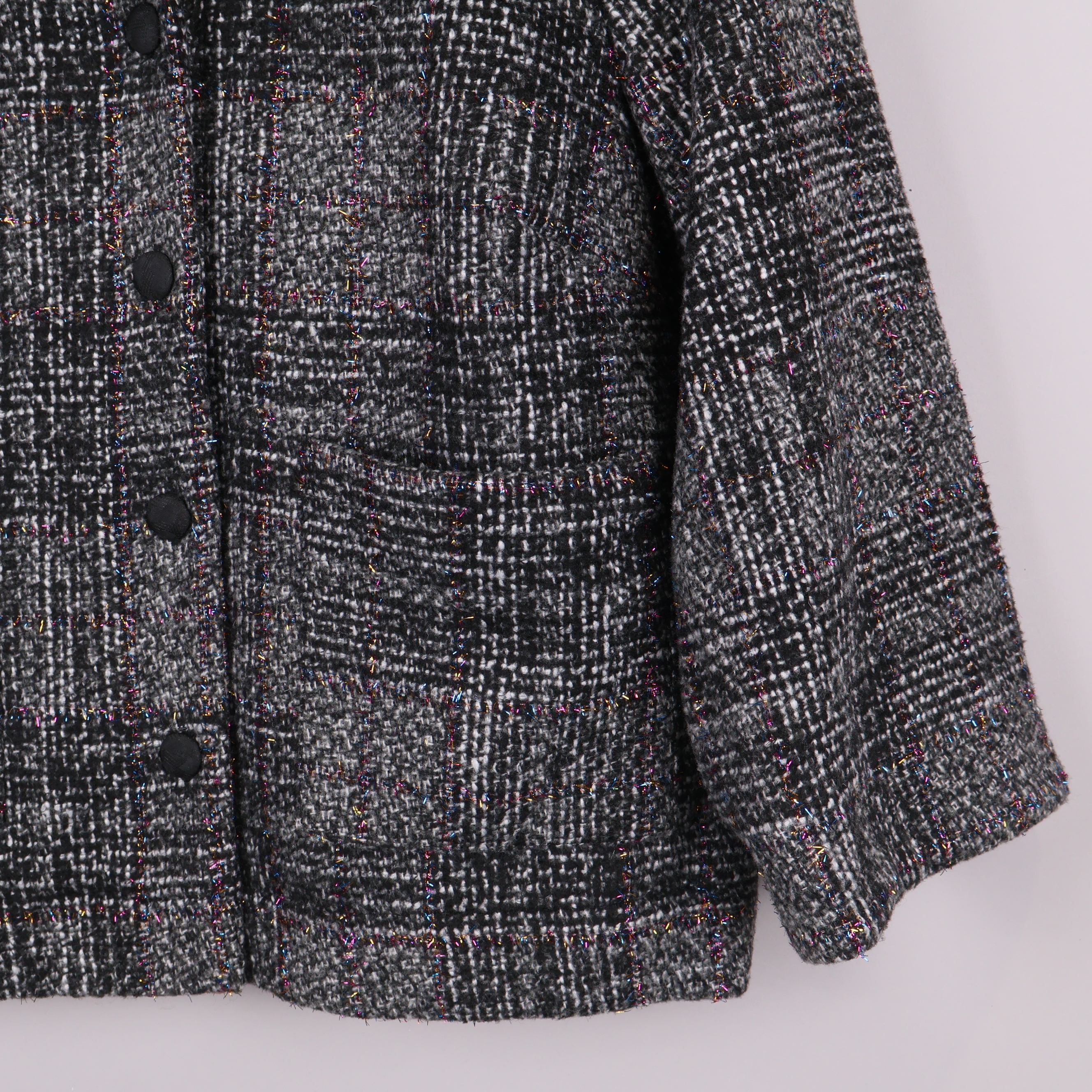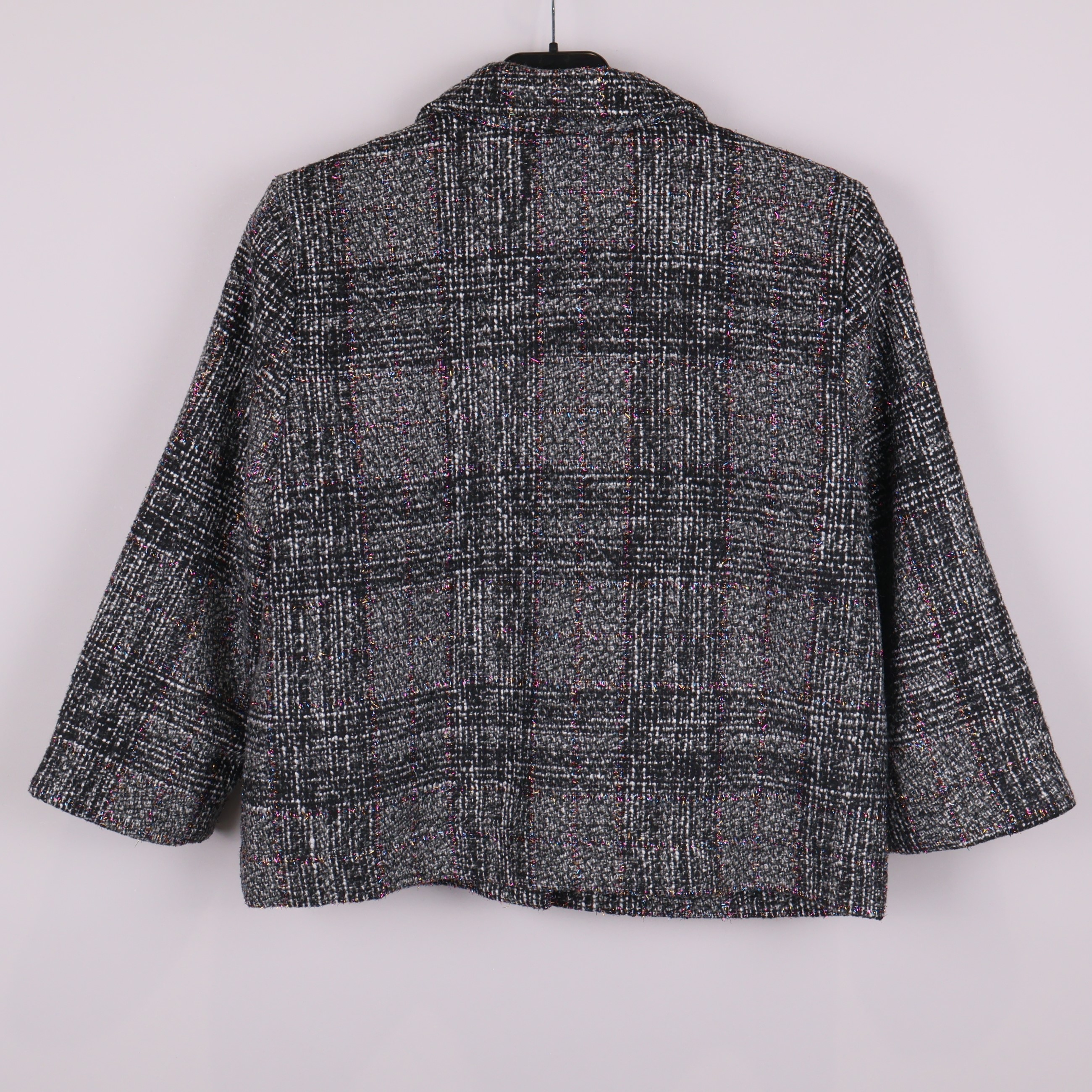Stilren jacka med tydligt rutigt mönster och diskreta färginslag för ett modernt statement. Den korta modellen har klassisk krage, raka ärmar och knäppning framtill samt två praktiska framfickor. Ytan har en tvistad textur med mjuk känsla. Vadderad insida ger extra komfort.