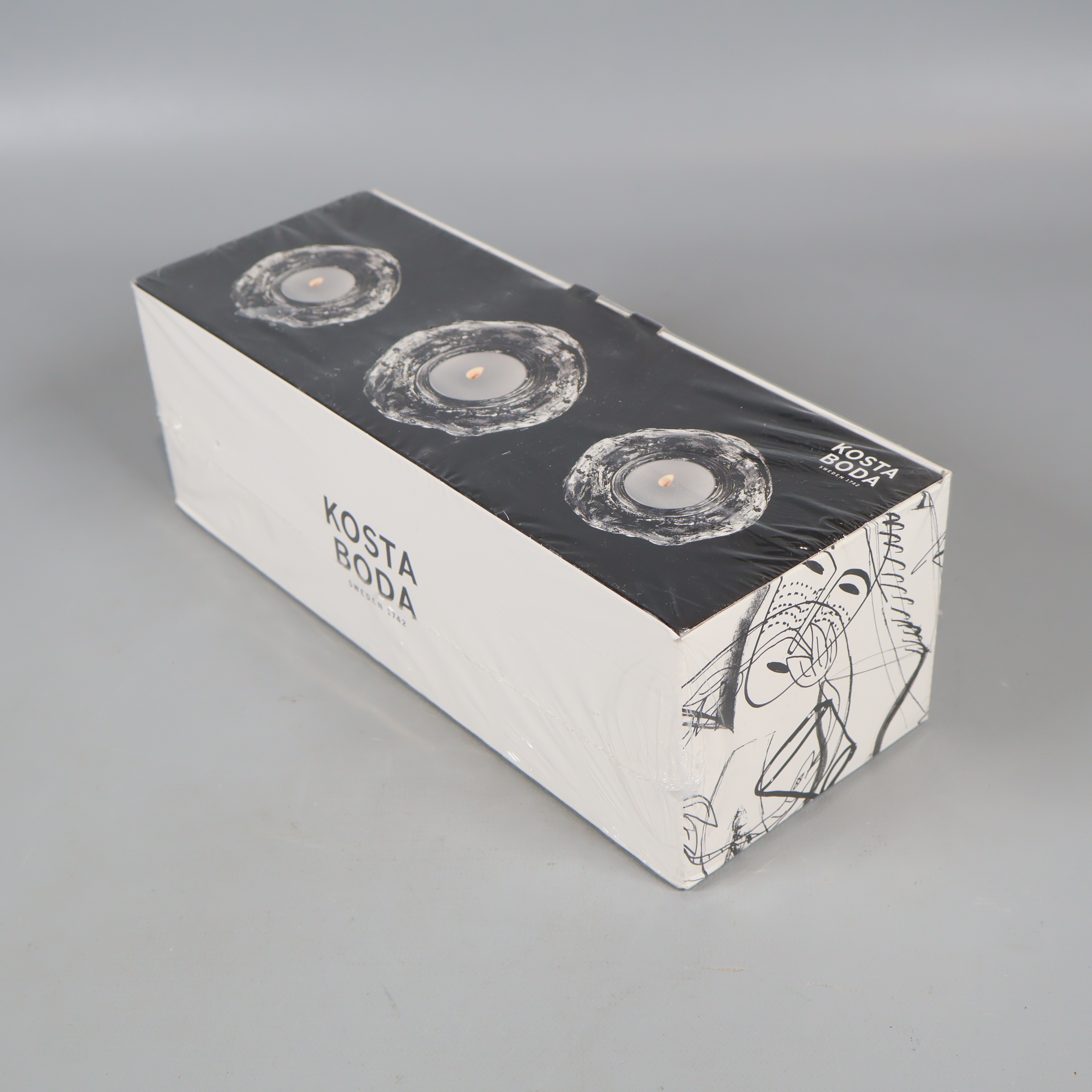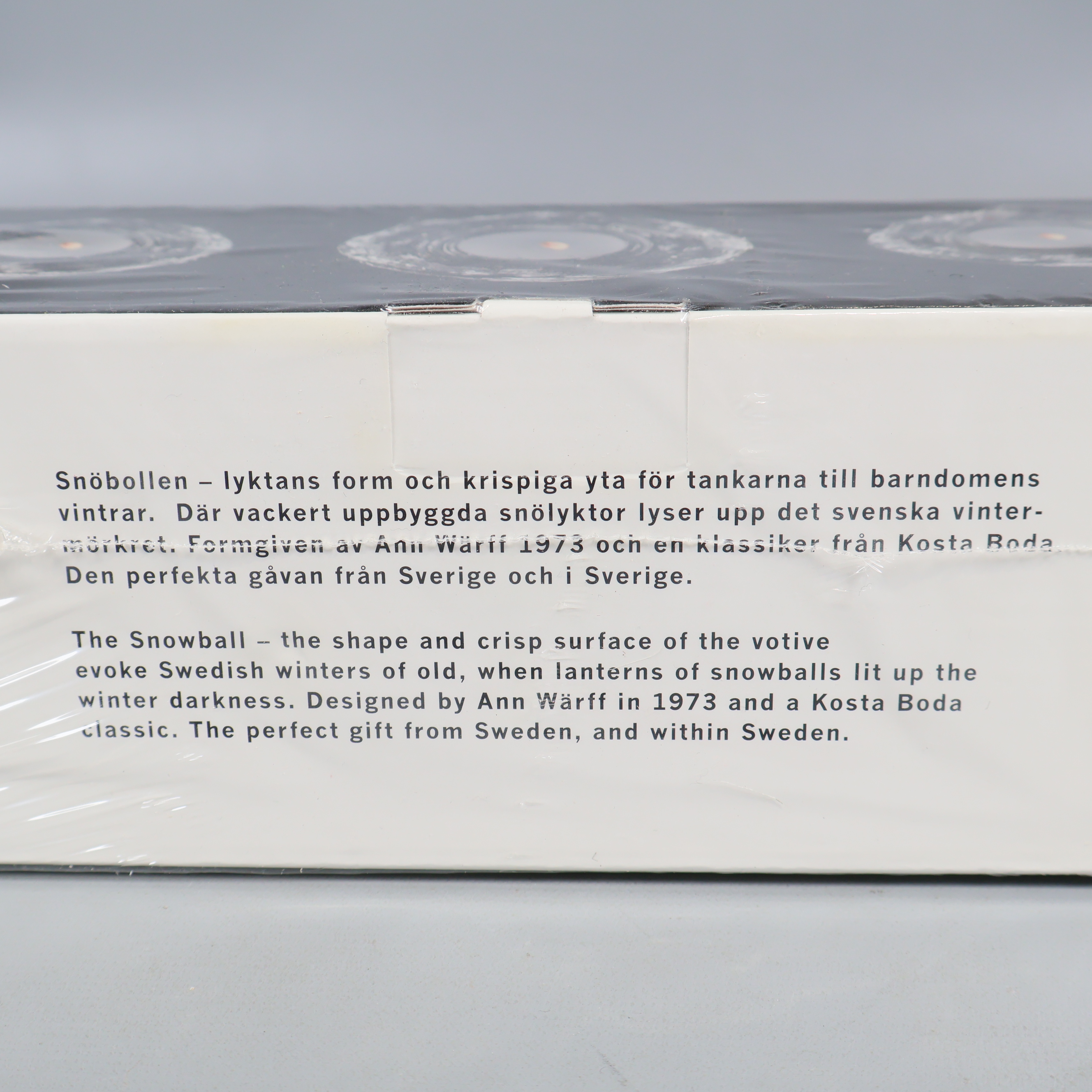 Den här ljusstaken från Kosta Boda har en unik snöbollsinspirerad design med krispig, isliknande yta. Tillverkad enligt Ann Wärffs klassiska formgivning från 1978, levereras setet i originalförpackning.