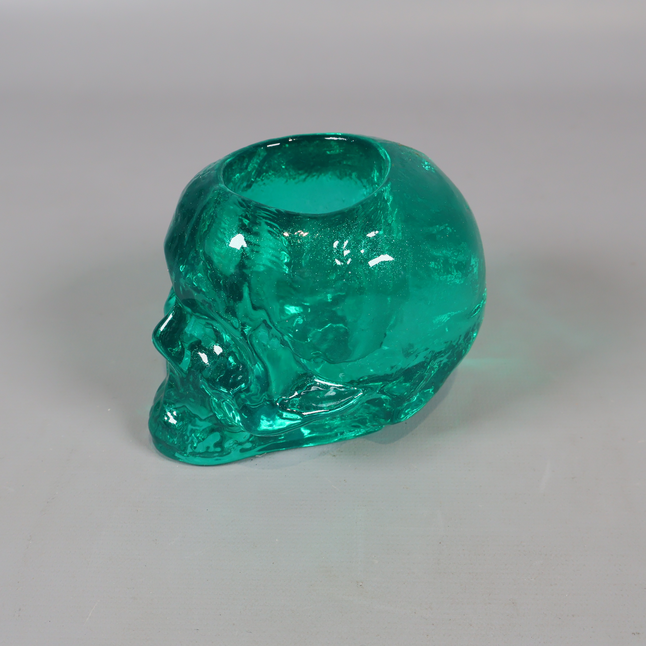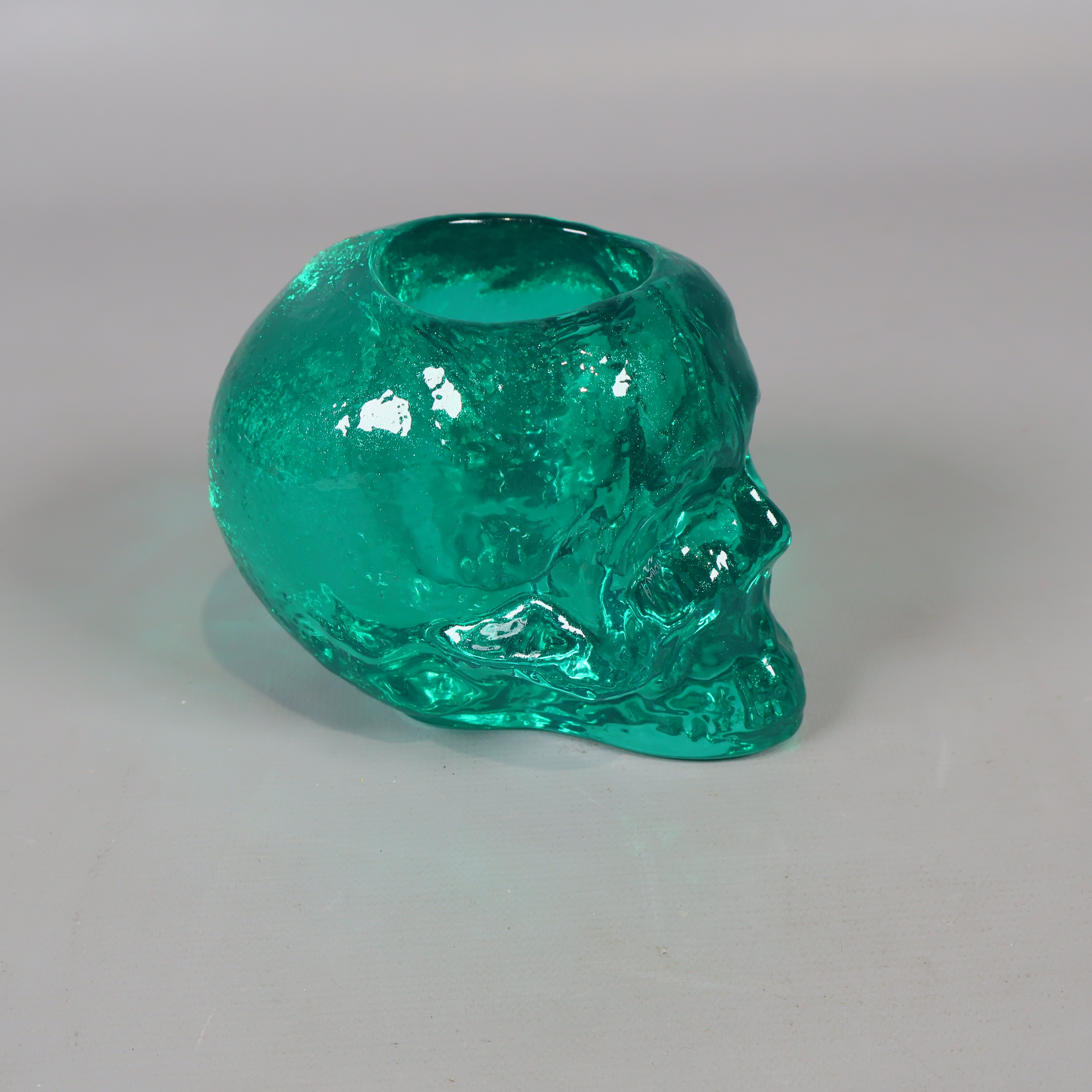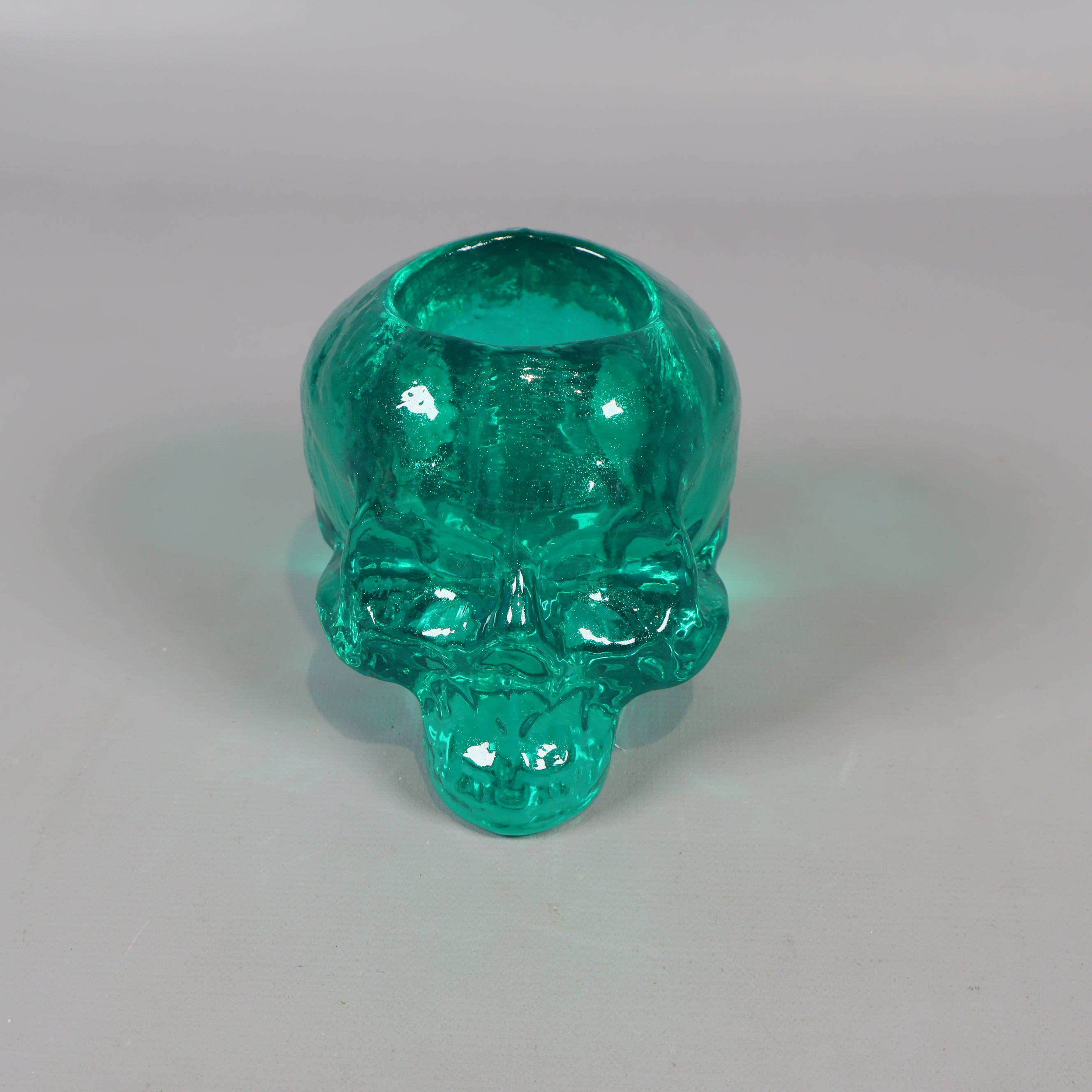 Kosta Boda Kosta Boda Still Life Ludvig Löfgren Ljushållare i glas skalle 169 kr Product variation Antal st Beskrivning Unik ljushållare formad som en skalle, tillverkad i färgat glas med klar och glansig finish. Den transparenta turkosa tonen ger en modern look. Skick Gott skick Plagget eller prylen har använts men är av fin kvalitet och ska inte ha några skador eller förslitningar. Läs mer om hur vi bedömer Dimensions Höjd: ca 8.5cm, Bredd: ca 10cm, Diameter: ca 5cm Färg Turkos Material Glas Varumärke Kosta Boda Produkten är unik och finns enbart som 1 st i lager. Fri frakt på alla köp över 990 kr. 14 dagars ångerrät.