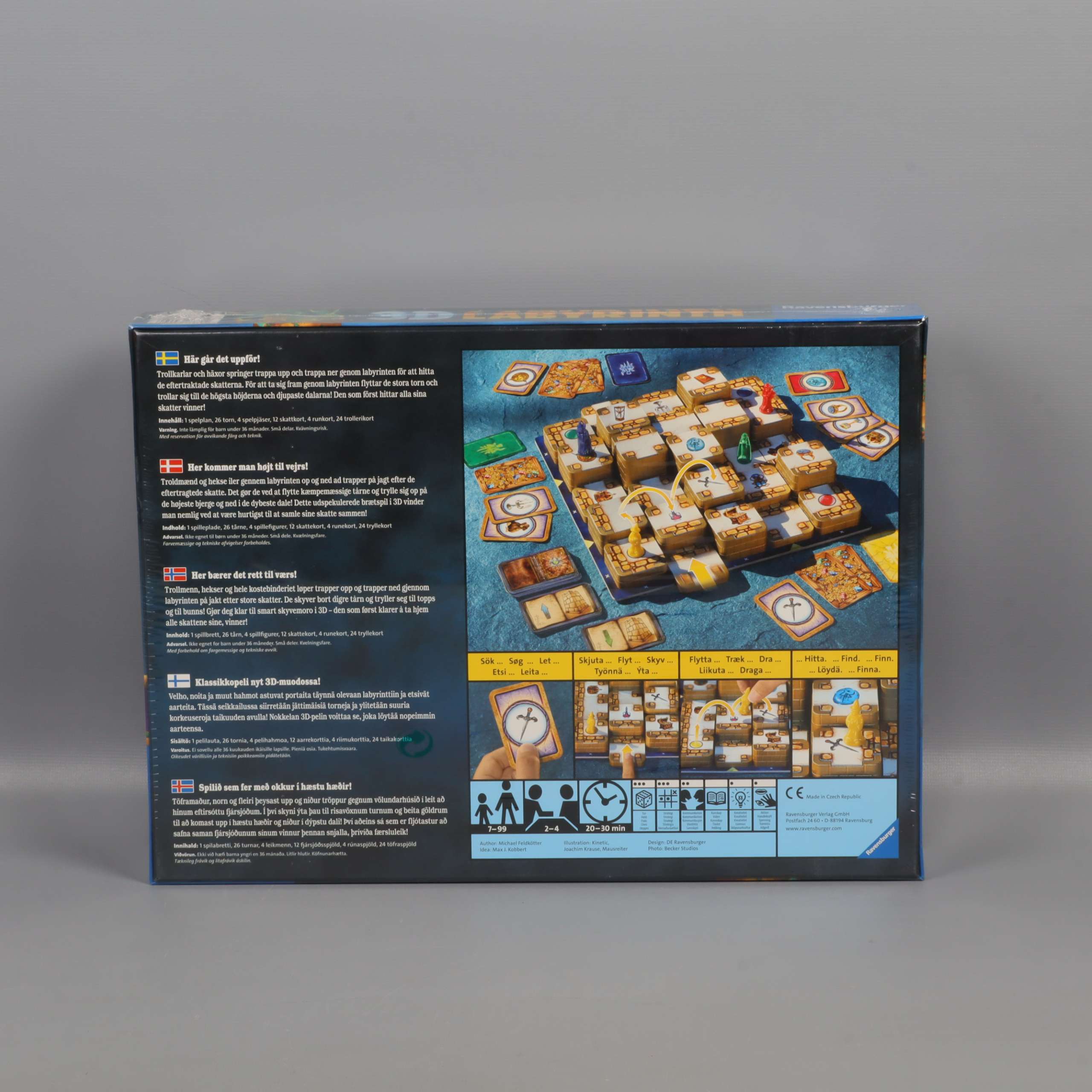 Utforska ett magiskt 3D-brädspel med färgstarka illustrationer där labyrinten reser sig över spelplanen. Kartongen visar coola detaljer, äventyrstema och fantasifulla figurer, vilket ger spelet en inbjudande och levande känsla. Perfekt när du vill utmana vänner eller familj på en rolig spelkväll.