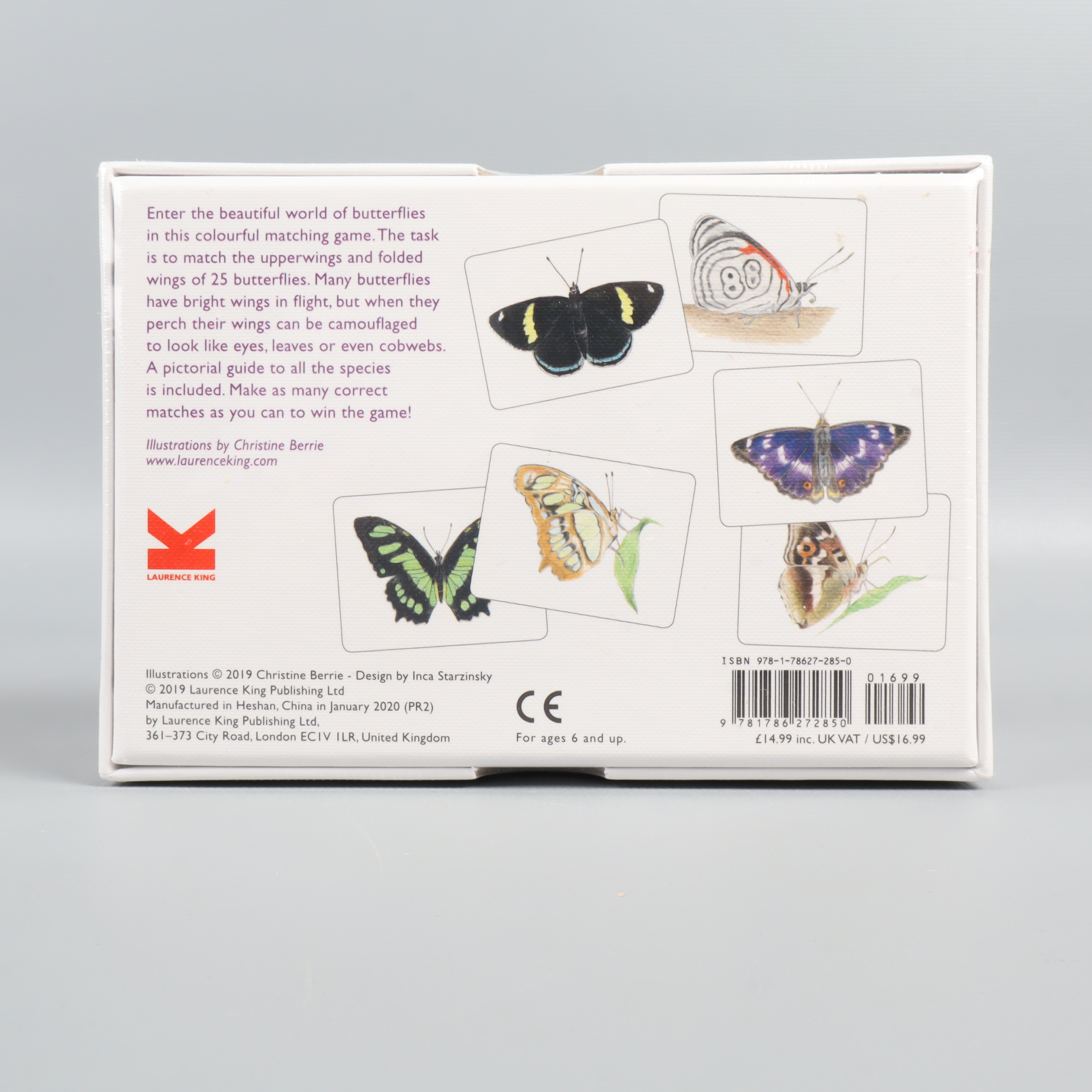 Upptäck ett memoryspel med färgstarka fjärilar som motiv på en stilren och lekfull box. Illustrationerna är detaljrika och boxen känns inbjudande på bordet. Passar för dig som gillar natur och snygg design – oavsett ålder. Perfekt för alla som uppskattar ett klassiskt sällskapsspel med modern twist.