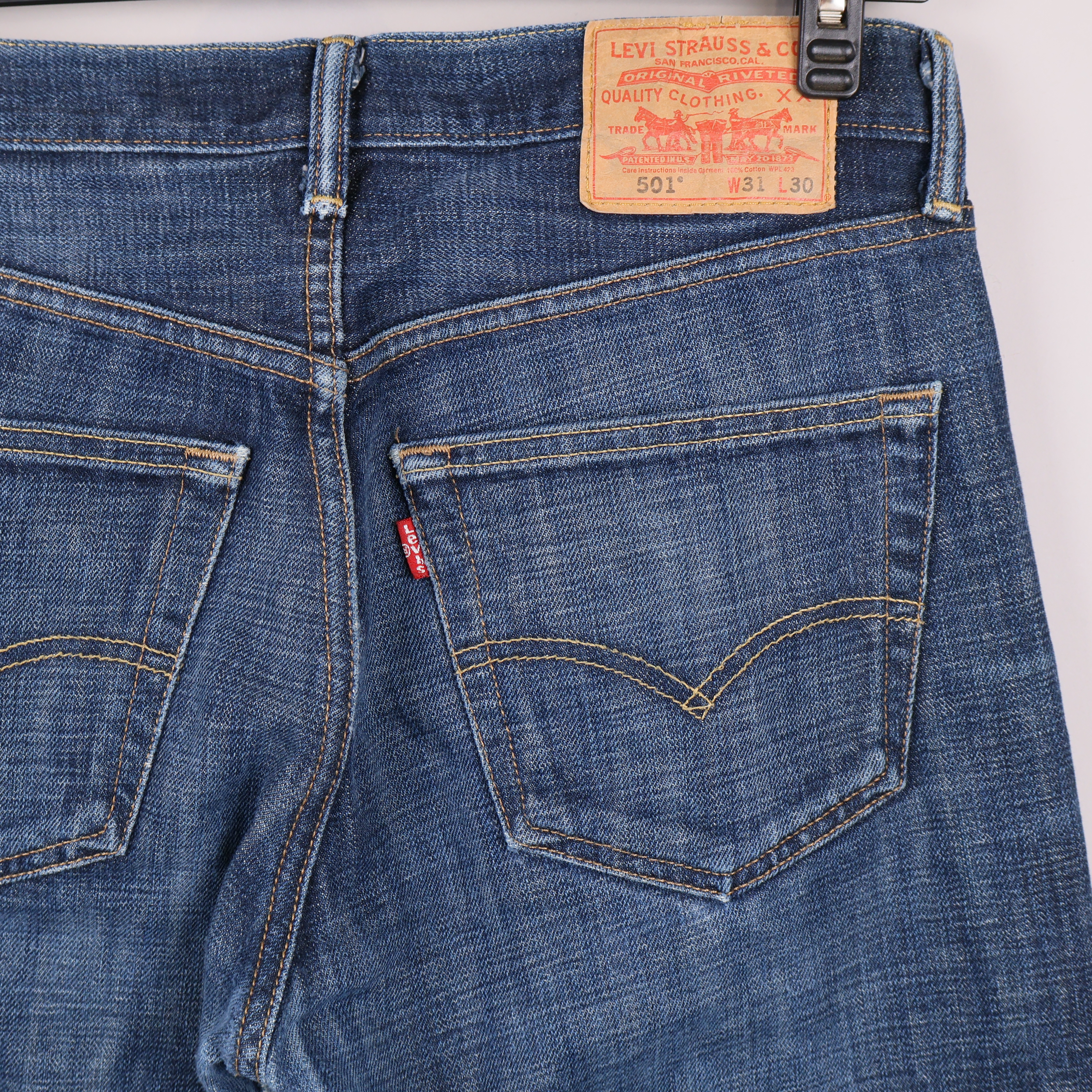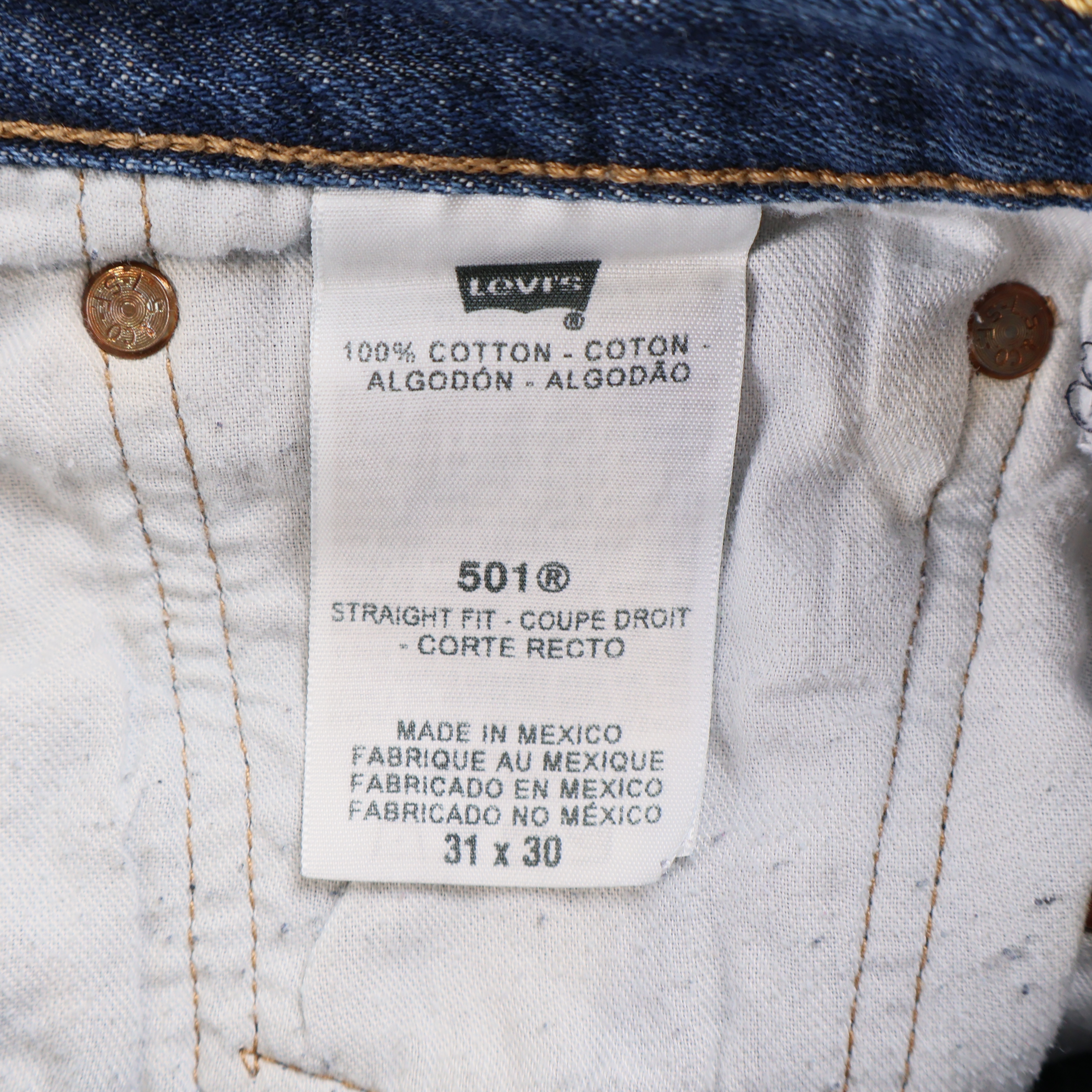 Klassiska Levi's jeans i rak modell, tillverkade av 100% bomull för en autentisk denimkänsla. Mellanblå tvätt med subtila slitningar ger en tidlös och avslappnad look. Femficksdesign med ikoniska kontrastsömmar och läderpatch bak.