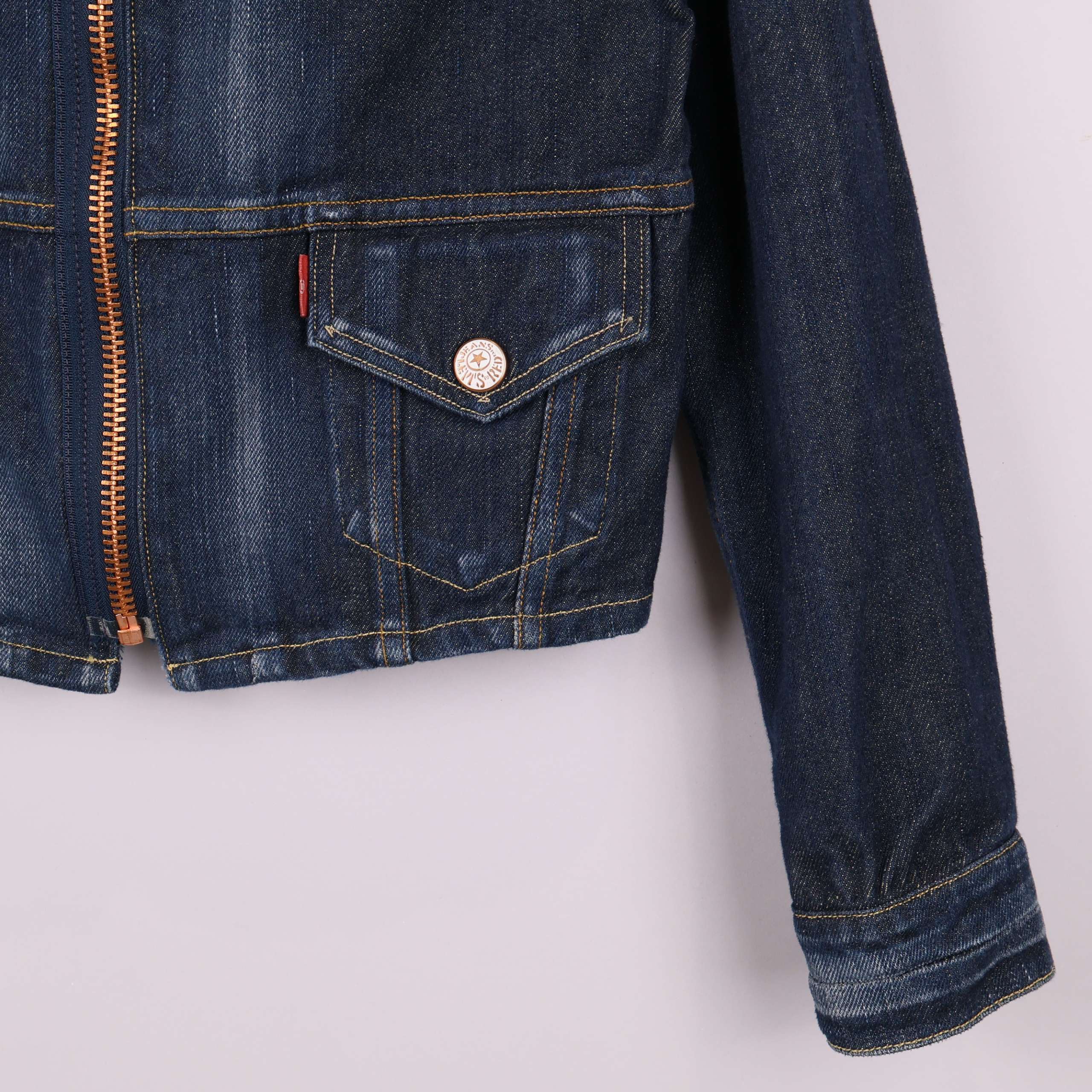 Jeansjacka i klassisk modell från Levis Red med markerad dragkedja framtill och stora bröstfickor med lock. Denimtyget har tydliga sömmar och en snygg tvätt för en tidlös look. Avslappnad passform och silvriga knappar ger en modern känsla som passar till allt.