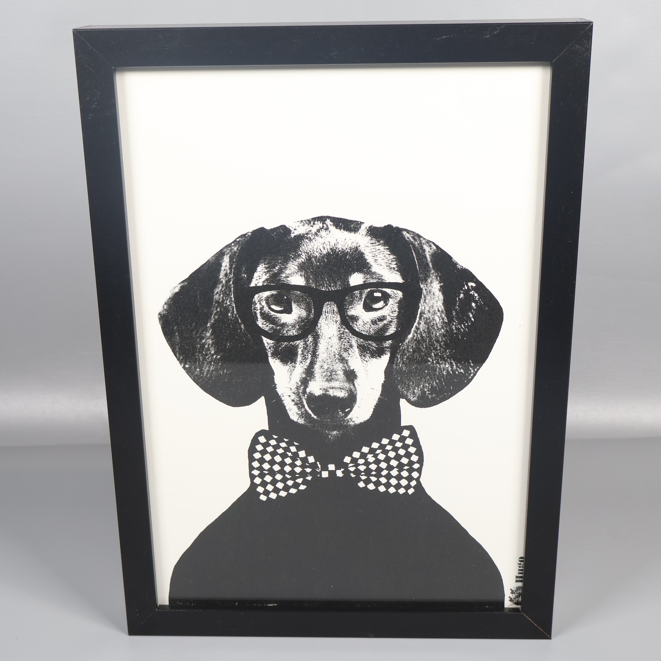 Lisa Bengtsson Tavla med hundmotiv 99 kr Product variation Antal st Beskrivning Stilren tavla med humoristiskt hundmotiv där en tax bär glasögon och fluga. Stående design gör den lätt att placera på hyllan eller väggen och ger en unik look i din inredning. Visa all beskrivning Detaljer Höjd: 24 cmLängd: 33 cmÖvrigt: Hugo Skick Mycket gott skick Produkten är sparsamt använd, är av fin kvalitet och ska inte ha några skador eller förslitningar. Läs mer om hur vi bedömer Dimensions Höjd: 24 cm Längd: 33 cm Färg Svart Produkten är unik och finns enbart som 1 st i lager. Fri frakt på alla köp över 990 kr. 14 dagars ångerrät.