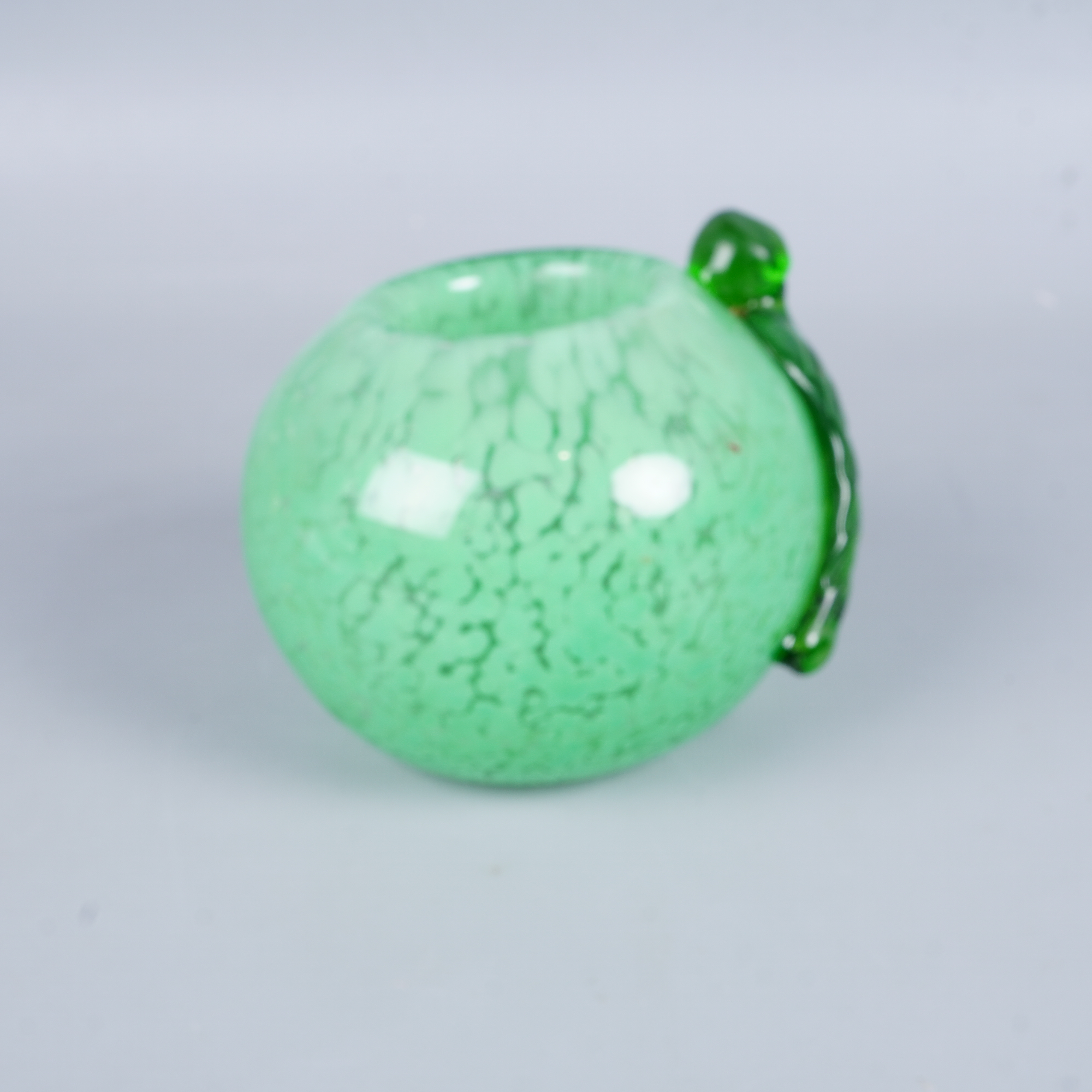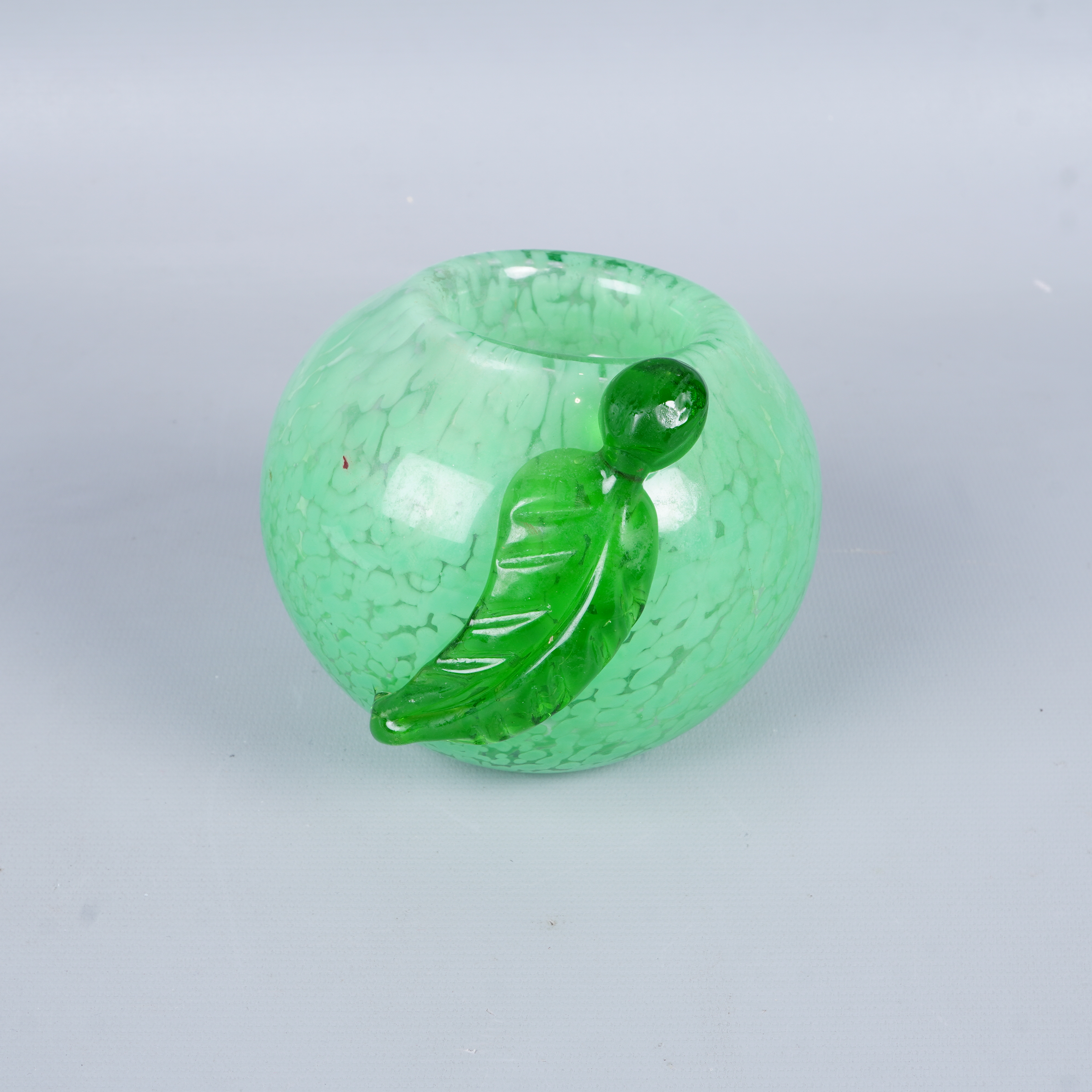 Ljuslykta - Grönt glasäpple 119 kr Product variation Antal st Beskrivning Unik grön ljusstake i glas med vackert, rundat formspråk och en dekorativ detalj i form av ett löv. Ytan har ett fläckigt mönster som ger hela looken ett fräscht och lekfullt intryck. Perfekt statement piece för ditt hem. Visa all beskrivning Detaljer Höjd: 11 cmBredd: 16 cm Skick Gott skick Produkten har använts men är av fin kvalitet, det kan förekomma mindre förslitningar. Läs mer om hur vi bedömer Färg Grön Material Glas Produkten är unik och finns enbart som 1 st i lager. Fri frakt på alla köp över 990 kr. 14 dagars ångerrät.