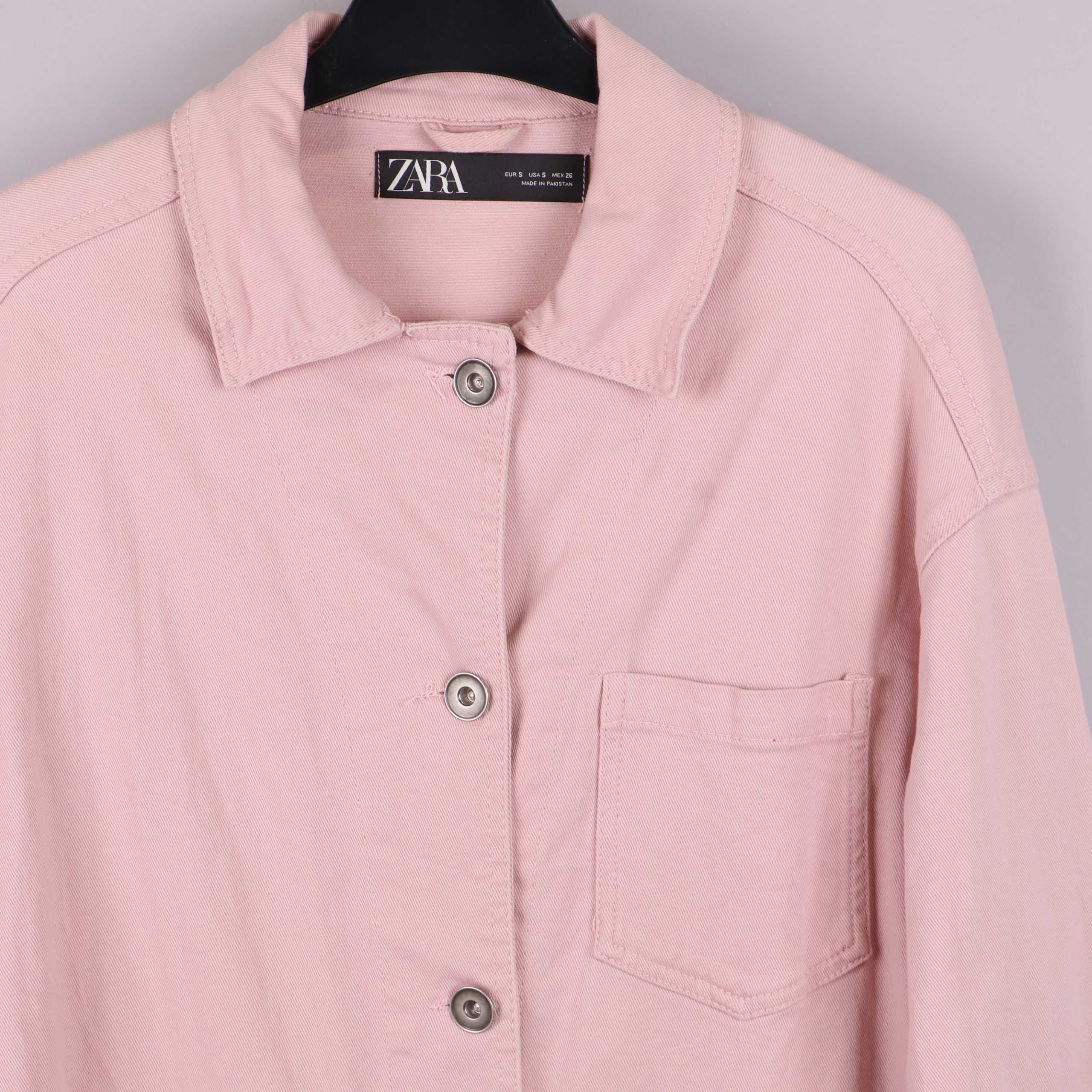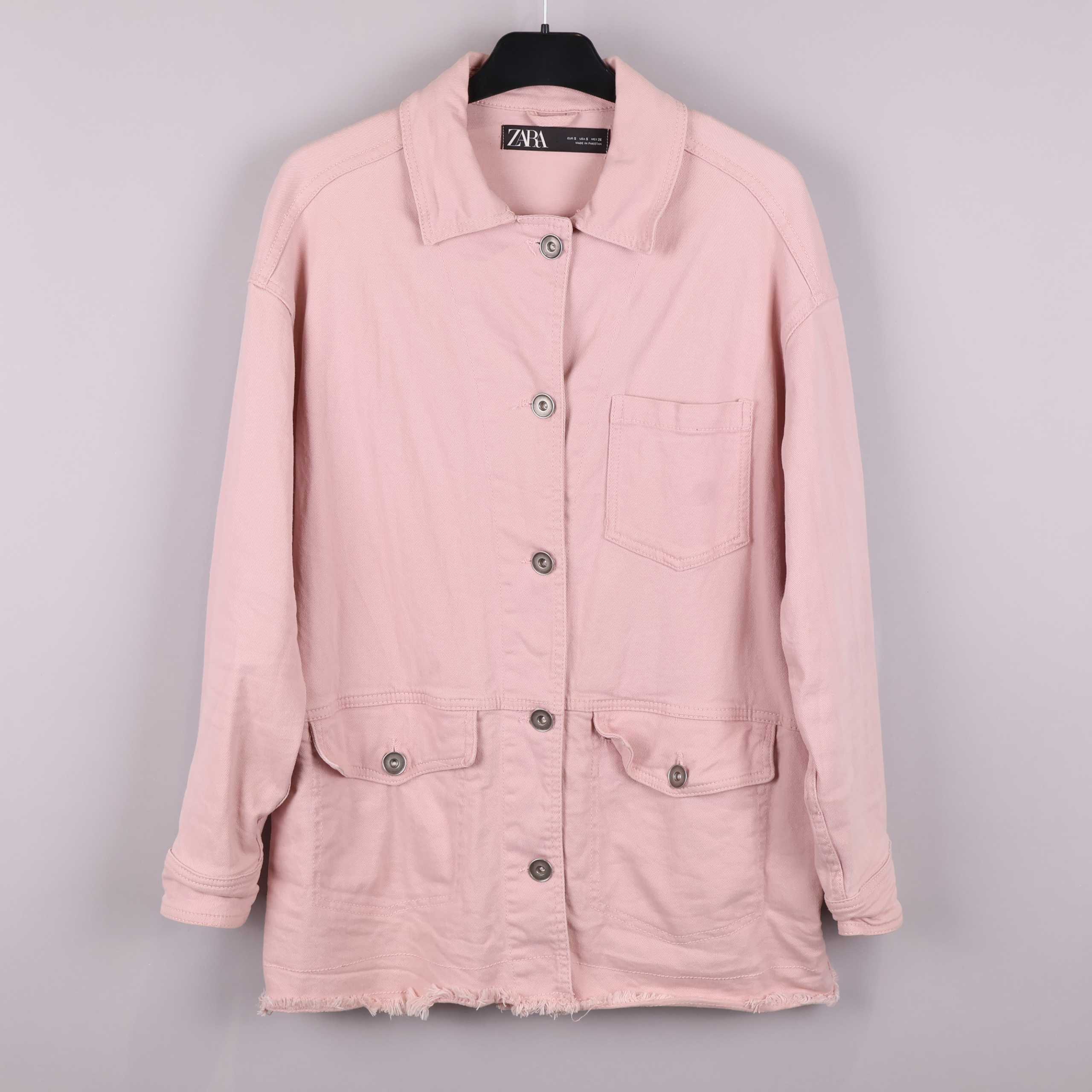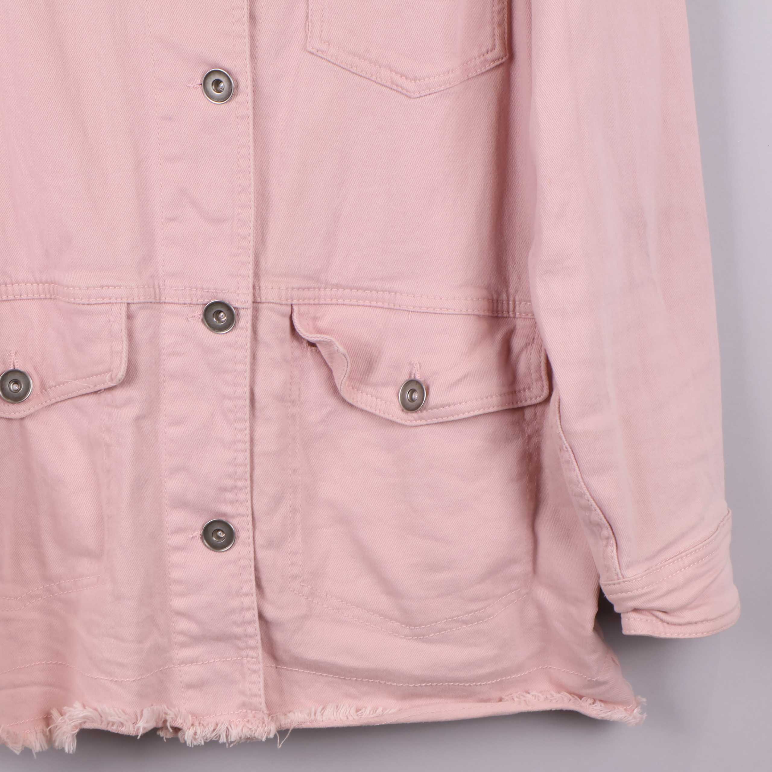 Avslappnad jacka i ljusrosa bomullsmix med rå nederkant och tre framfickor. Knappar i metall ger ett trendigt touch och enkel förslutning. Jackan har en något oversized, relaxed fit.
