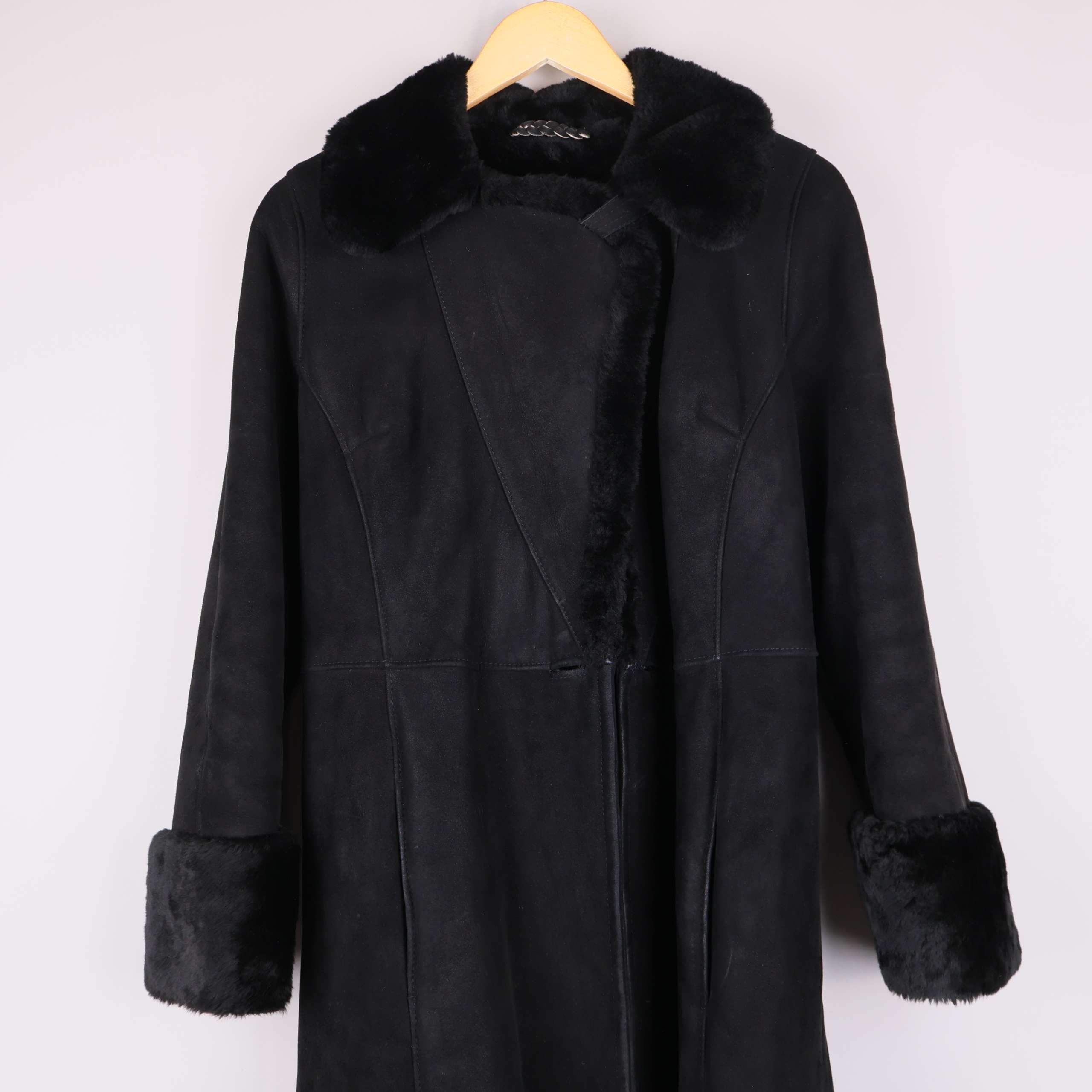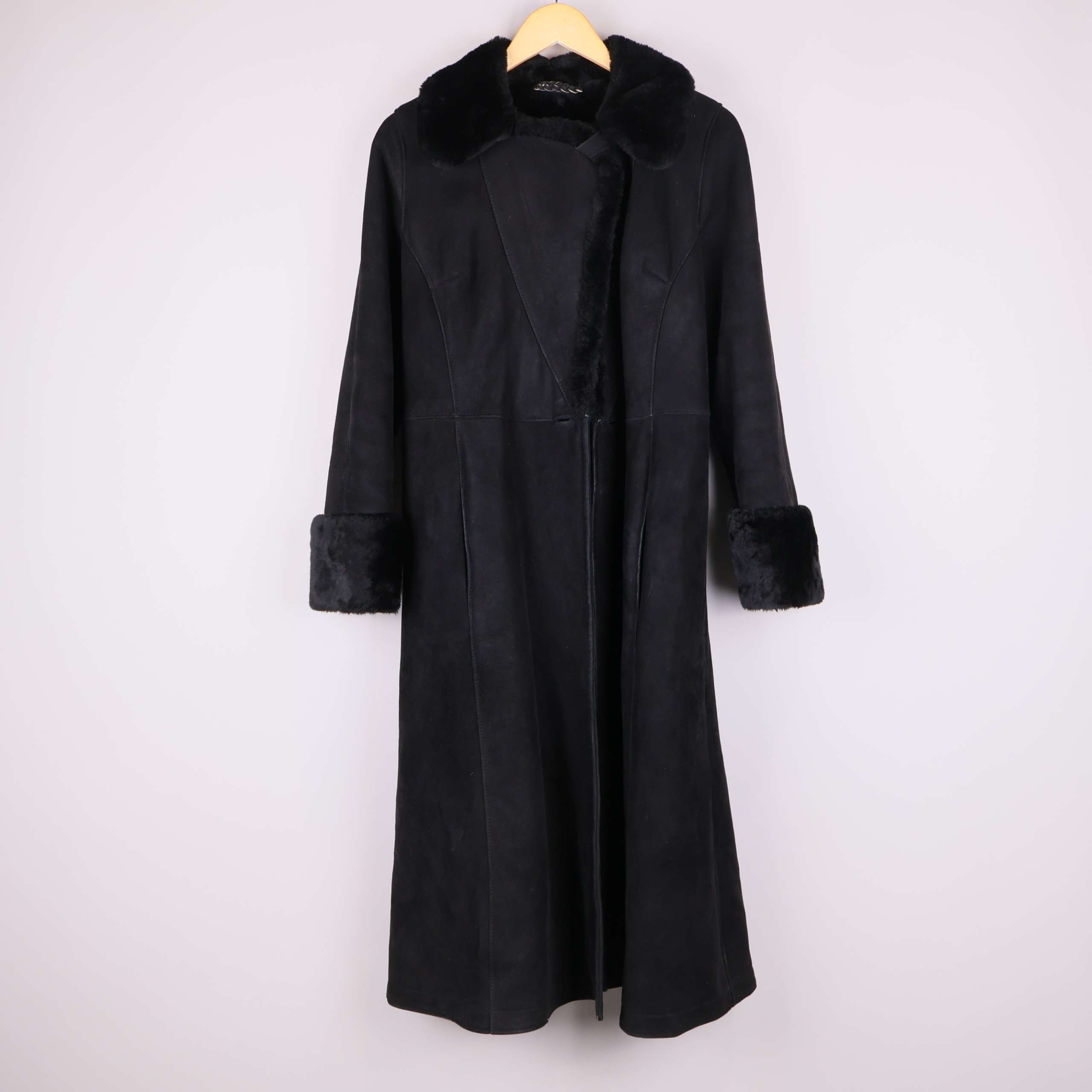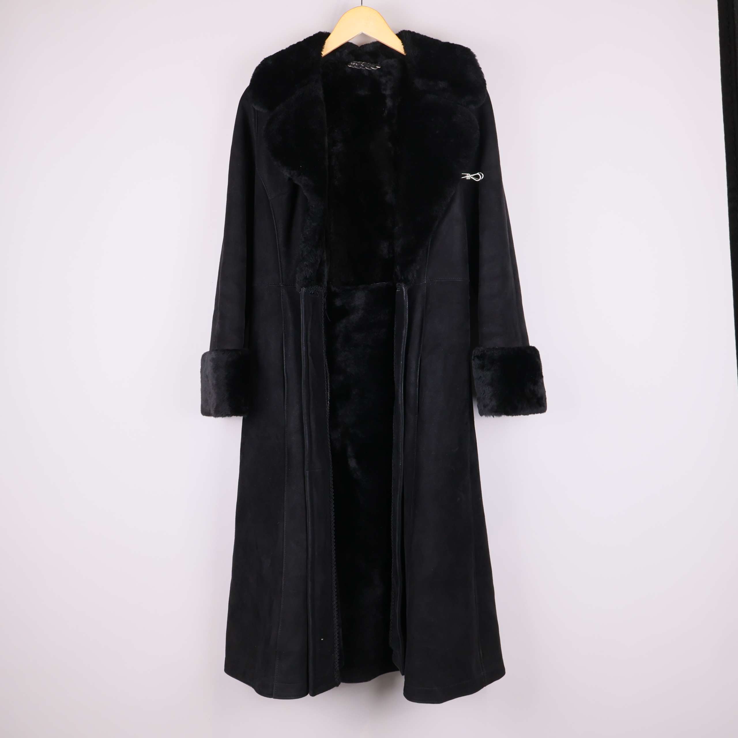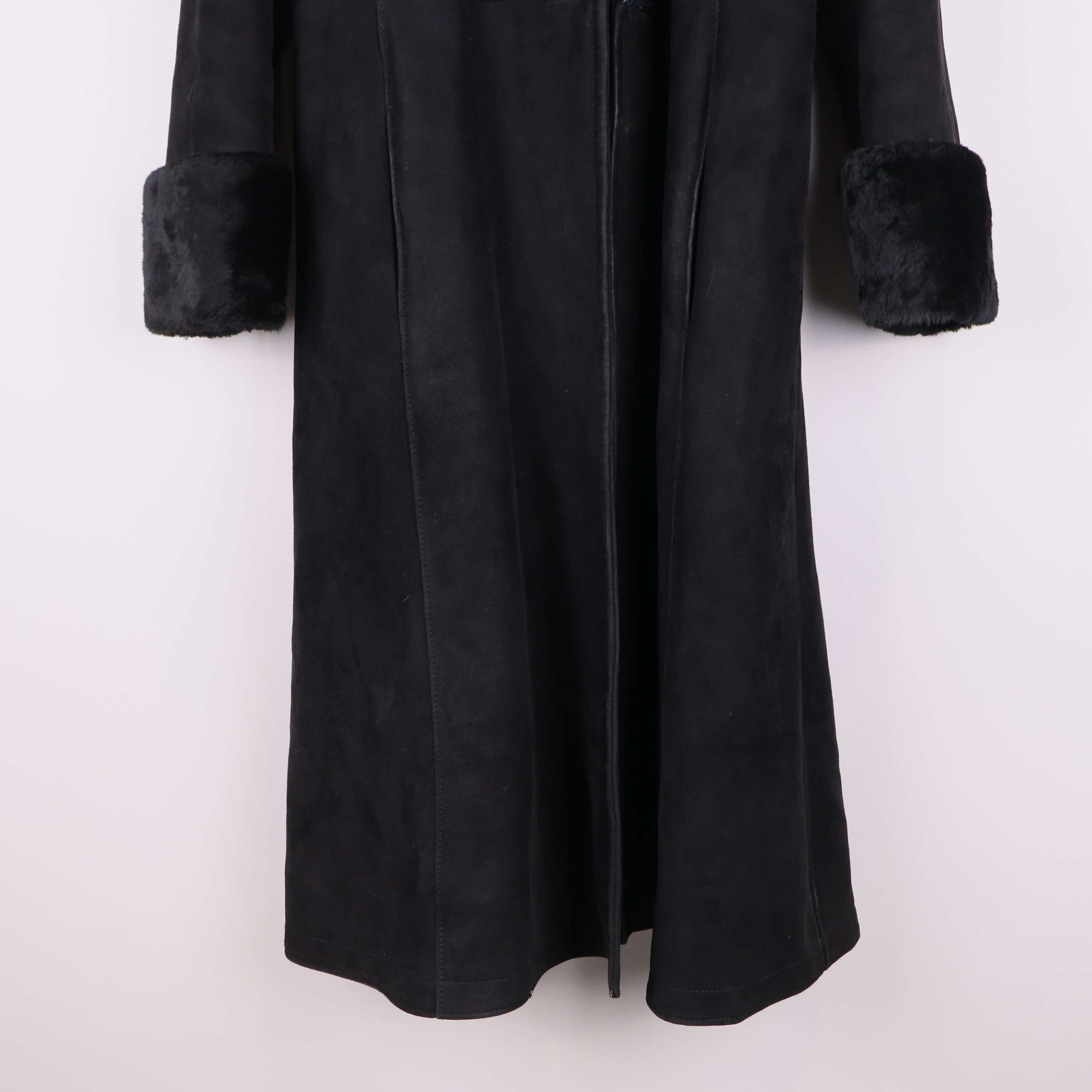 Produkt: Kappa i mocka, Fodrad med fårskinn, Pälsdetalj på ärmslut