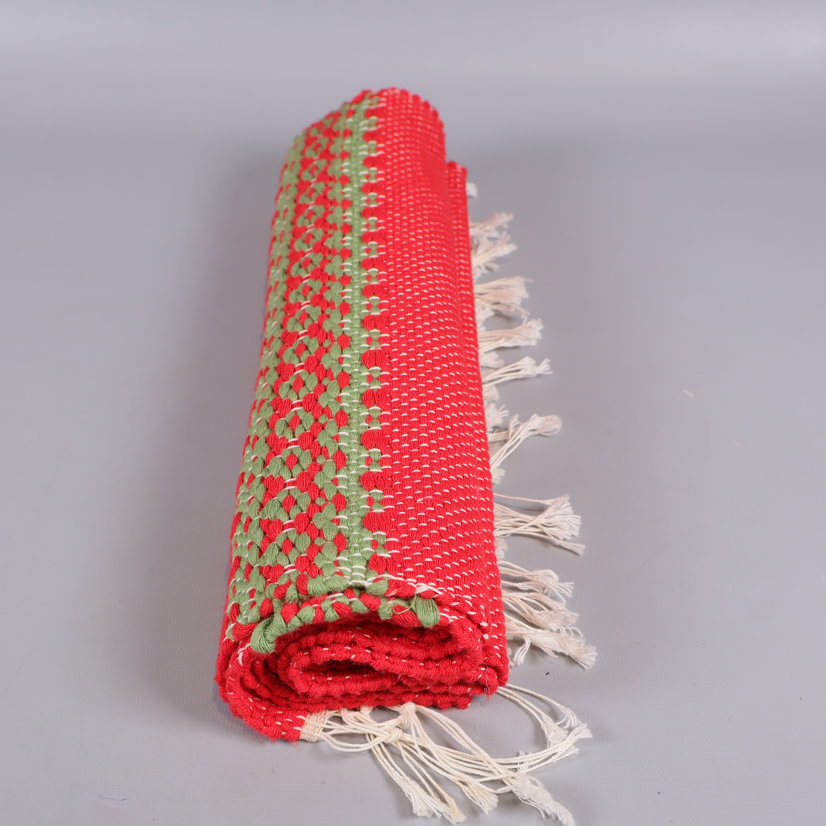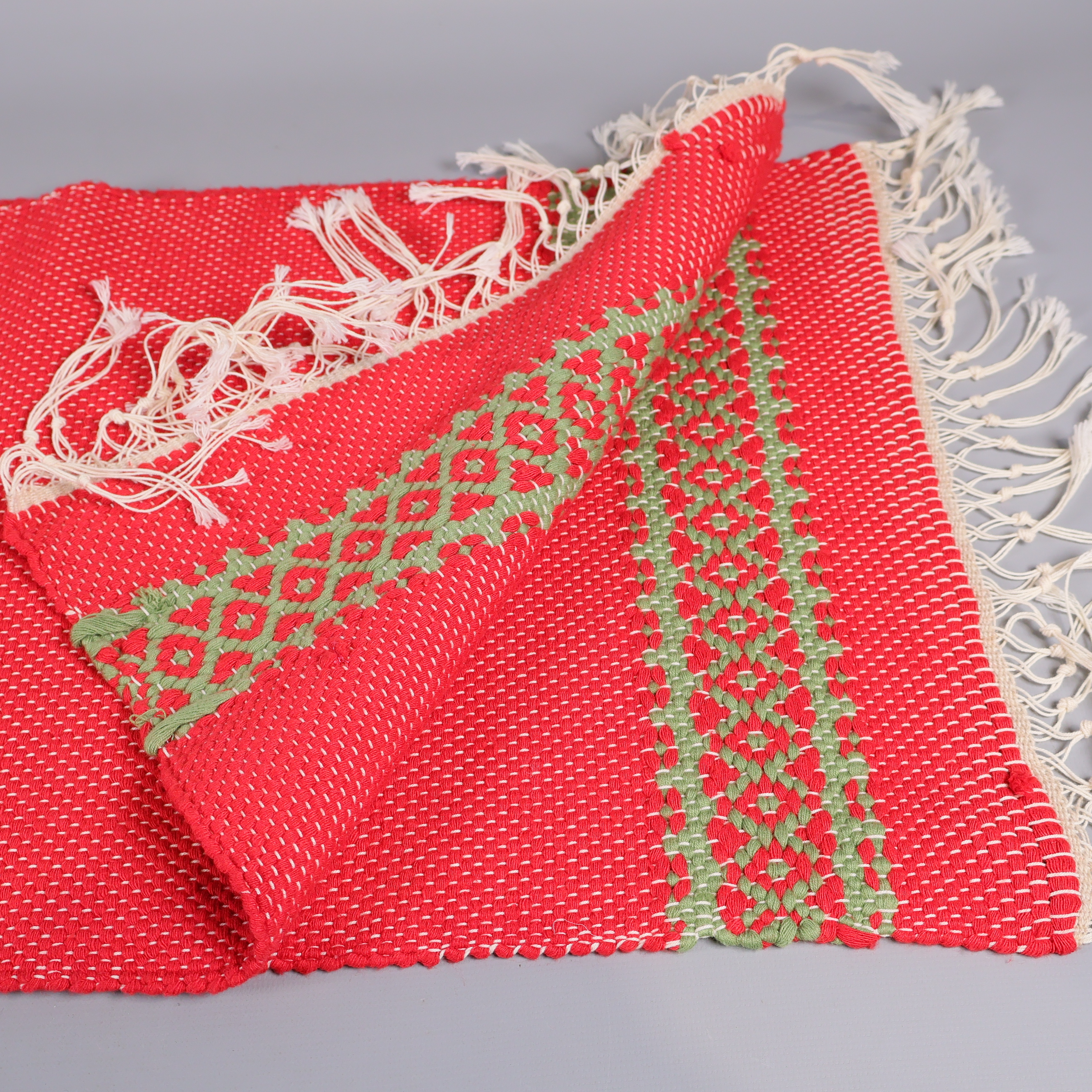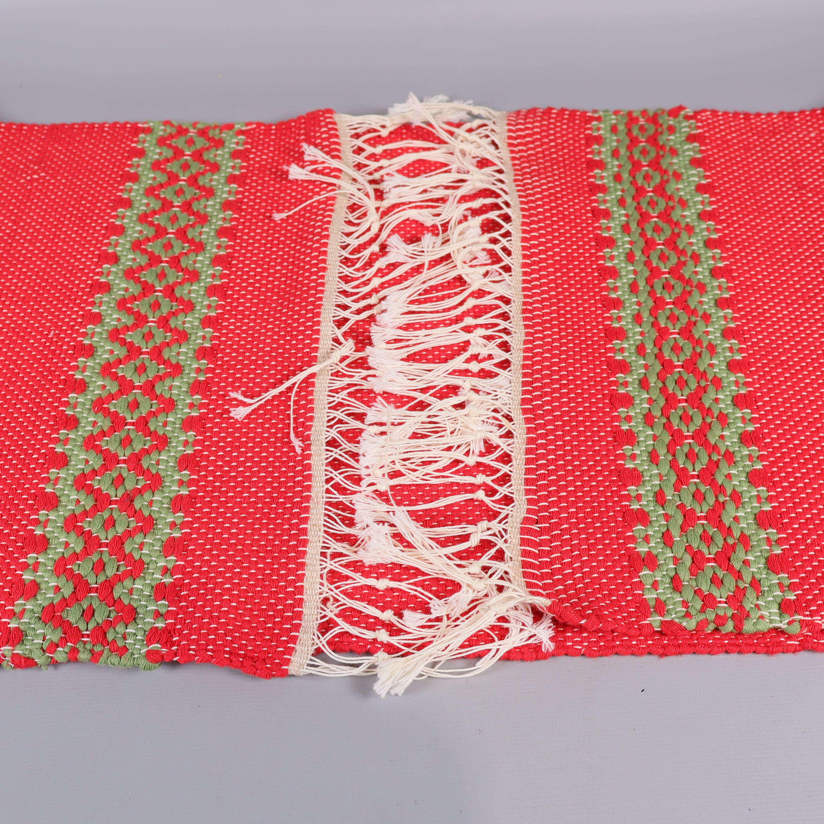 Okänt märke Löpare med färgglatt mönster 119 kr Product variation Antal st Beskrivning Färgglad löpare med livfullt röd och grön mönsterbård samt dekorativa fransar längs kanterna. Det tätt vävda tyget ger en handgjord känsla och den traditionella stilen ger en inbjudande touch till ditt bord eller din hylla. Visa all beskrivning Skick Gott skick Produkten har använts men är av fin kvalitet och ska inte ha några skador eller förslitningar. Läs mer om hur vi bedömer Dimensions Längd: ca 120cm, Bredd: ca 34cm Färg Röd Varumärke Okänt märke Produkten är unik och finns enbart som 1 st i lager. Fri frakt på alla köp över 990 kr. 14 dagars ångerrät.