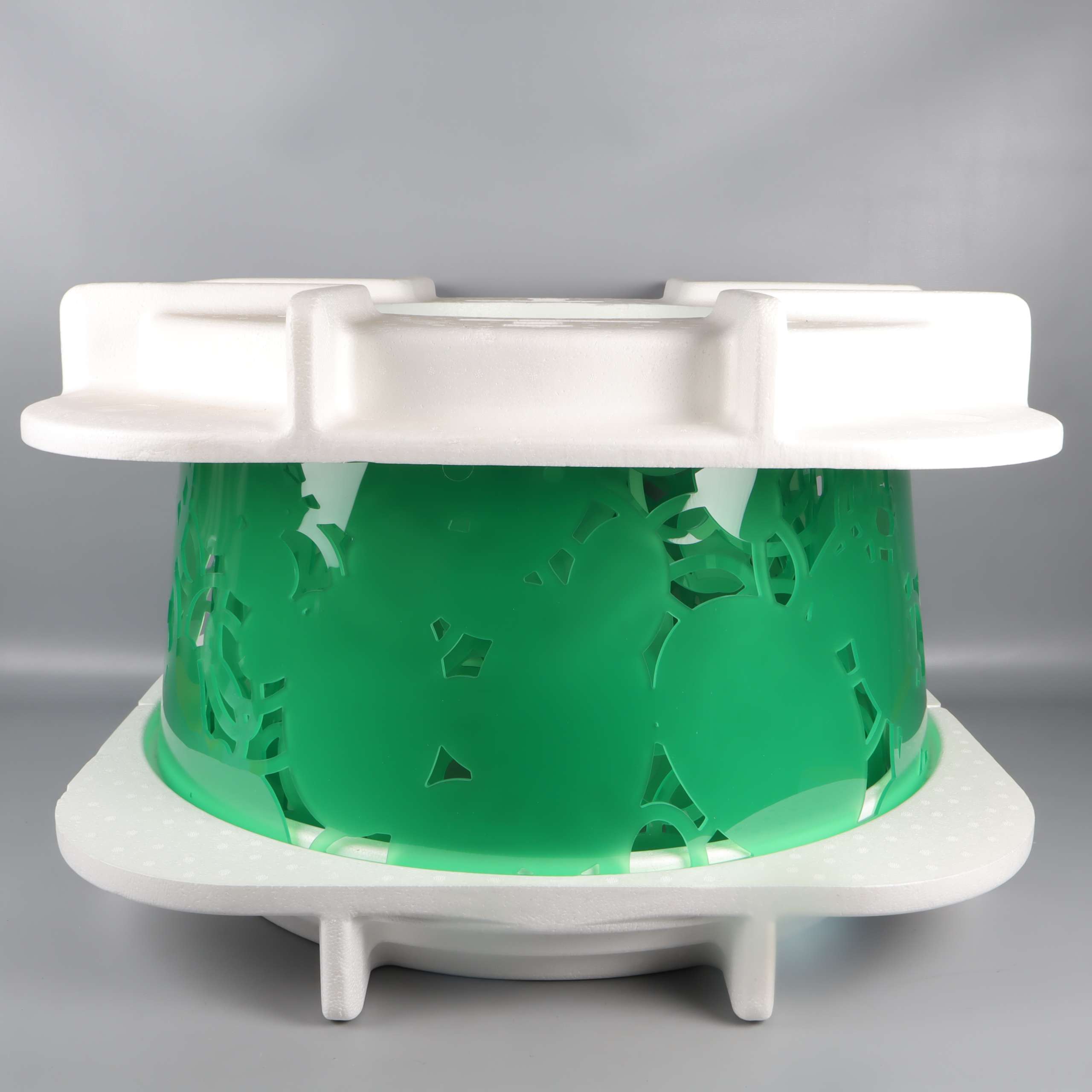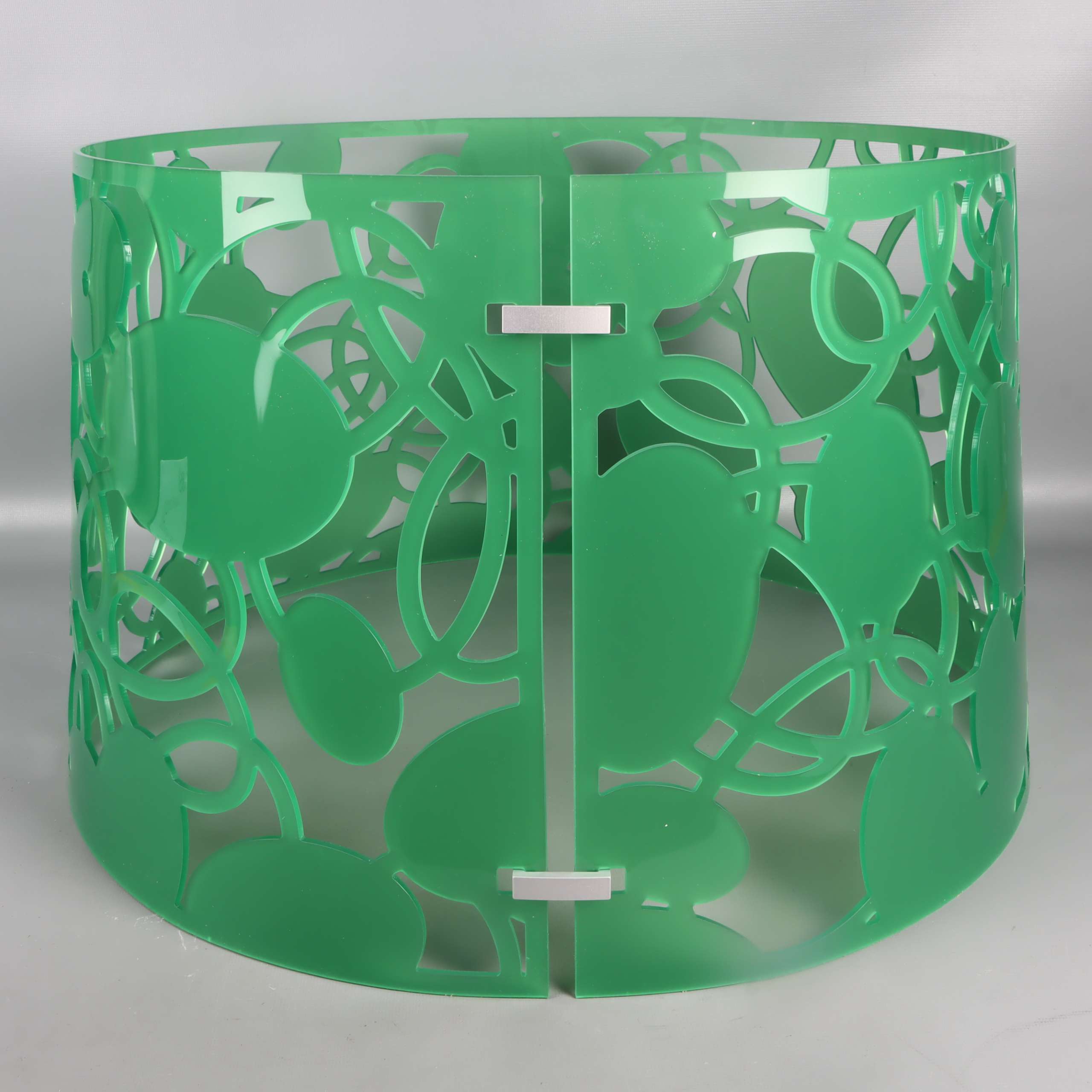 Collage 600 lampskärm i grönt akryl med tre skärmar i utskuret mönster. Design av Louise Campbell för Louis Poulsen.