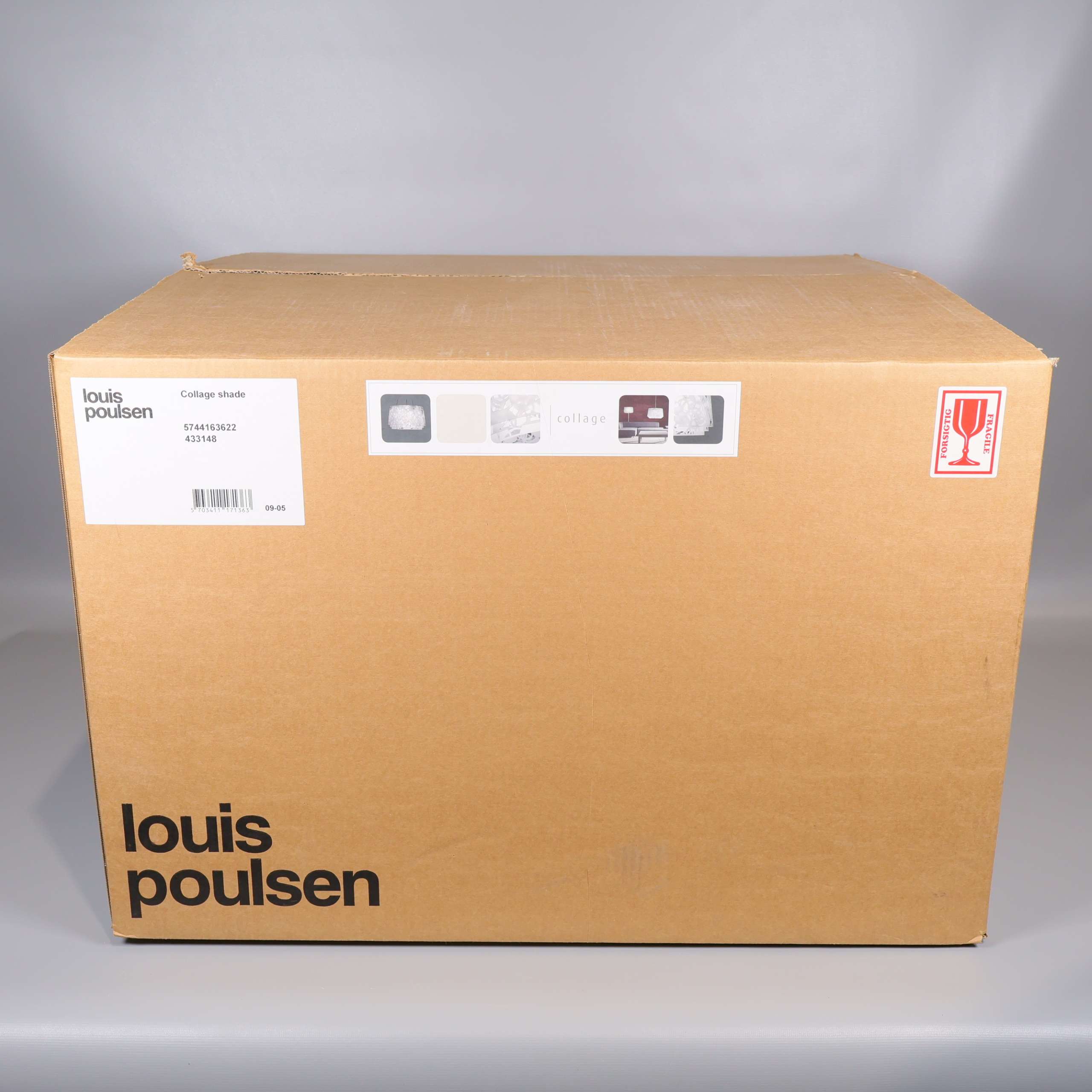OBS! Innehåller endast de tre skärmarna. Lådan är öppnad men den är i nytt skick. Delar för montering saknas. Pendel med fästanordning medföljer ej, bruksanvisning visar montering med golvstativ.