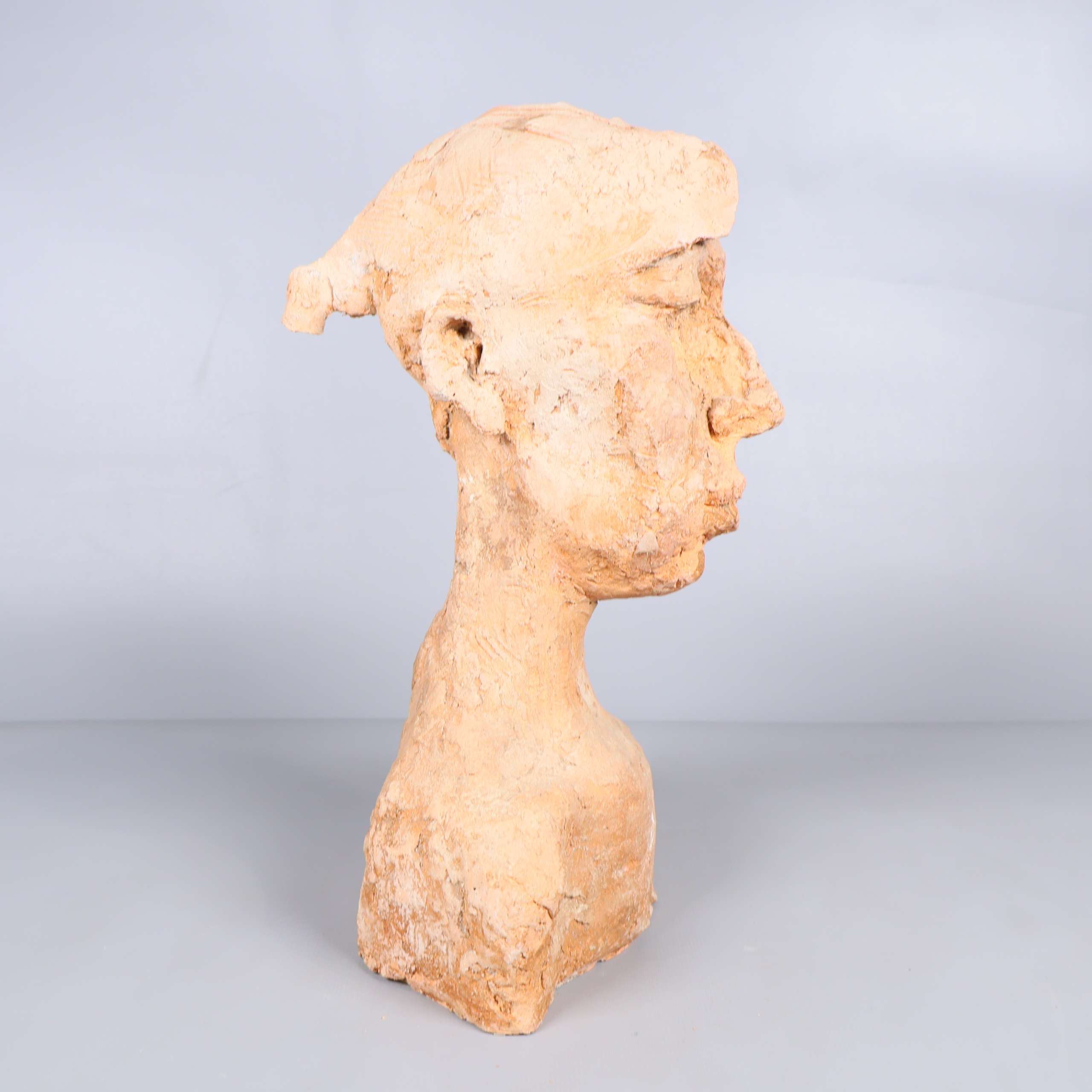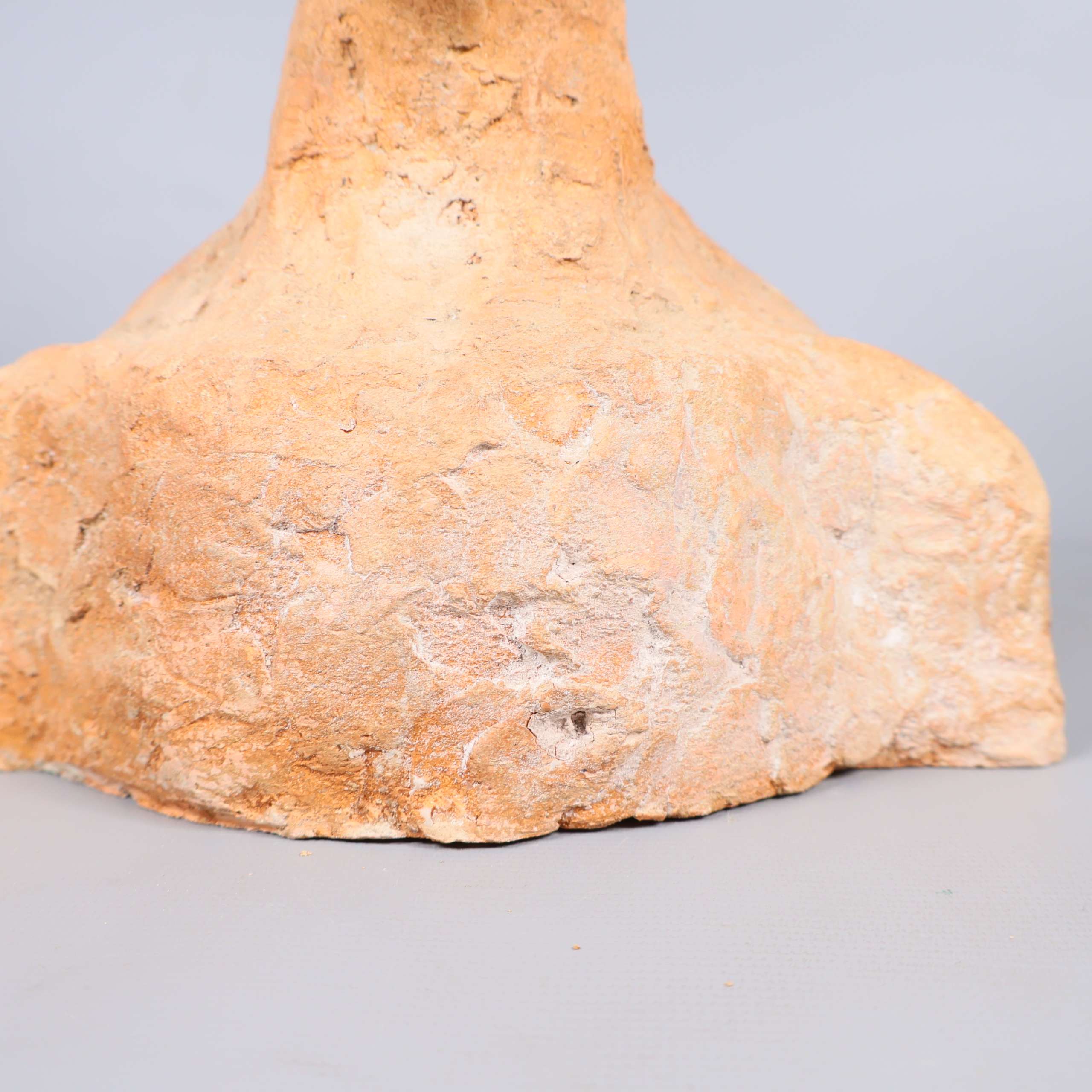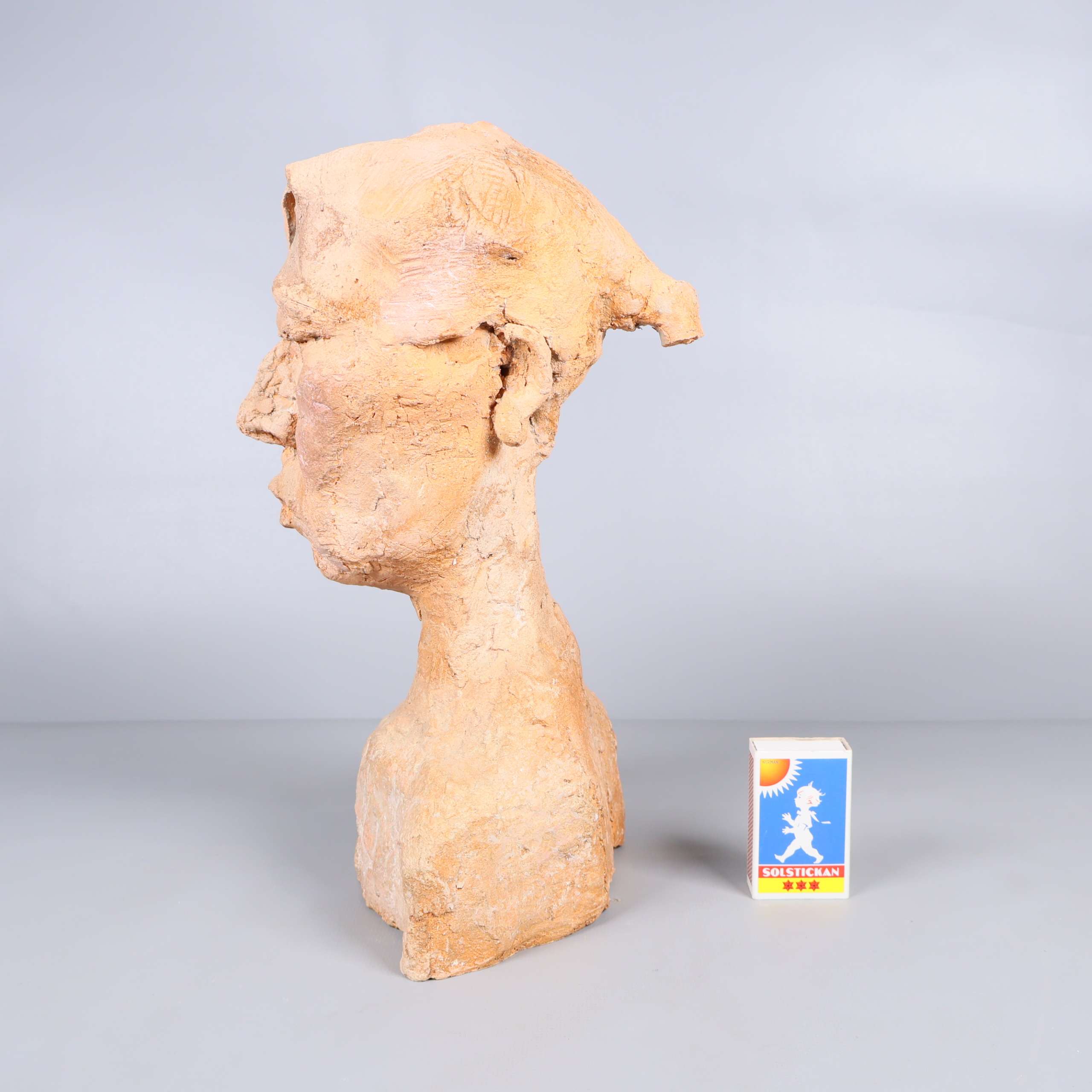 Unik skulptur med uttrycksfulla drag och rå, texturad yta som skapar en handgjord och konstnärlig känsla. Den ljusbruna tonen ger en varm och jordnära look som passar perfekt som ett dekorativt statement i hemmet.