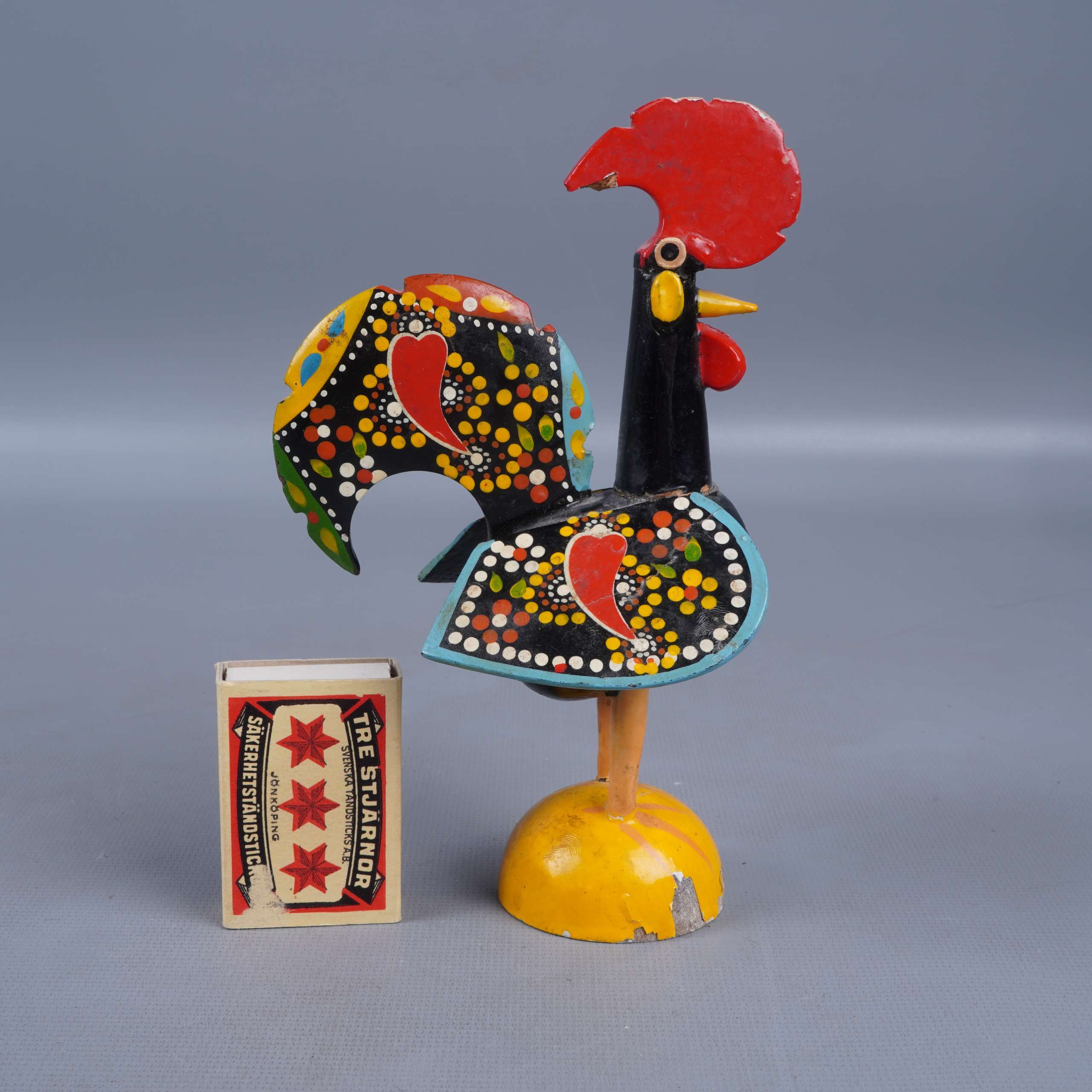 Målad trätupp med prickmönster 69 kr Product variation Antal st Beskrivning Färgstark trätupp med handmålat mönster och många prickar. Svart kropp med röda och gula detaljer ger en lekfull, folk art-inspirerad känsla. Passar som dekoration eller samlarobjekt och ger ett personligt uttryck till hemmet. Visa all beskrivning Detaljer Höjd: 18 cmLängd: 11 cmÖvrigt: SPRIKOR Skick Använt skick Produkten har blivit använd och kan ha slitits eller ha mindre skador Läs mer om hur vi bedömer Färg Svart Material Trä Produkten är unik och finns enbart som 1 st i lager. Fri frakt på alla köp över 990 kr. 14 dagars ångerrät.