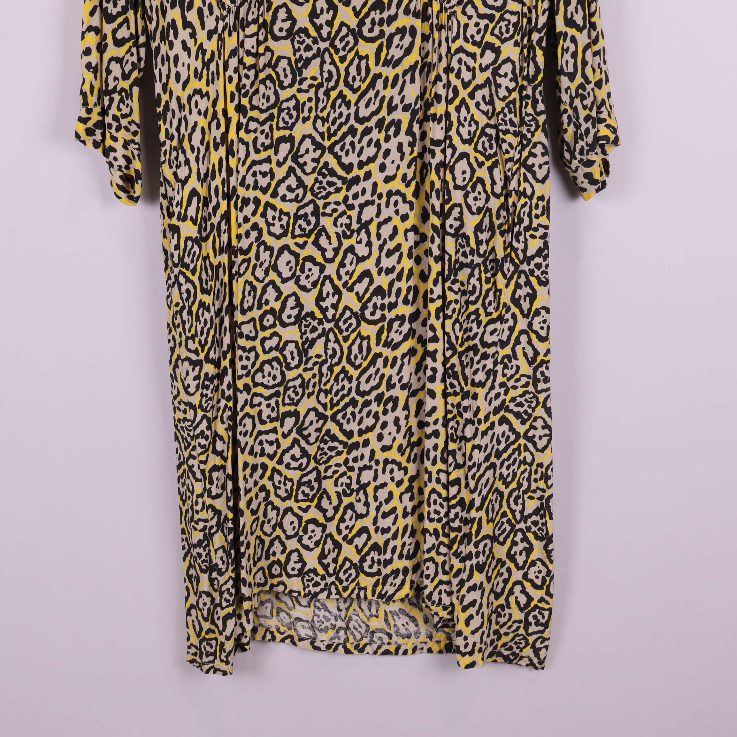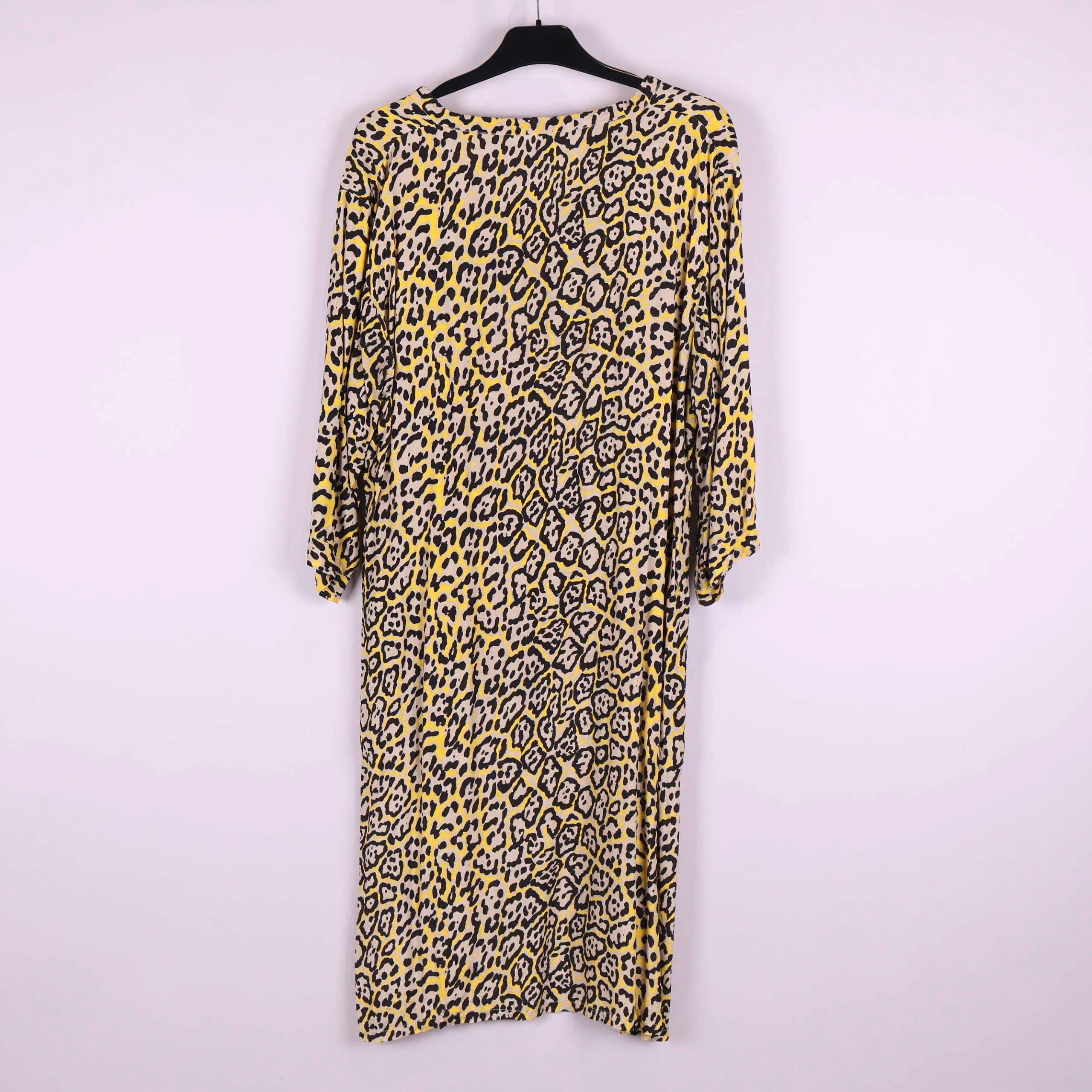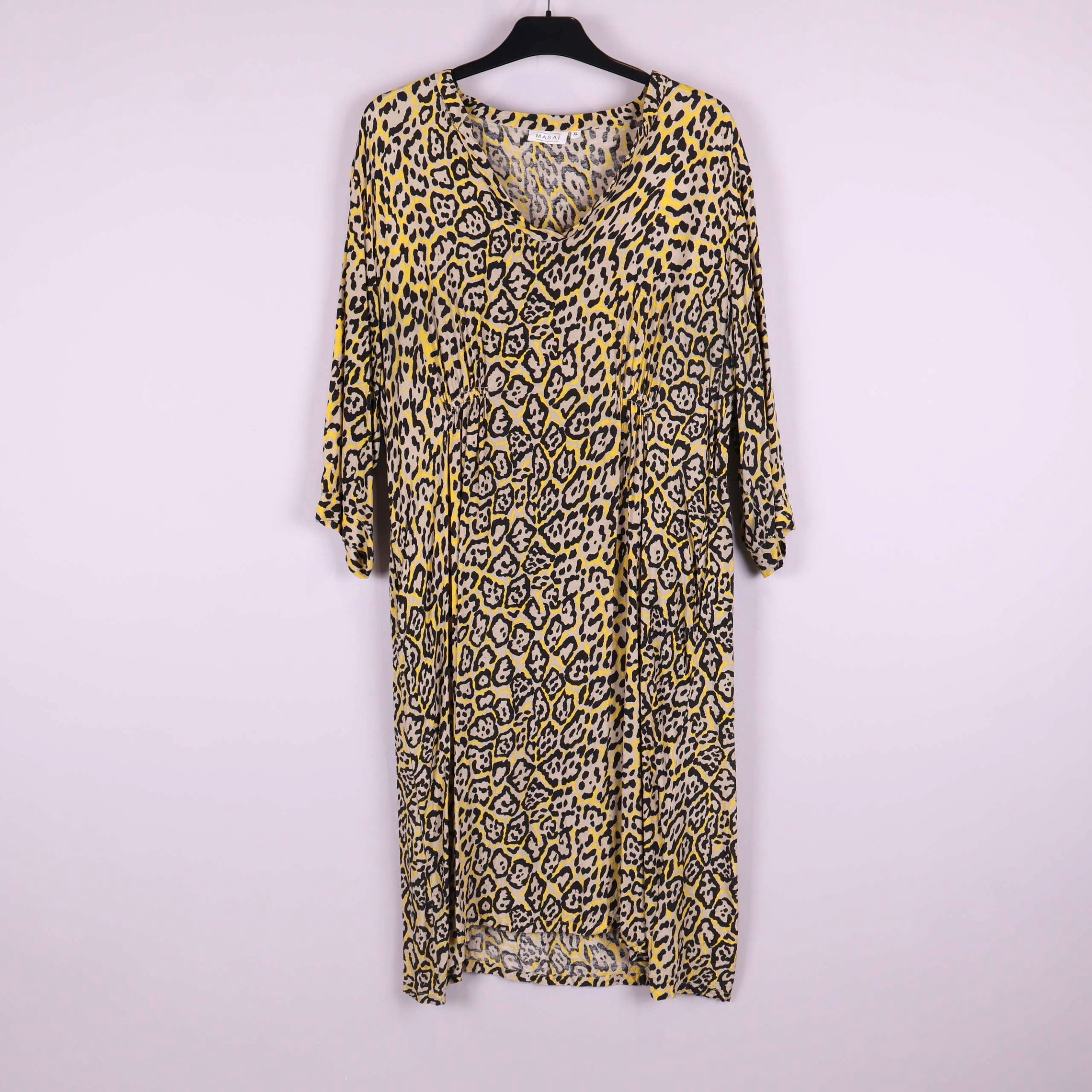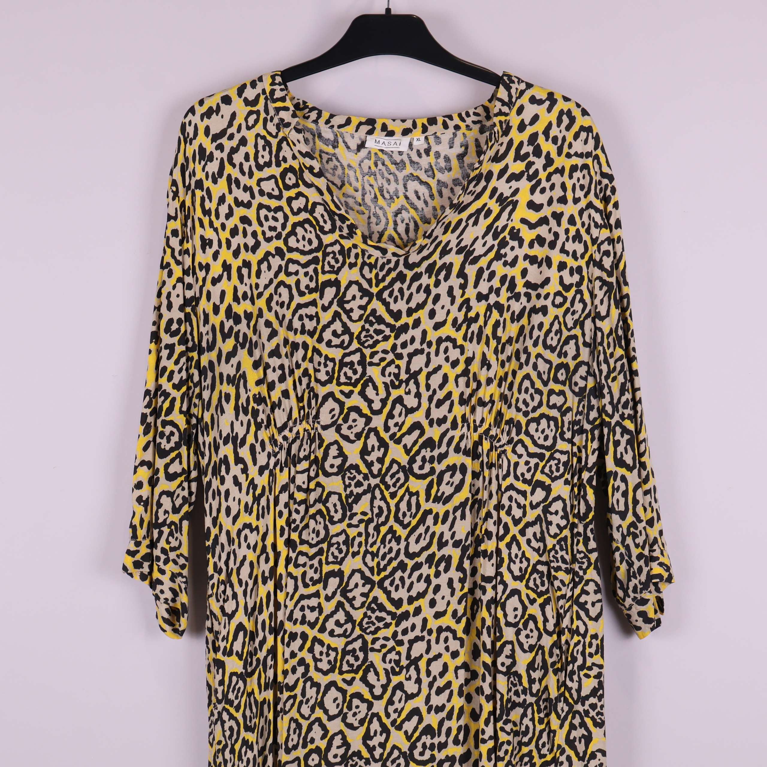En lätt och flowy klänning från Masai med grafiskt leopardmönster i gula, svarta och beige toner. Designen ger en cool och modern vibe, med halvlånga ärmar och avslappnad passform för extra rörelsefrihet. Tillverkad i mjuk viskos för en skön känsla mot huden. Perfekt för dig som gillar färgstarka och uttrycksfulla mönster.