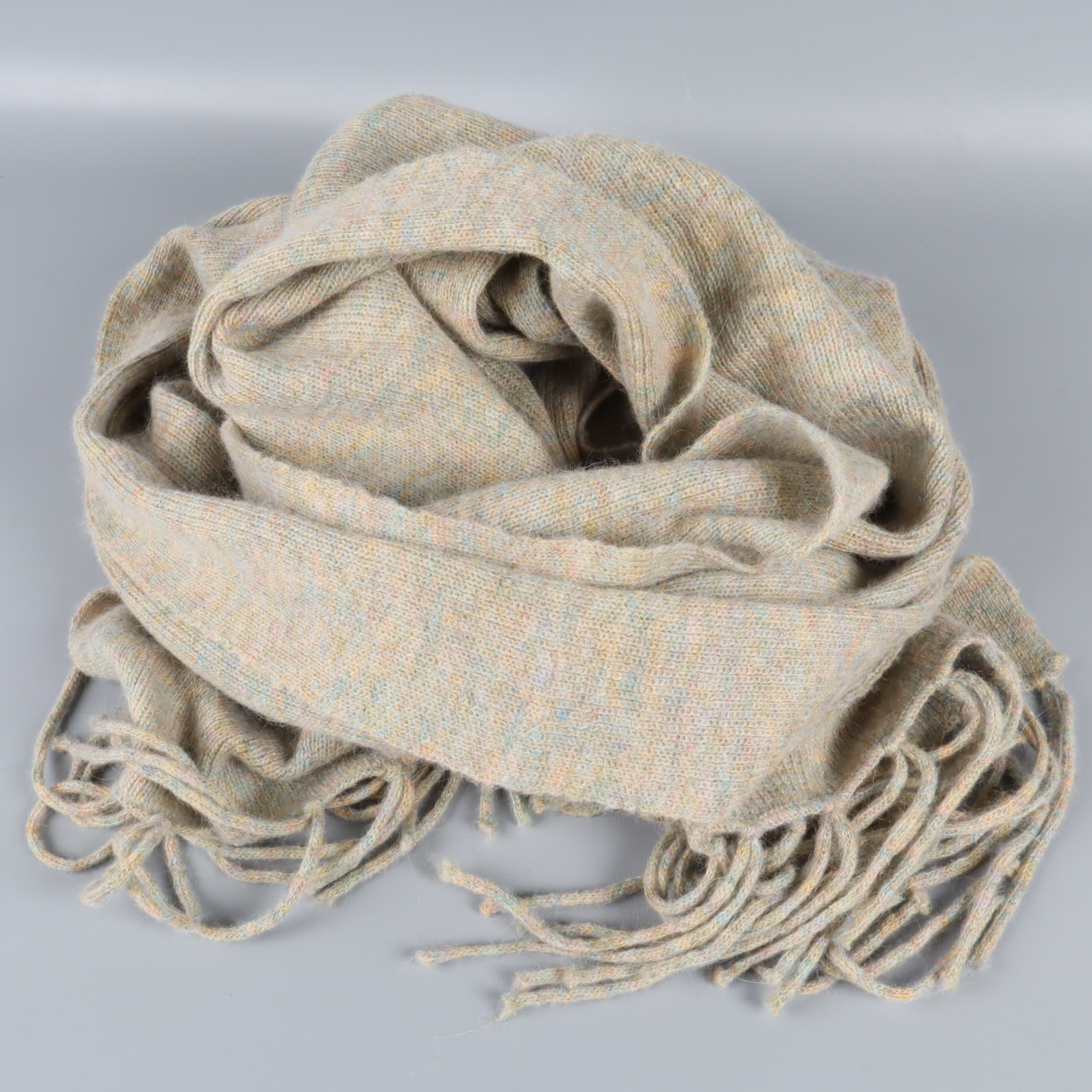 Mysig halsduk med melerad look i mjuka nyanser och dekorativa fransar i båda ändar. Den stickade strukturen ger en klassisk och avslappnad känsla, enkel att bära runt halsen när du vill ha något både snyggt och bekvämt. Perfekt accessoar för dig som gillar en tidlös stil med extra cozy touch.