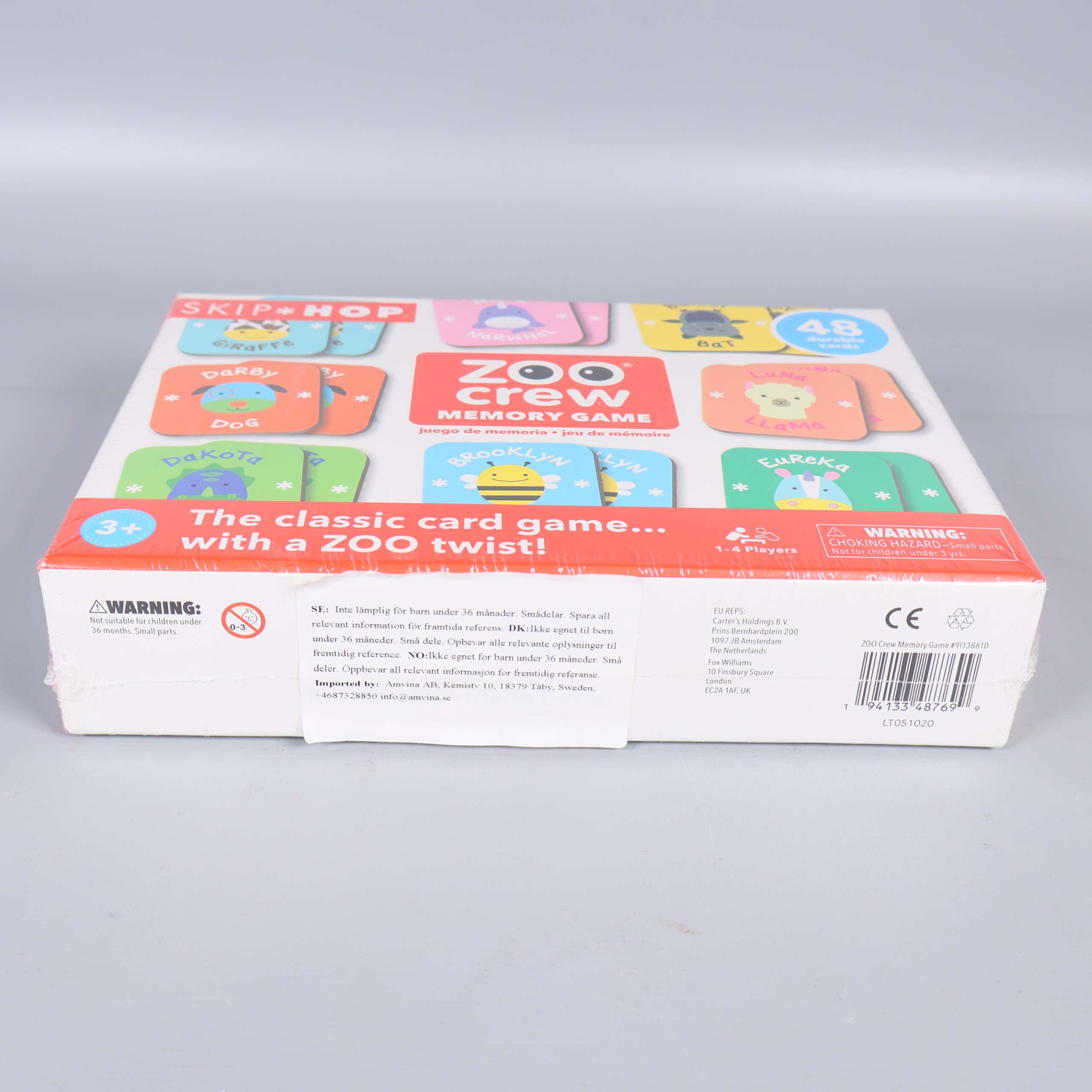SKIP*HOP Memoryspel - Zoo Crew 49 kr Product variation Antal st Beskrivning Färgglatt memoryspel med djurmotiv från Zoo Crew-serien, perfekt för små händer. Innehåller 48 stadiga kort med söta illustrationer i en smart förpackning. Visa all beskrivning Skick Nytt skick Produkten är som ny. Kan till och med ha orginalprislapp kvar eller ligga i originalförpackning. Läs mer om hur vi bedömer Number of pieces 48 Number of players 1-4 Age 3+ Varumärke SKIP*HOP Produkten är unik och finns enbart som 1 st i lager. Fri frakt på alla köp över 990 kr. 14 dagars ångerrät.