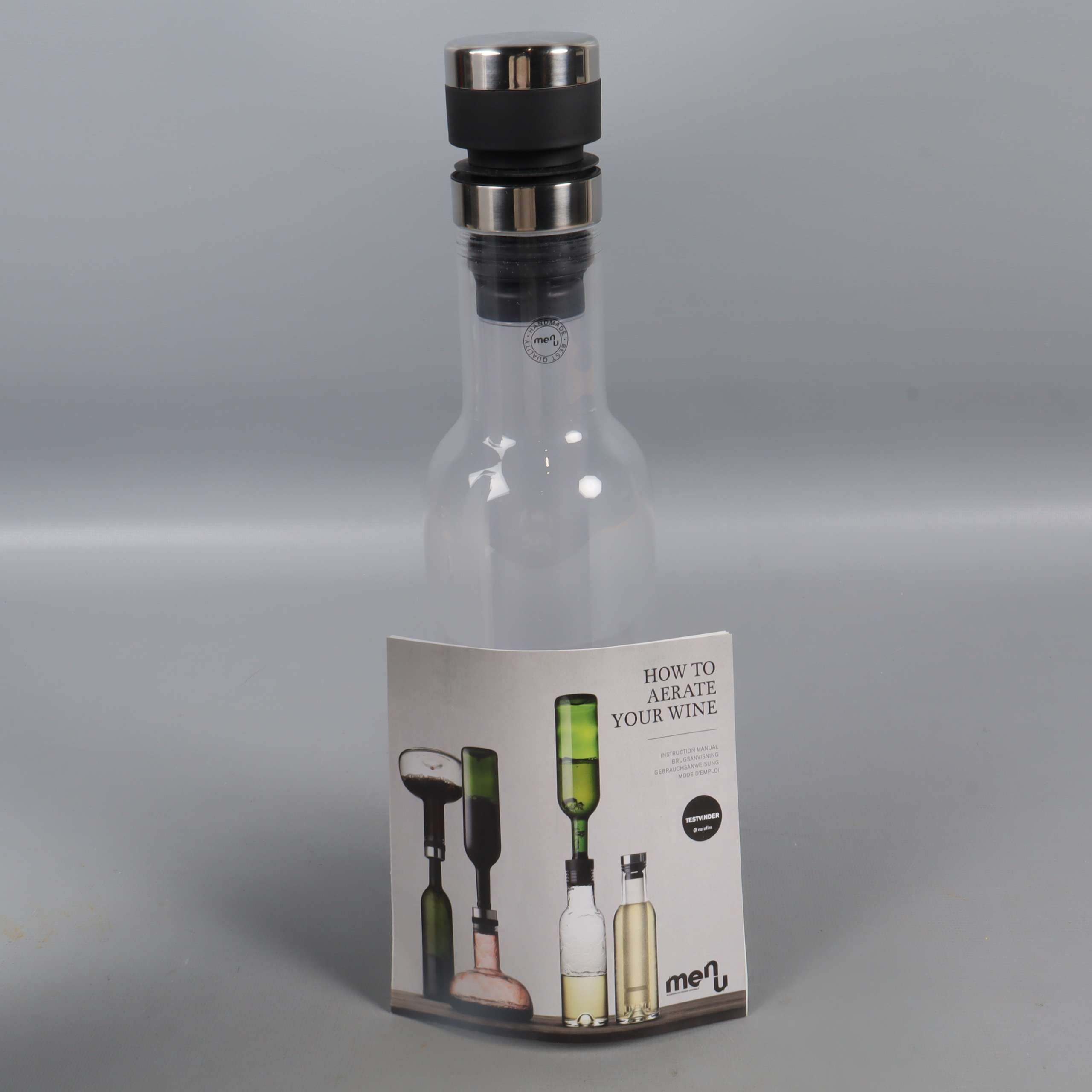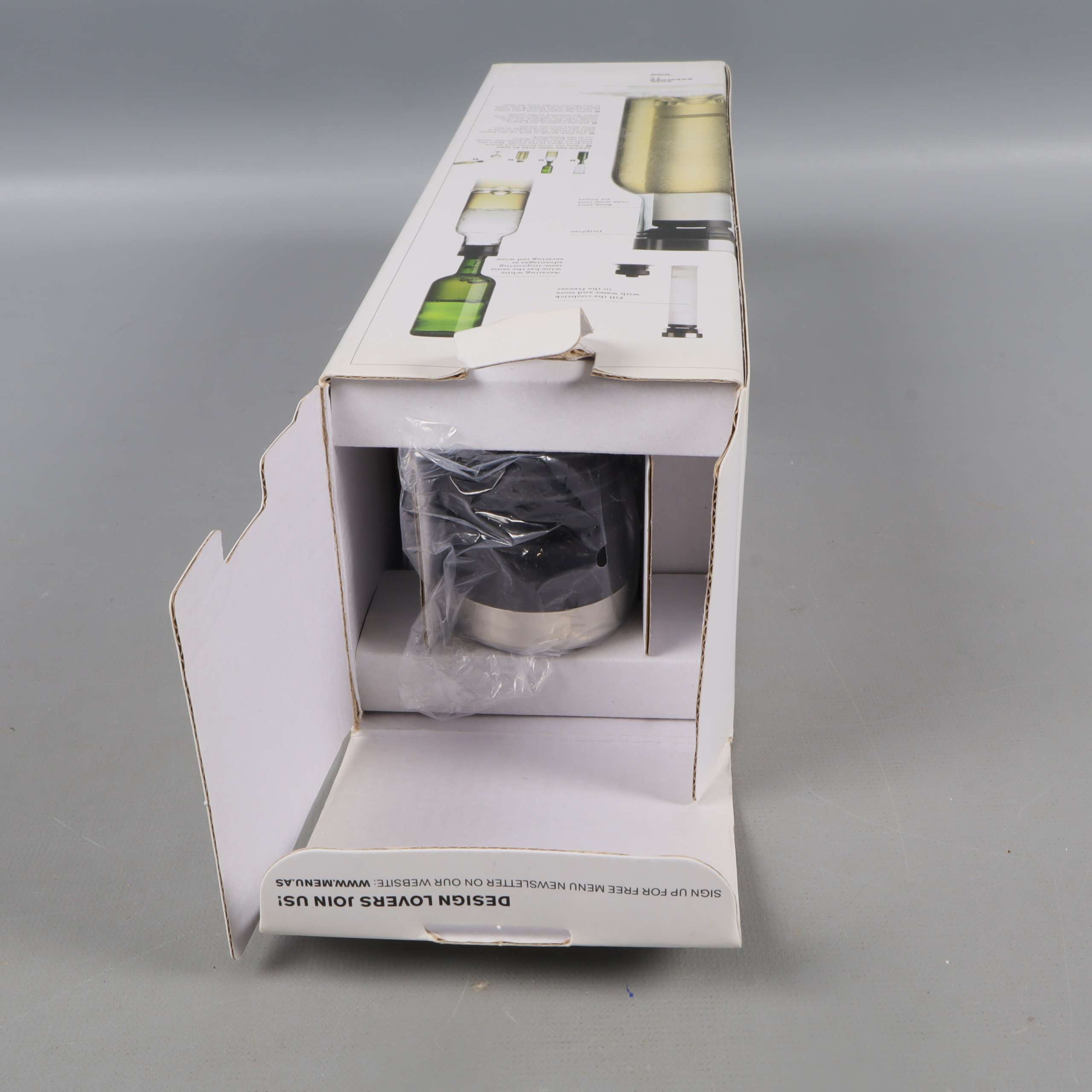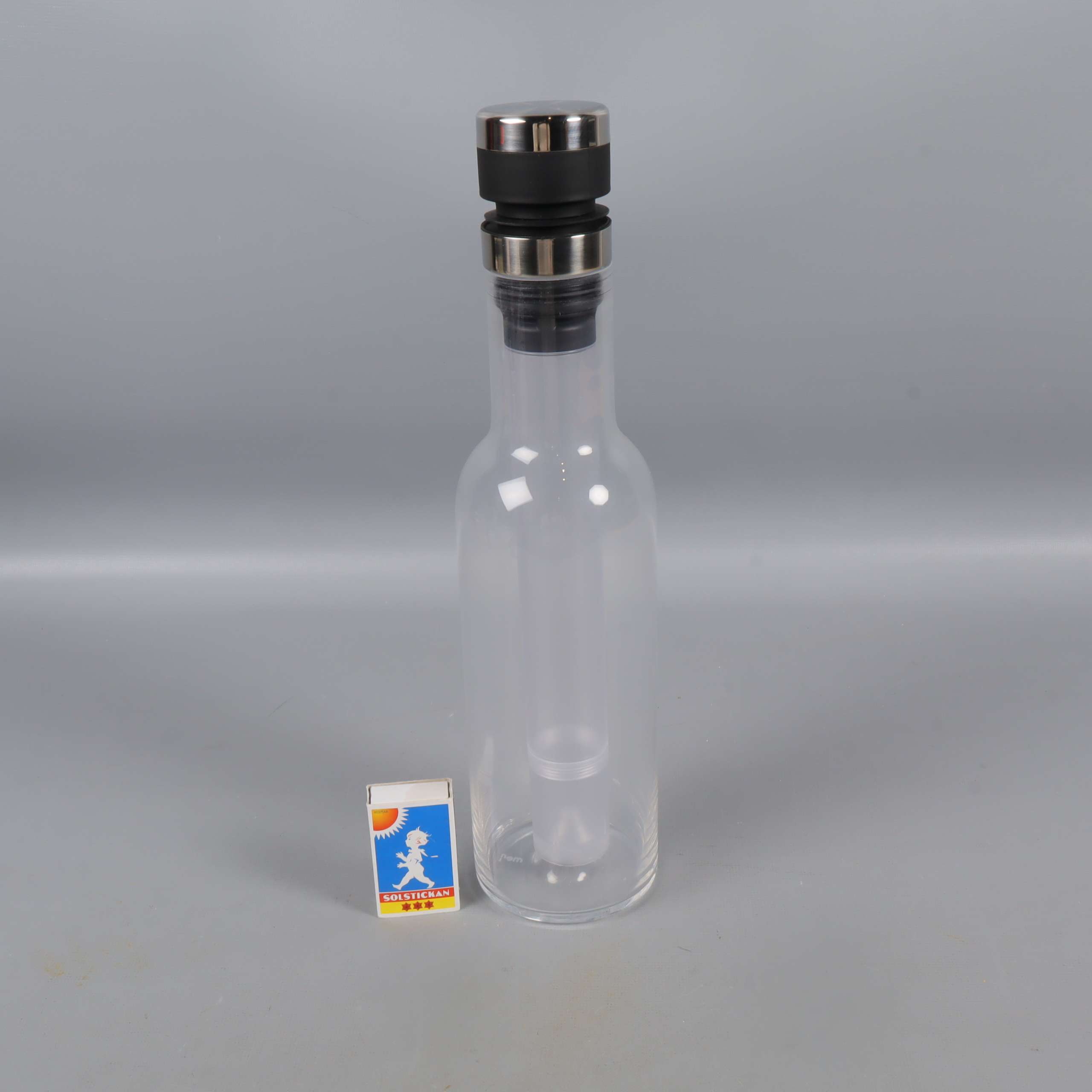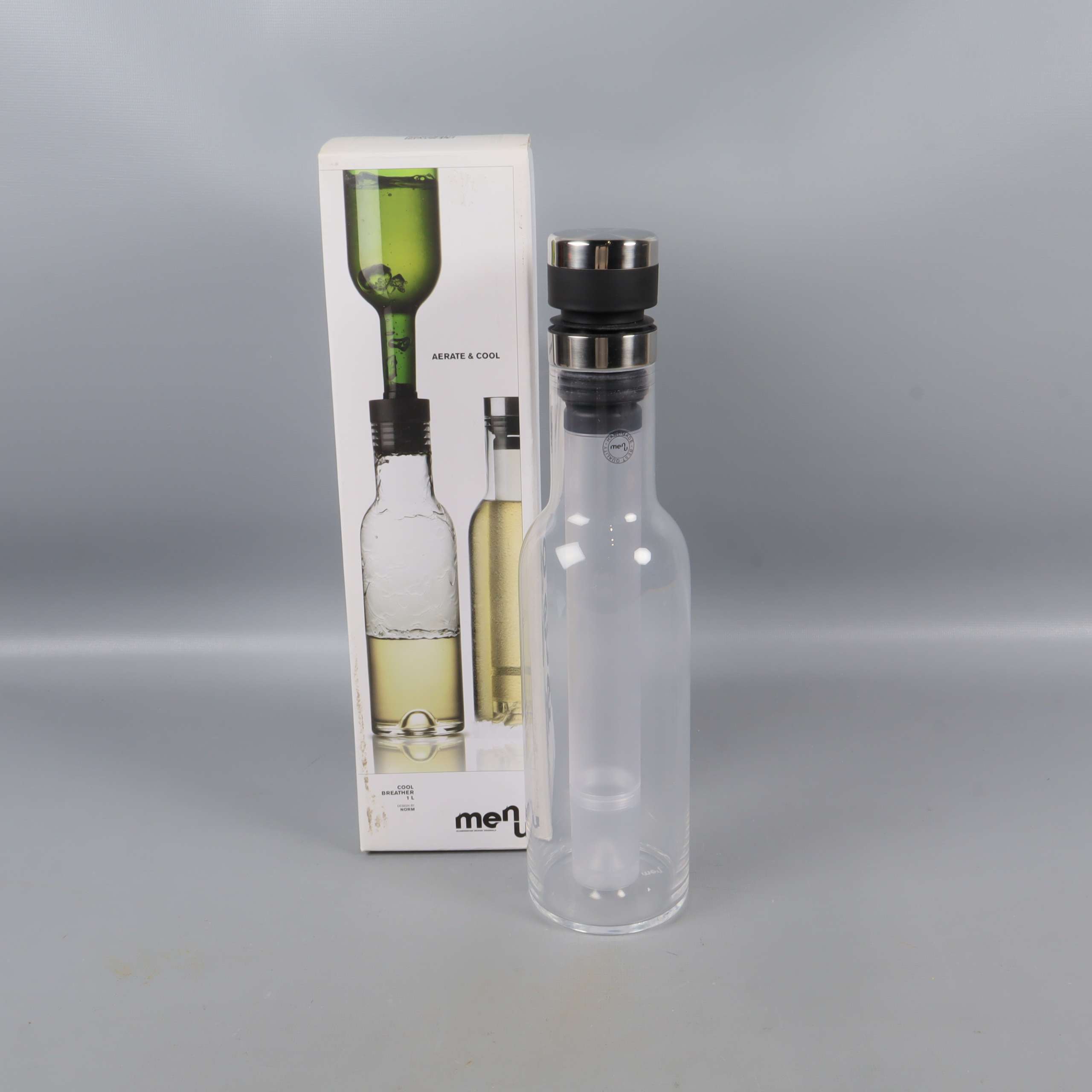 Modern karaff med stilren design från Menu, utrustad med en avtagbar kylstav och eleganta detaljer i metall. Den handblåsta, transparenta flaskan ger en klassisk känsla som passar både till vardag och fest, och höjden på 28 cm gör den till ett praktiskt och snyggt inslag på bordet.