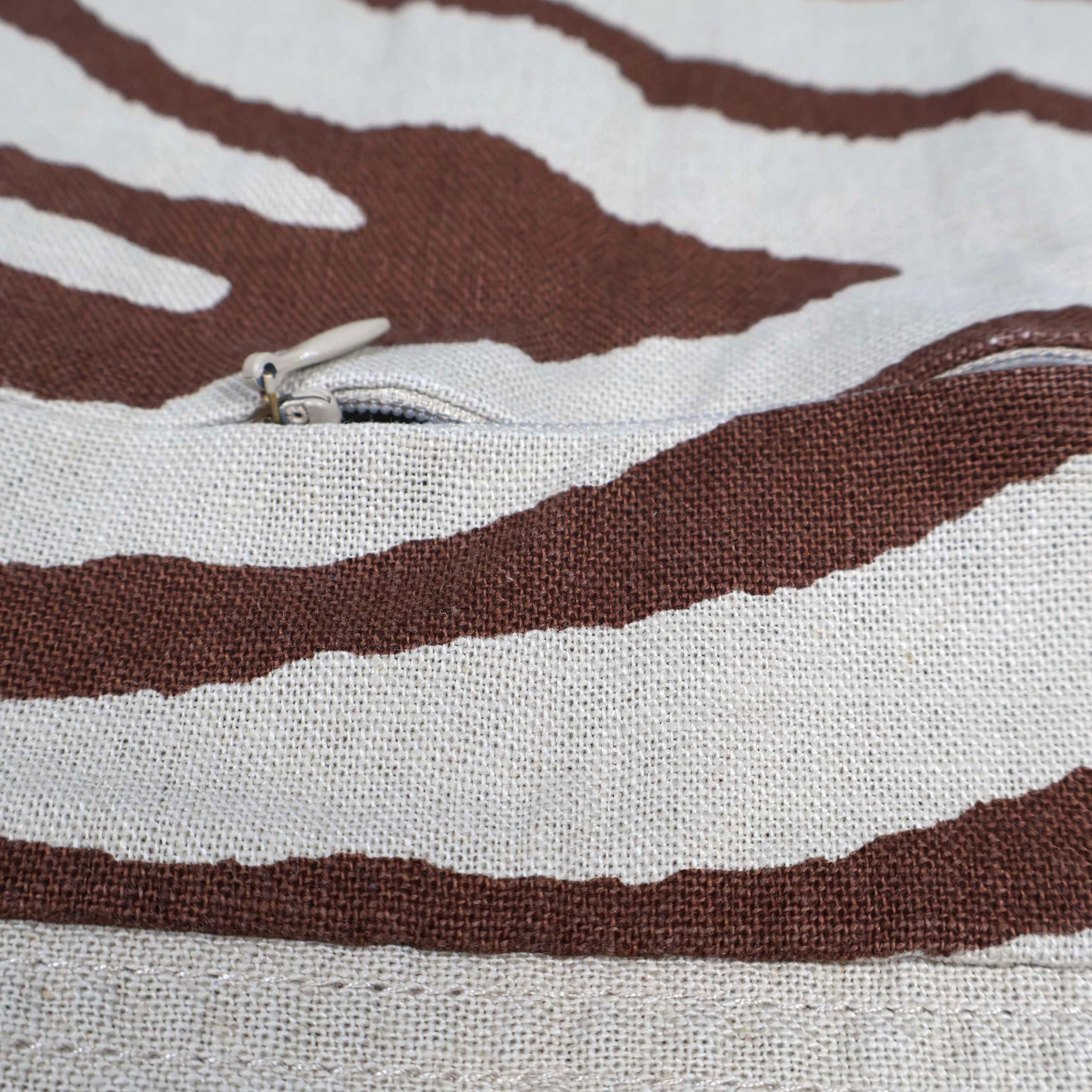Kuddfodral i linnemix med ett modernt zebramönster i beige och brunt, snyggt markerat kantband och dold dragkedja. Tidlös design från Michael Kors ger ett elegant uttryck som passar både soffan och sängen. Materialet känns mjukt men ändå rustikt.
