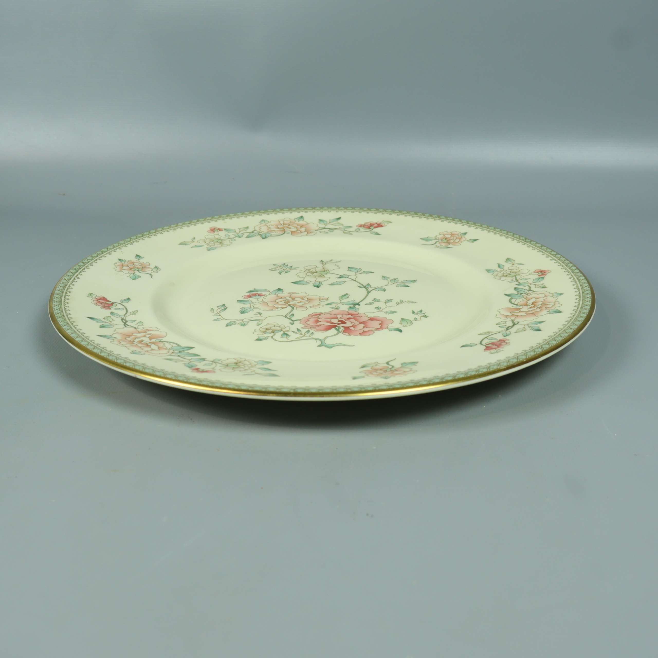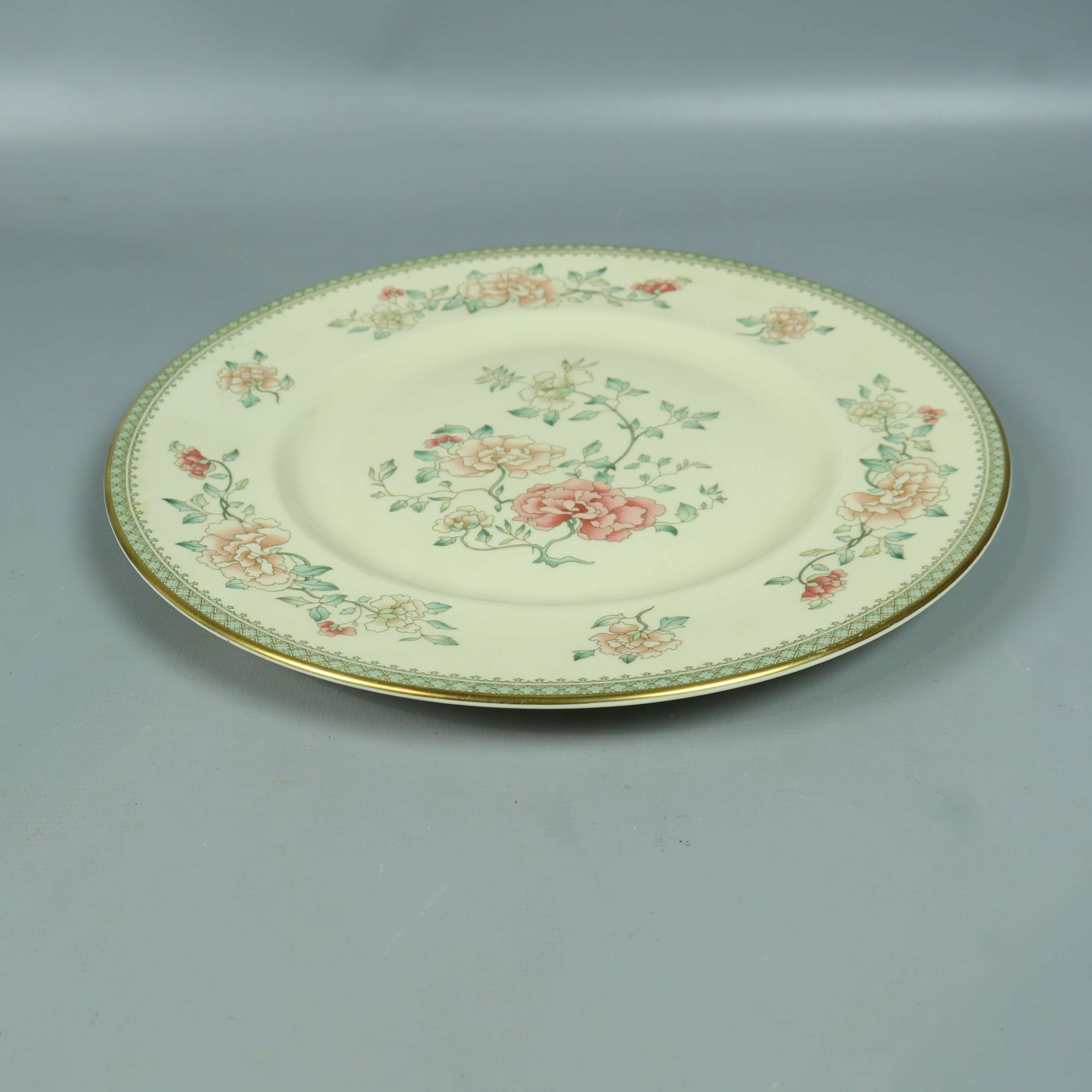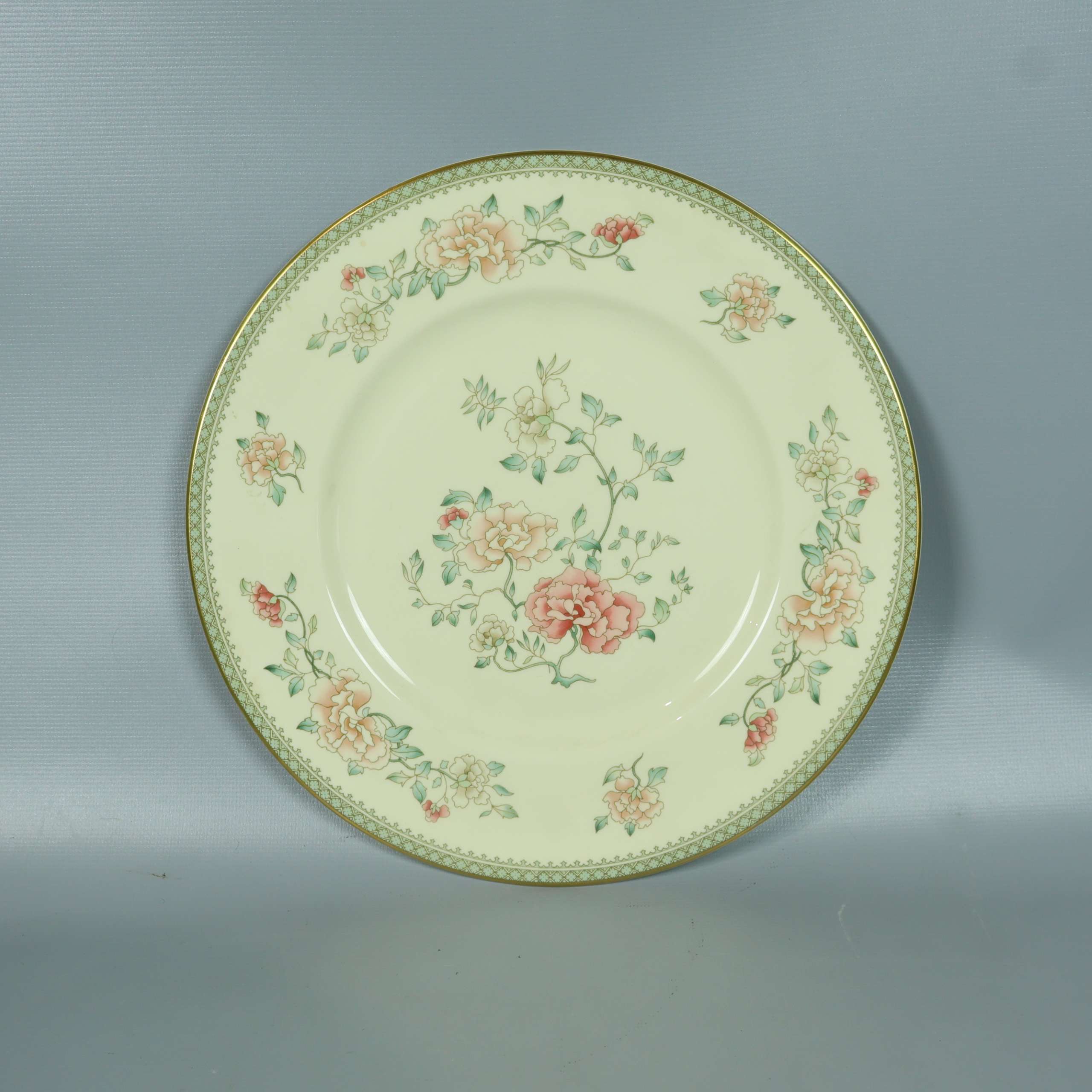 Elegant tallrik med mjuk gräddvit botten och detaljrika blommor i pastellfärger samt guldkant runt kanten. Ger en klassisk, tidlös känsla och passar perfekt om du gillar en romantisk, vintage vibe på dukningen. Diskret och stilfull design som lyfter varje måltid.