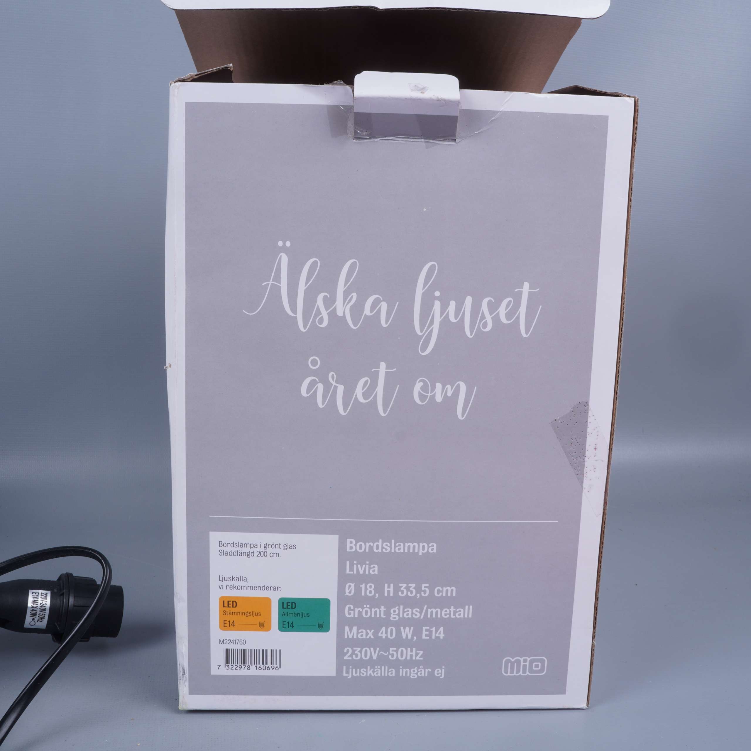 Mio Mio - Bordslampa med grön glaskupa 119 kr Product variation Antal st Beskrivning En stilren bordslampa med skulptural grön glasfot och lampskärm med blommigt mönster. Den klassiska designen och eleganta formen ger ett mysigt intryck, perfekt som accent i olika rum. Svart sladd med strömbrytare ger en enkel och praktisk detalj. Visa all beskrivning Skick Nytt skick Produkten är som ny. Kan till och med ha orginalprislapp kvar eller ligga i originalförpackning. Läs mer om hur vi bedömer Dimensions Höjd: 33,5cm Diameter: 18cm Färg Grön Material Glas Varumärke Mio Produkten är unik och finns enbart som 1 st i lager. Fri frakt på alla köp över 990 kr. 14 dagars ångerrät.