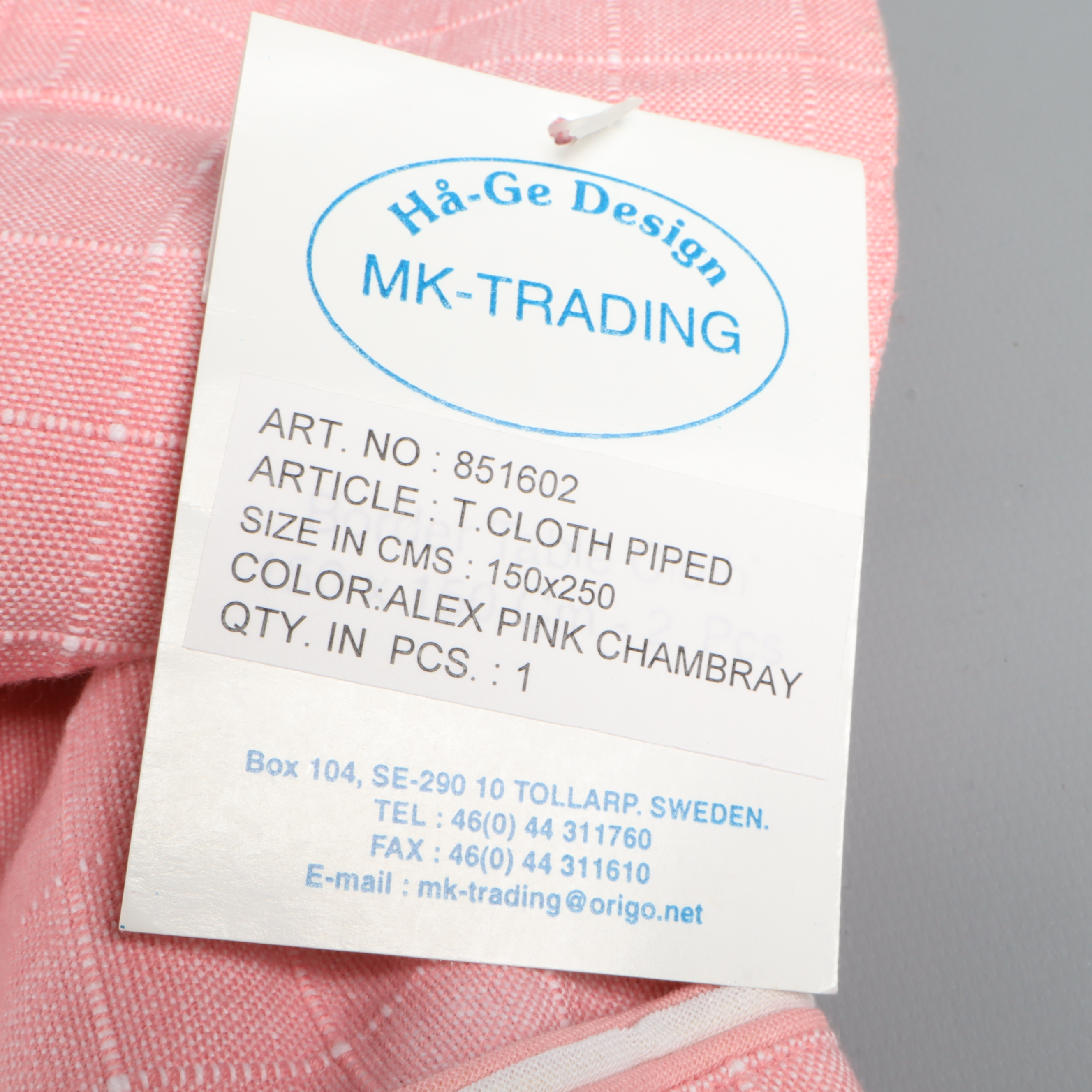 MK-TRADING MK-TRADING Hå-Ge Design duk med med rutmönster 199 kr Product variation Antal st Beskrivning En mjuk duk i ljusrosa med diskret rutmönster och vit kant. Tillverkad i 100% bomull för en skön känsla och modern look. Skick Nytt skick Plagget eller prylen är som ny. Kan till och med ha orginalprislapp kvar eller ligga i originalförpackning. Läs mer om hur vi bedömer Dimensions Längd: ca 250cm, Bredd: ca 150cm Färg Rosa Material Bomull Varumärke MK-TRADING Produkten är unik och finns enbart som 1 st i lager. Fri frakt på alla köp över 990 kr. 14 dagars ångerrät.