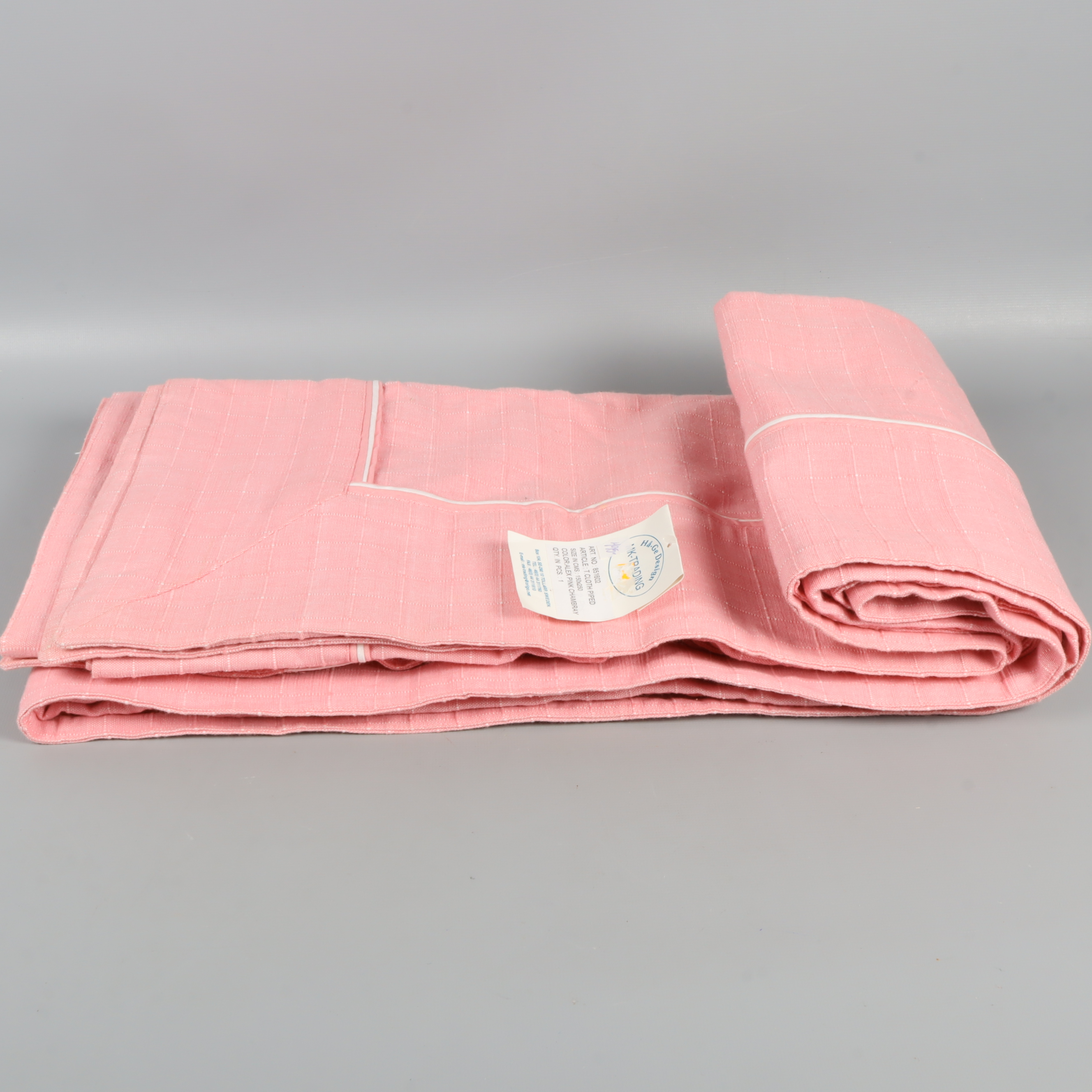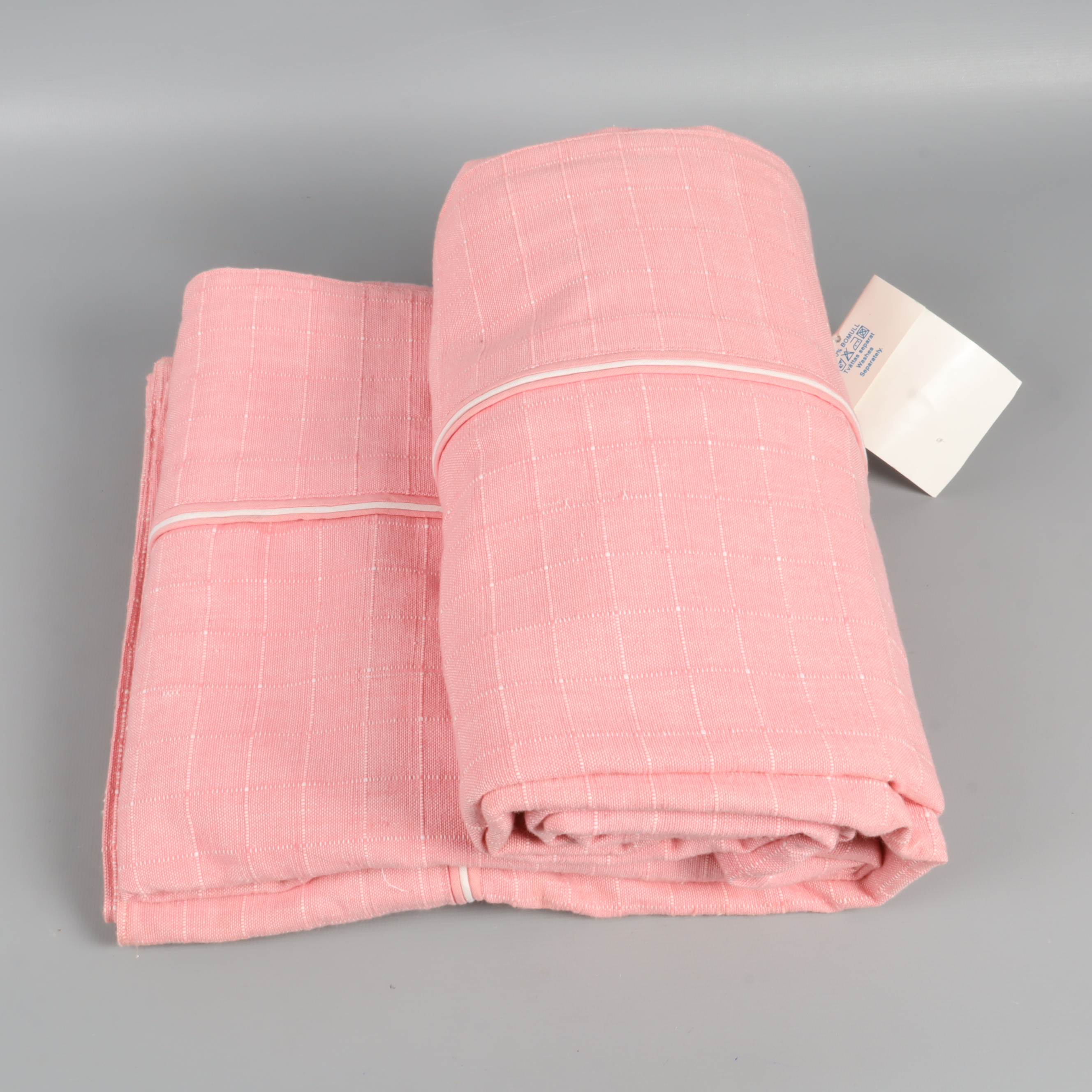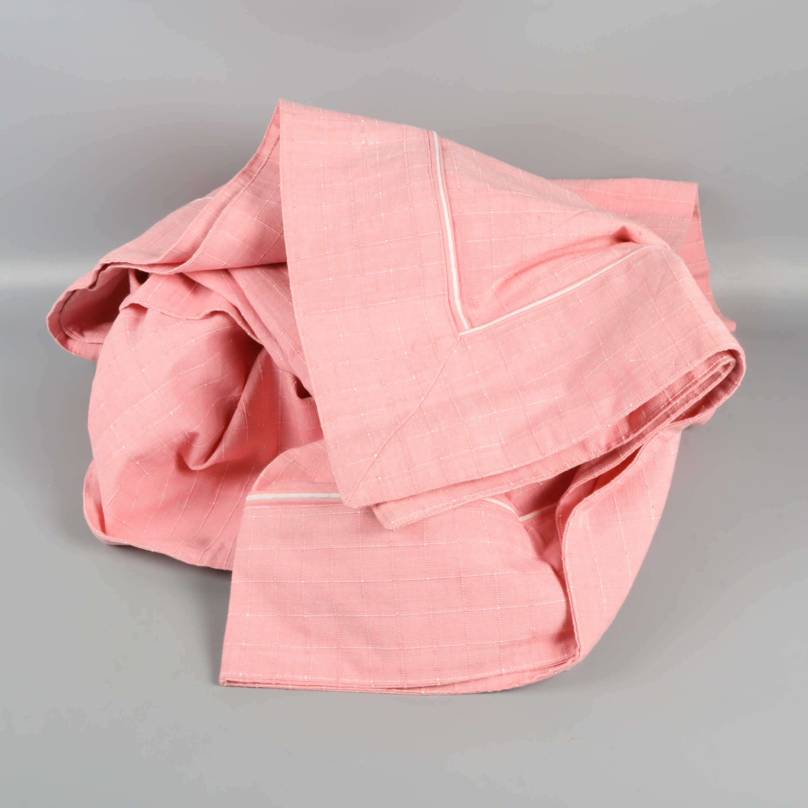 Den här mjuka duken i rosa nyans har ett diskret rutmönster med vita sömmar och en ljus passpoal i kanten. Tillverkad av 100% bomull för en naturlig känsla.
