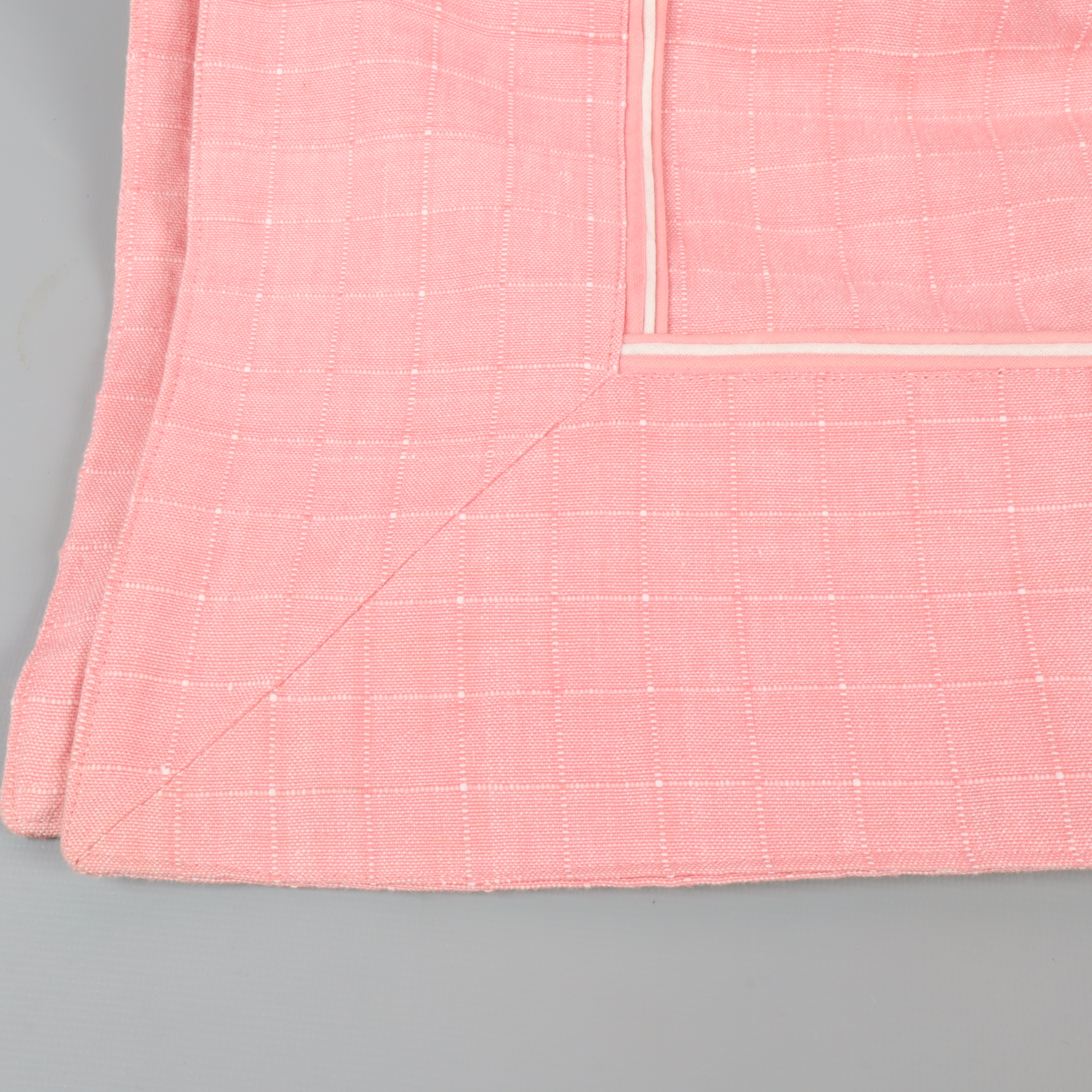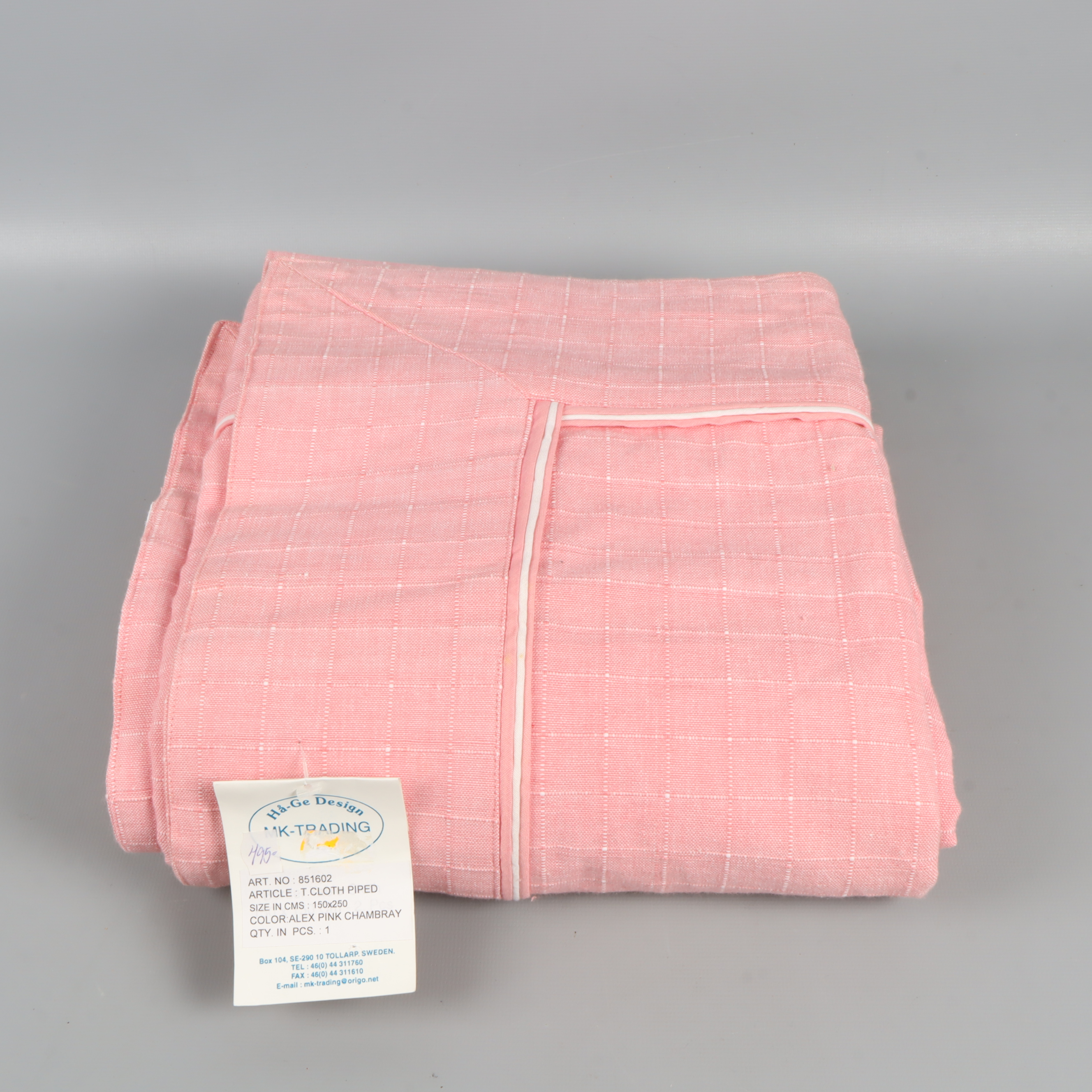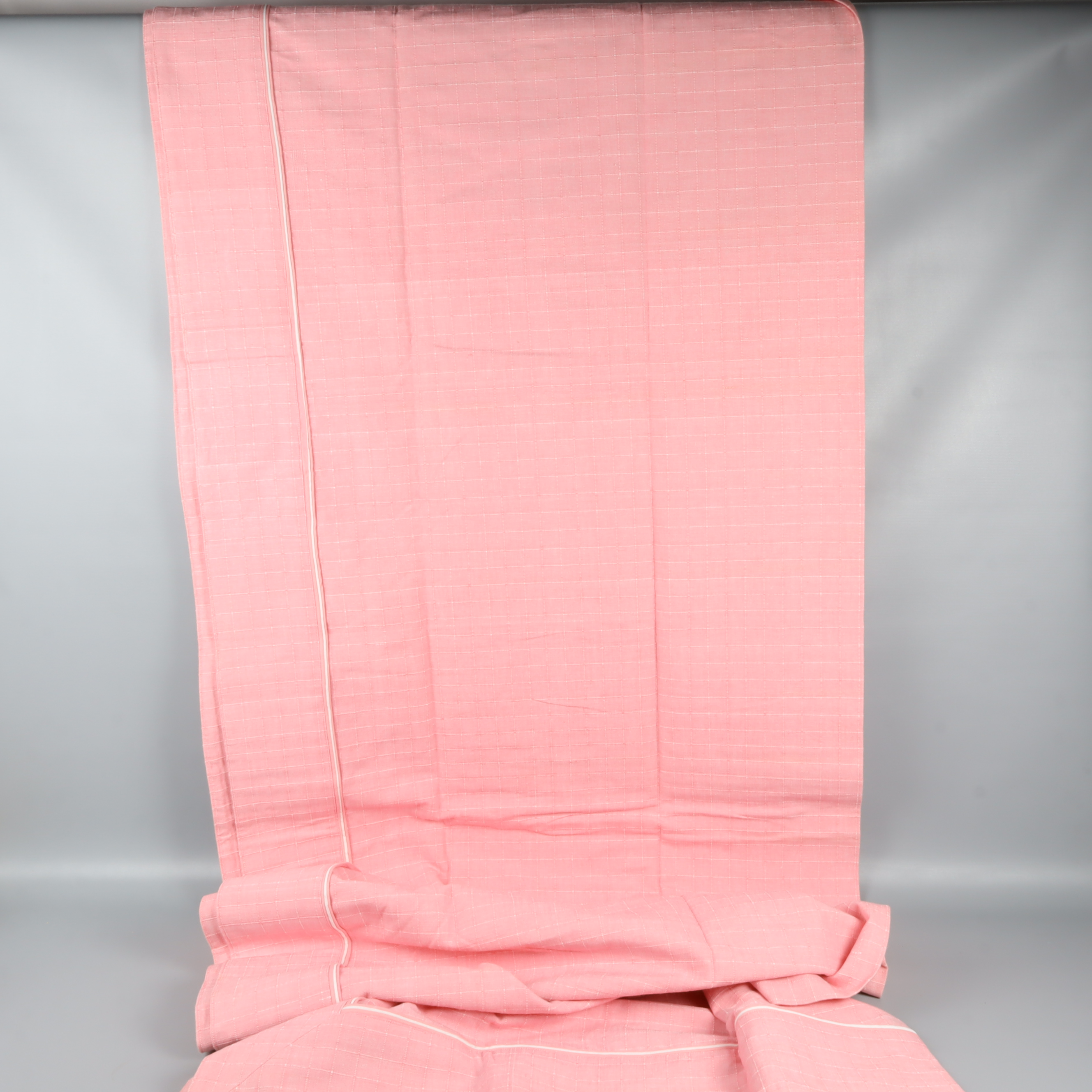 Den här mjuka duken i rosa nyans har ett diskret rutmönster med vita sömmar och en ljus passpoal i kanten. Tillverkad av 100% bomull för en naturlig känsla.