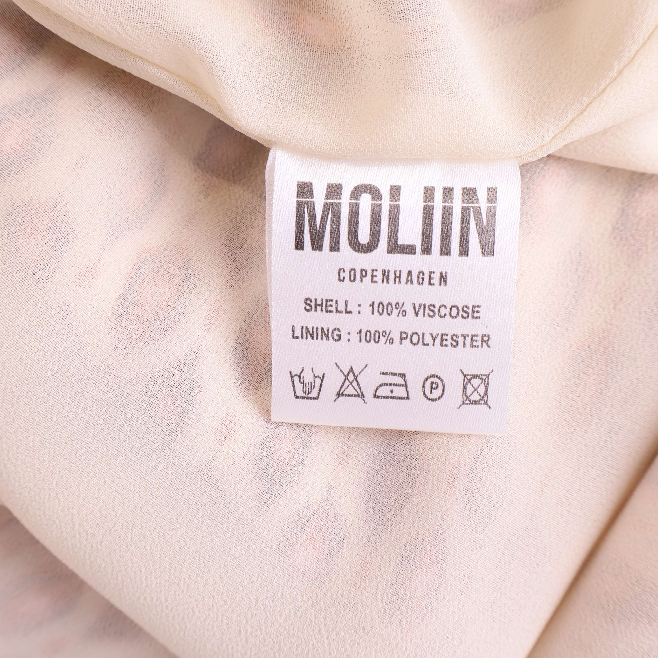 Den här klänningen från MOLIIN har ett färgstarkt grafiskt mönster och lång ärm. Materialet ger ett lätt och luftigt intryck, medan den avsmalnade midjan med avtagbart band skapar en smickrande siluett. V-ringning och diskreta volangdetaljer nedtill ger extra stil. Lätt fodrad för en extra skön känsla.