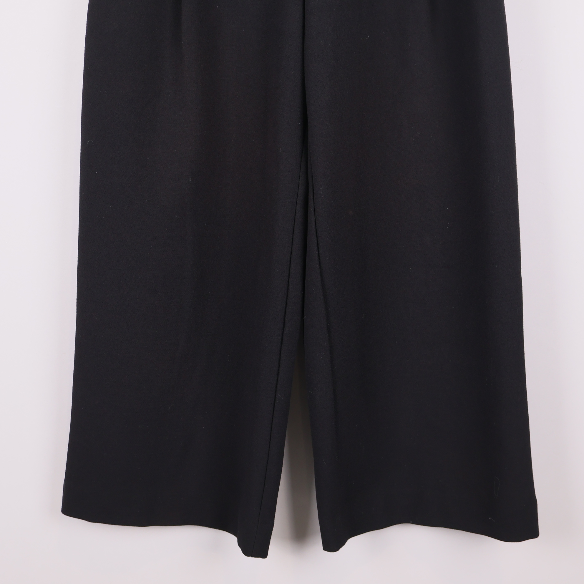 Croppade och vida kostymbyxor från Monki i klassiskt svart tyg. Byxorna har pressveck framtill och är croppade ovanför ankeln för en modern siluett. Modellen har normalhög midja, hällor för skärp och sidfickor.