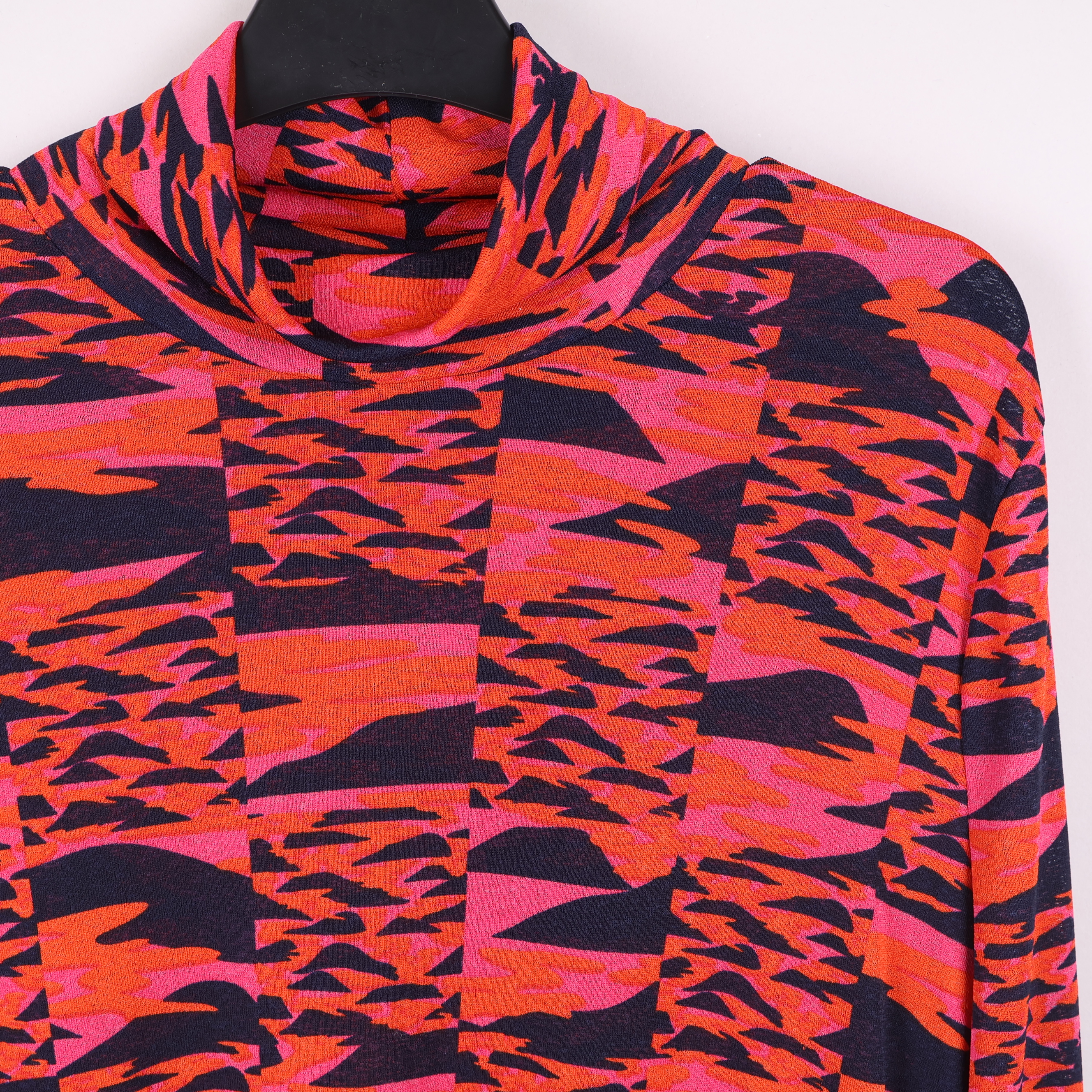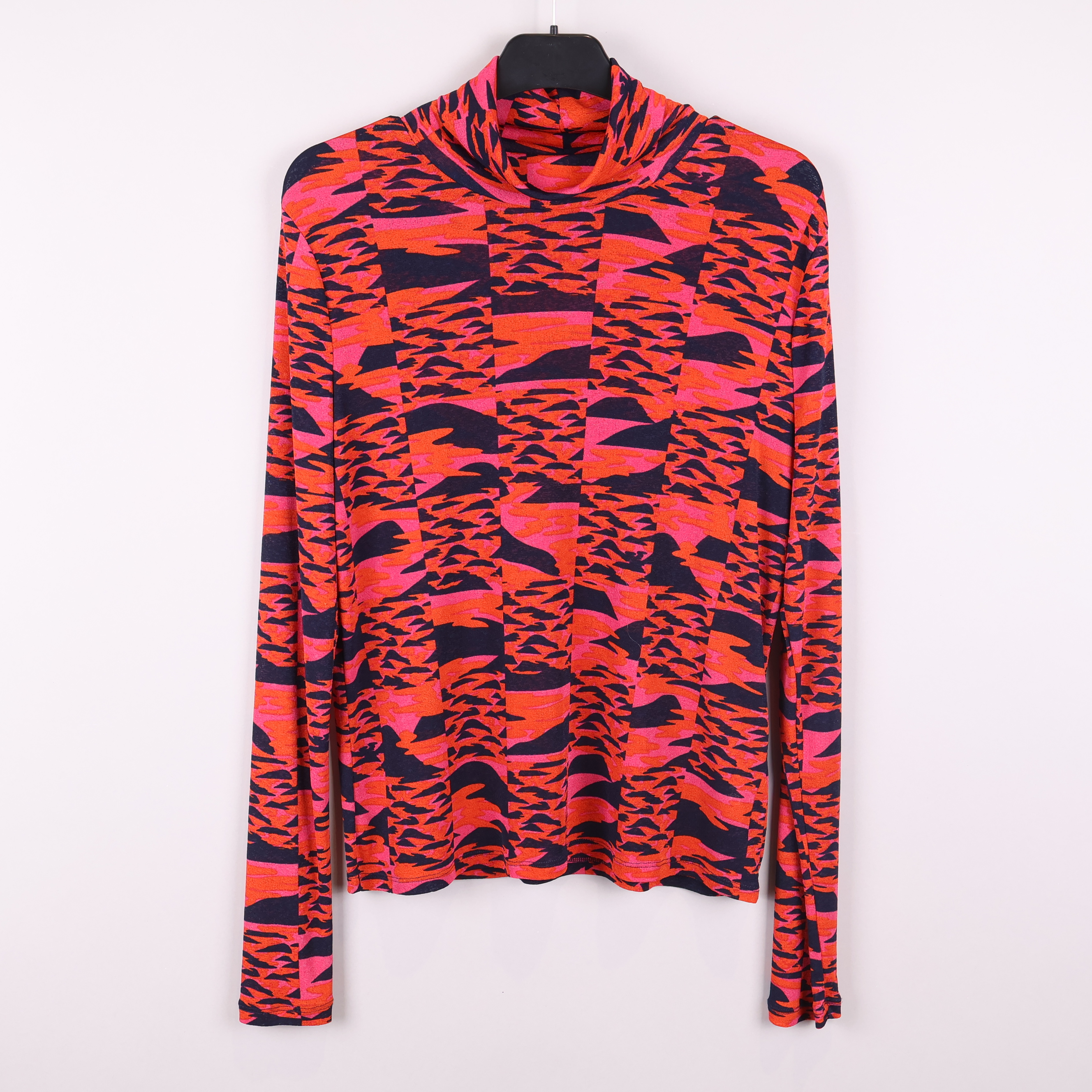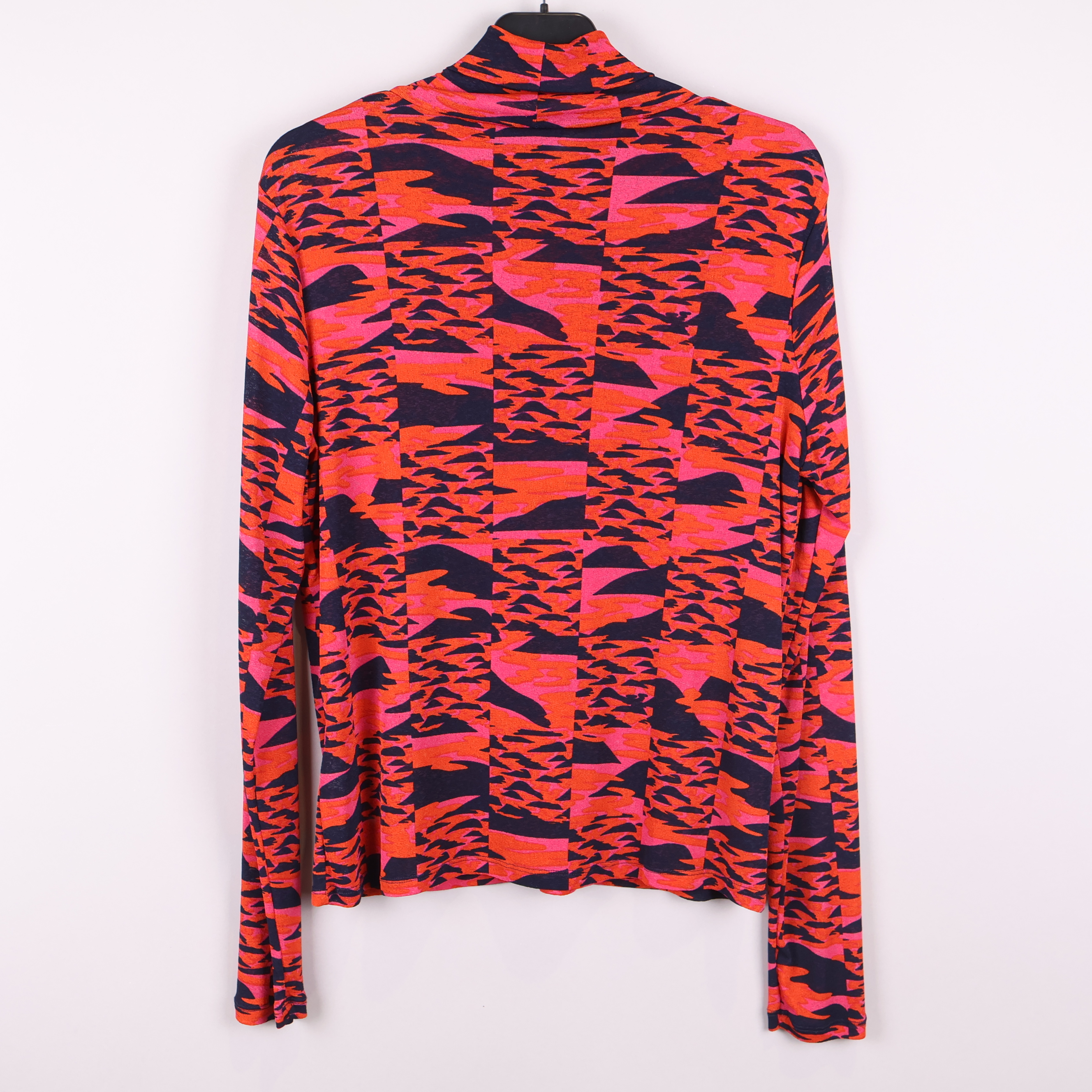 Färgstark polotröja med lång ärm och grafiskt mönster i nyanser av orange, rosa och mörkblått. Tröjan har en tight passform och är tillverkad i mjuk, stretchig polyester med skön känsla mot huden.