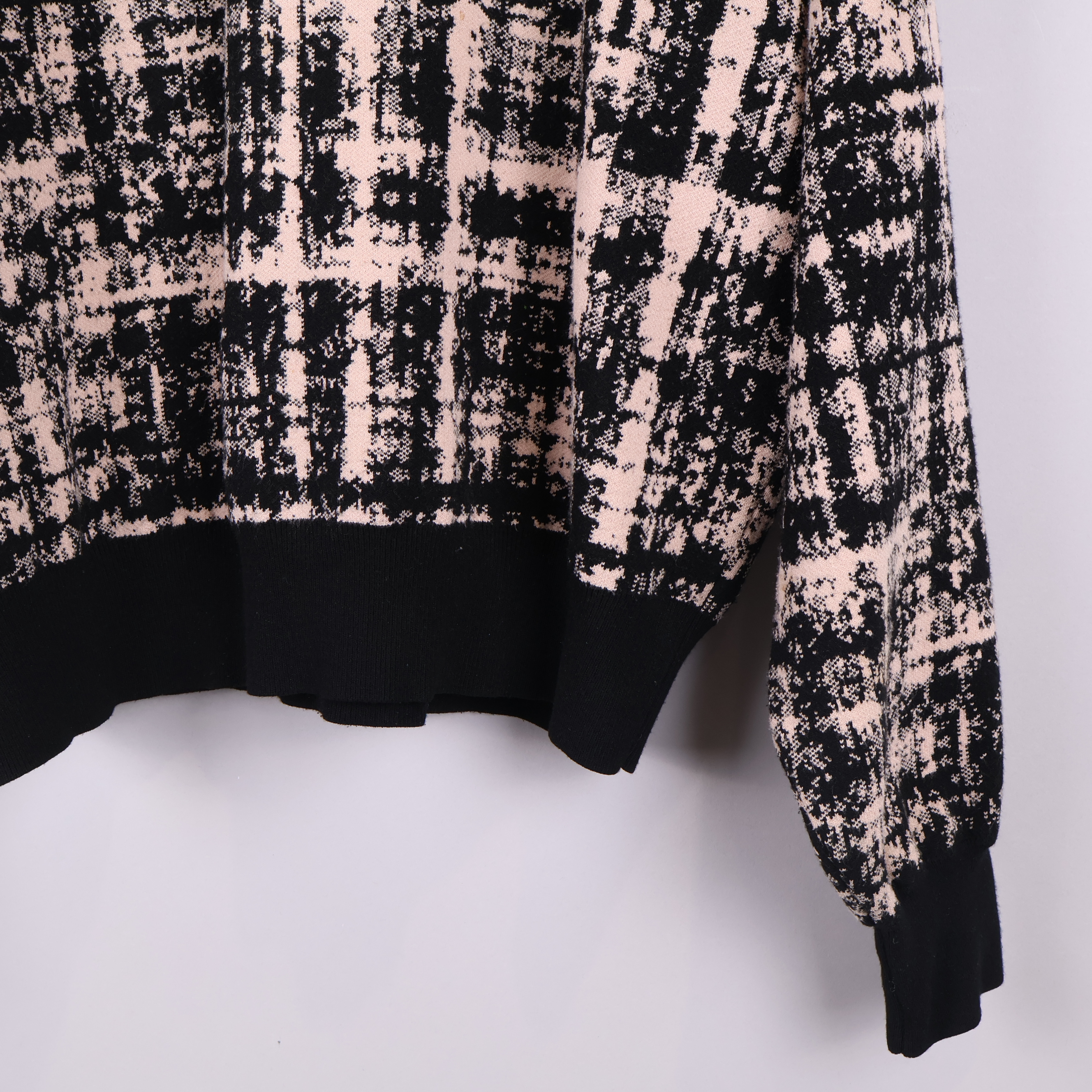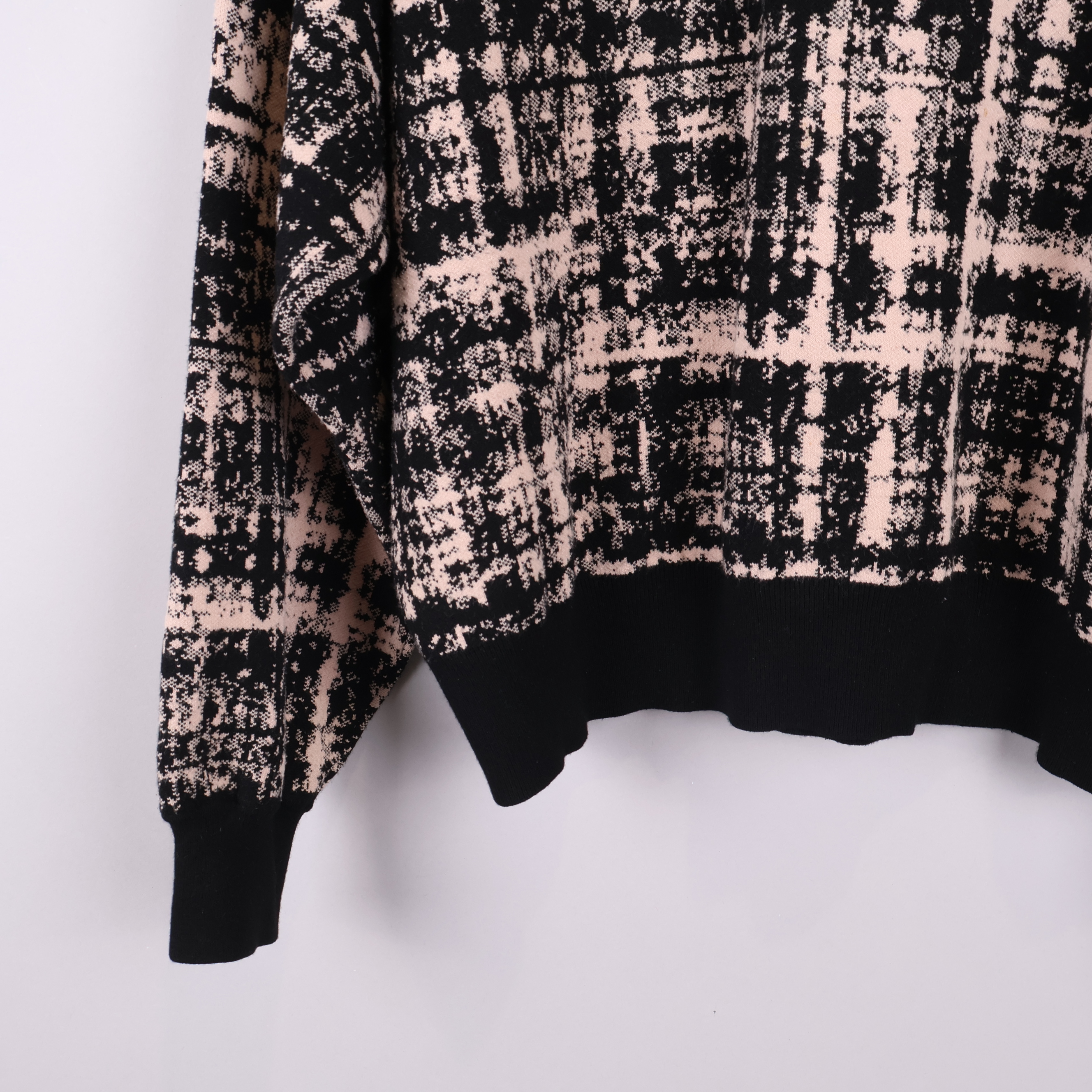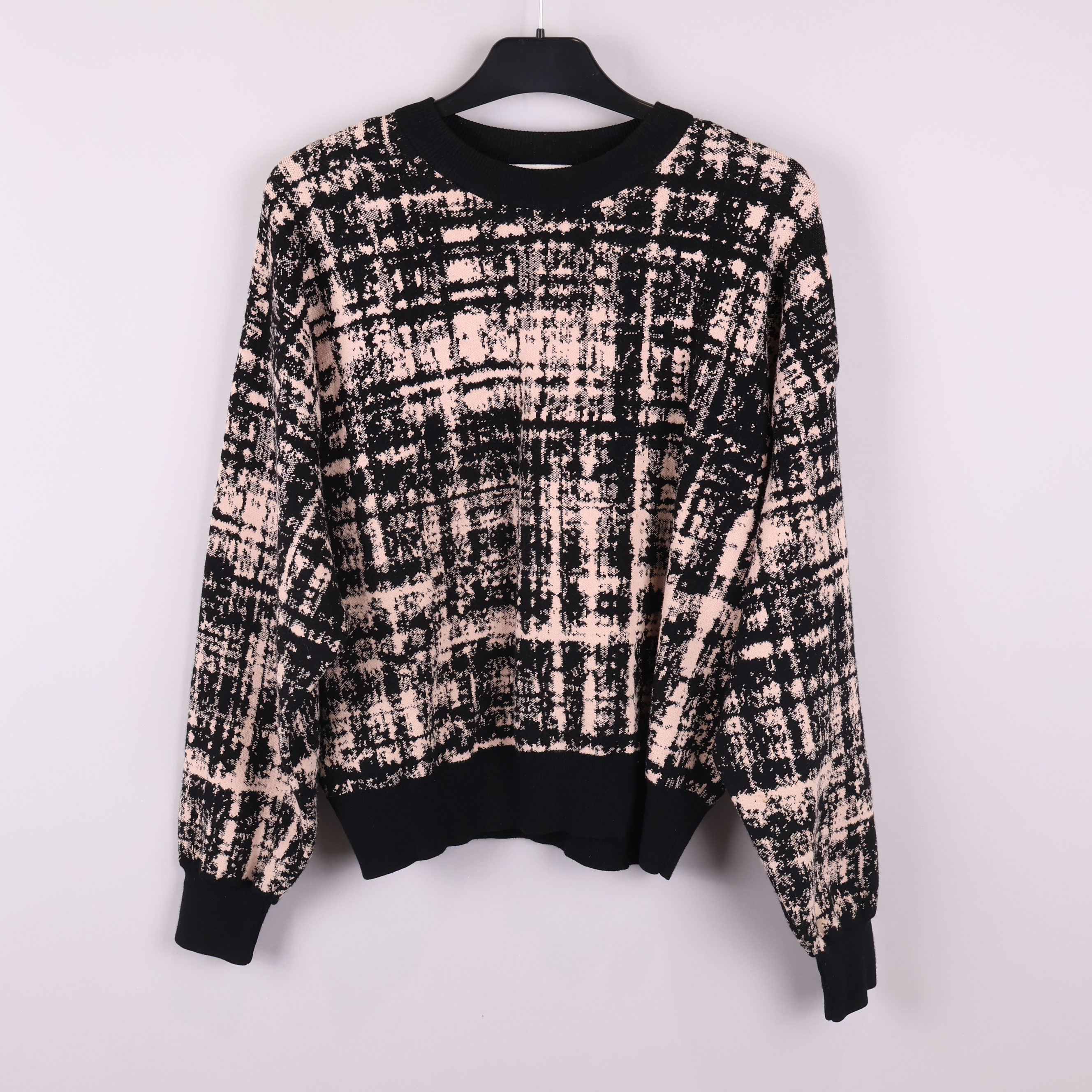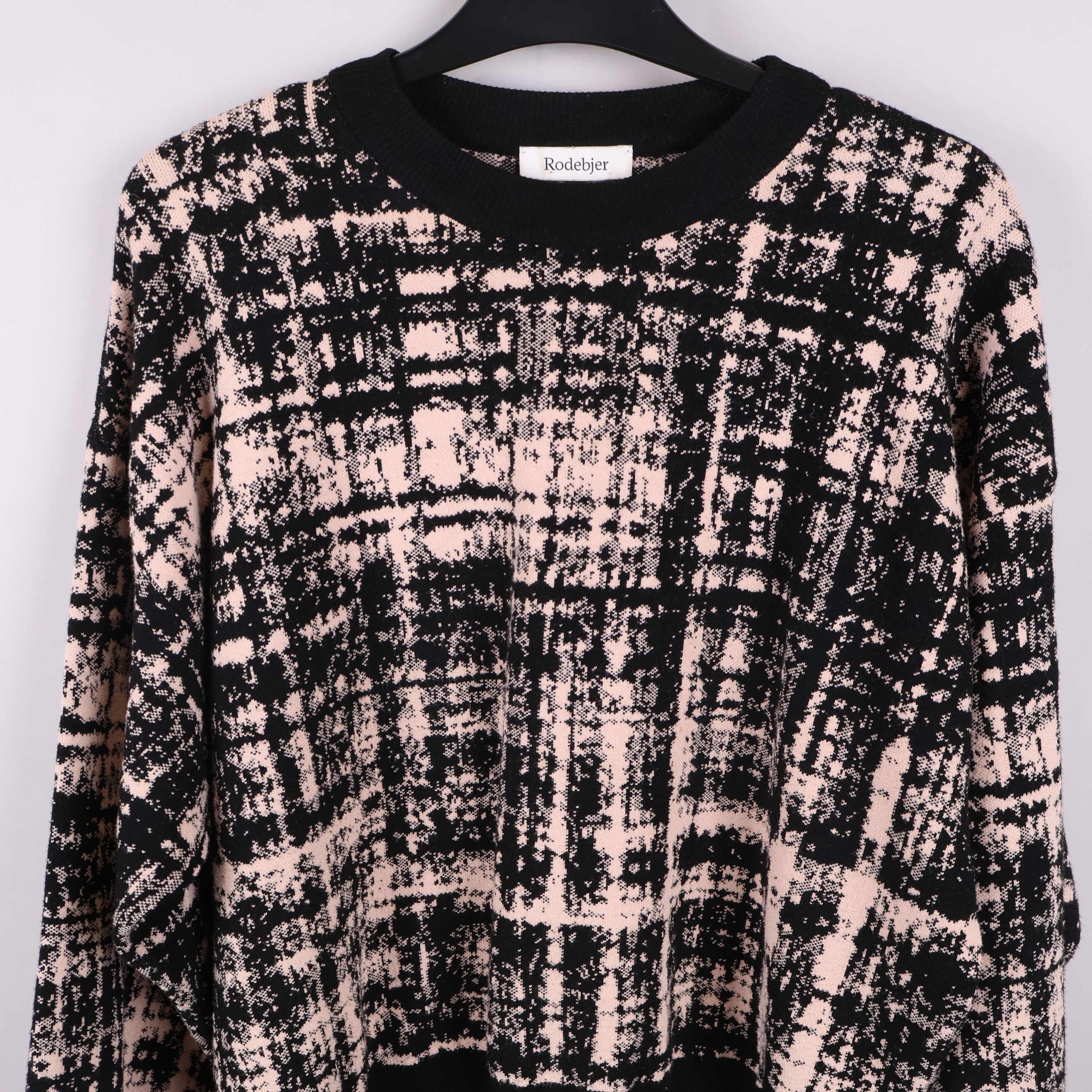 Mjuk tröja från Rodebjer i en unik grafisk design med rosa och svarta toner. Modellen har breda, ribbade muddar vid ärmslut och nederkant som ger en skön och avslappnad passform. Detaljerad struktur med modern check-mönster och rundad hals.