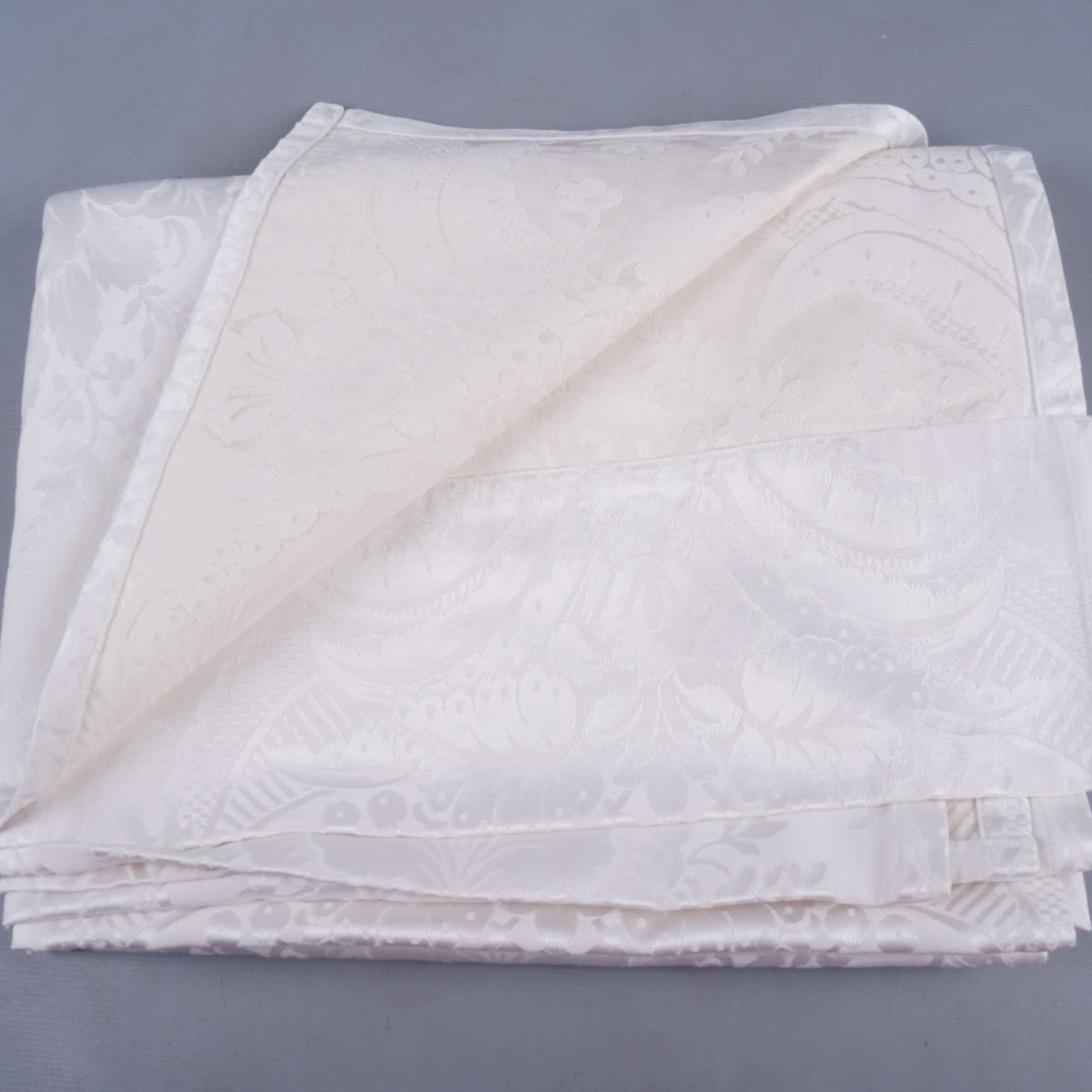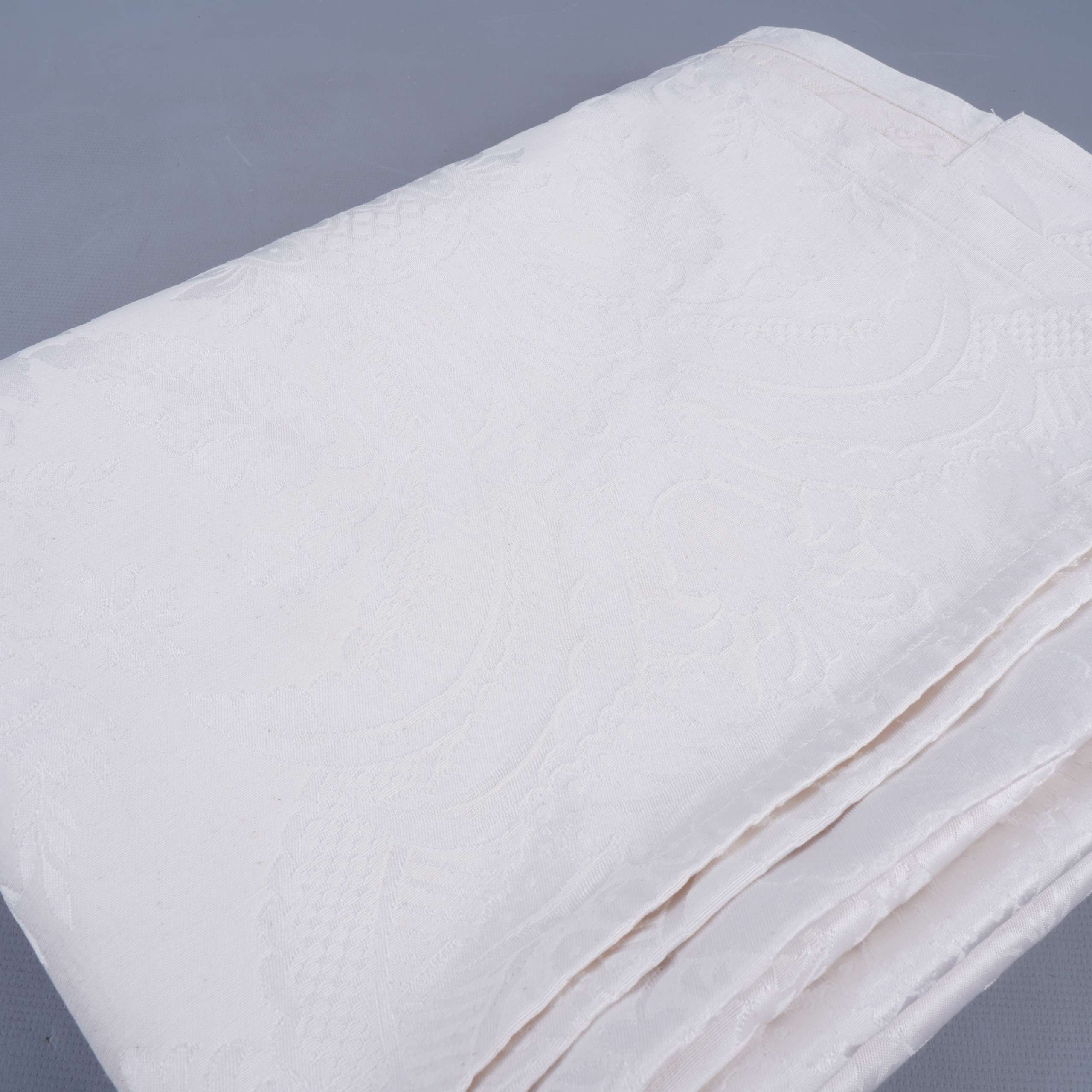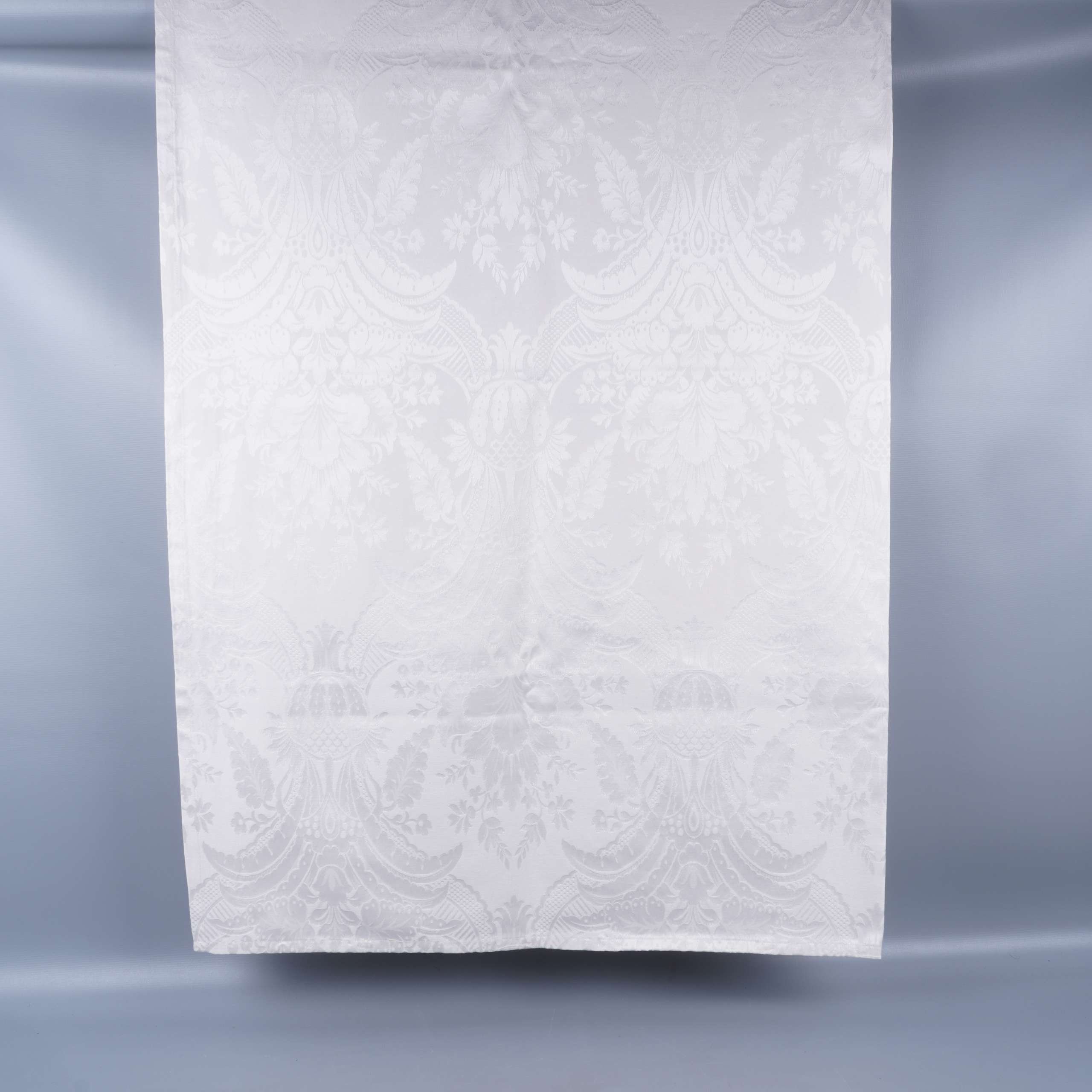 Elegant gardin med klassiskt mönster i vit ton som ger ett tidlöst och sofistikerat intryck. Tyget ger en härlig känsla till dukningen.