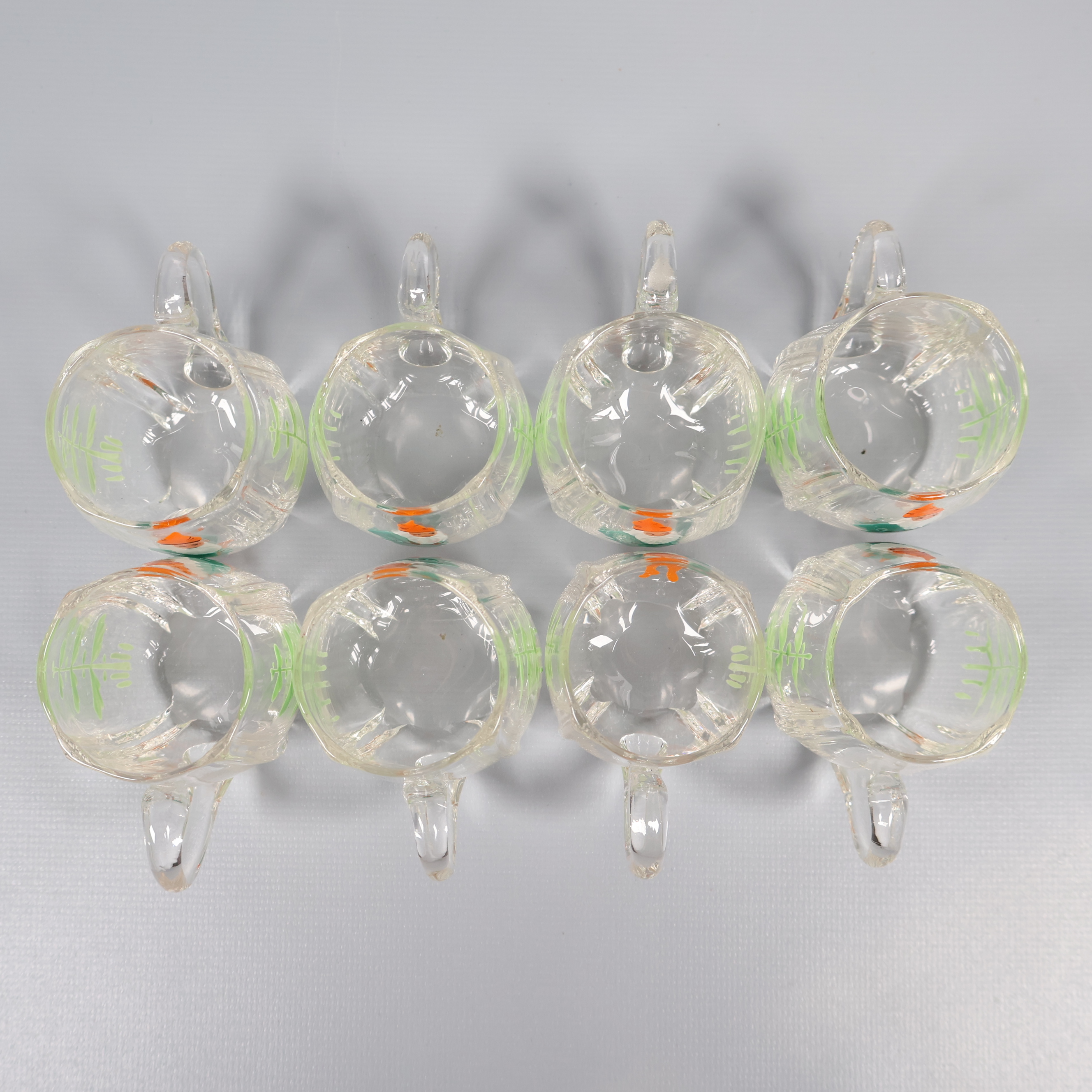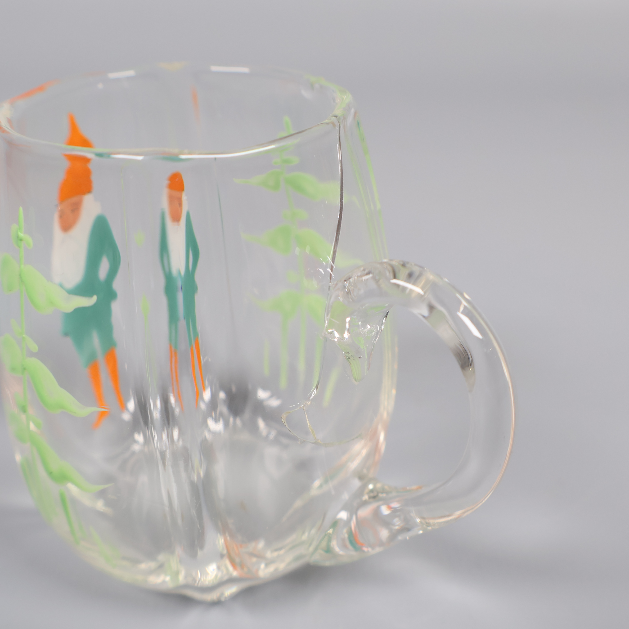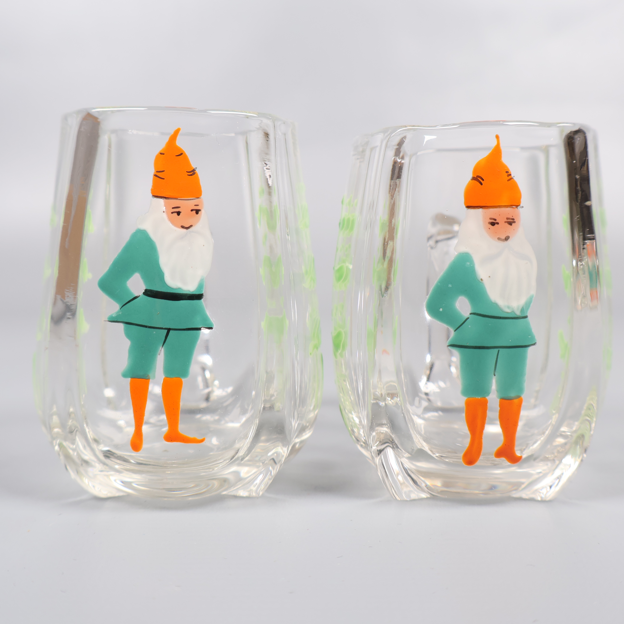Munblåsta och handmålade glöggkoppar 299 kr Product variation Antal st Beskrivning Charmiga, munblåsta glöggkoppar med handmålade tomtar och växter. Kopparna har varierande höjder. En av kopparna har en stor spricka vid handtaget Visa all beskrivning Skick Gott skick Produkten har använts men är av fin kvalitet och ska inte ha några skador eller förslitningar. Läs mer om hur vi bedömer Dimensions Höjd: 6-7 cm Färg Vit Produkten är unik och finns enbart som 1 st i lager. Fri frakt på alla köp över 990 kr. 14 dagars ångerrät.