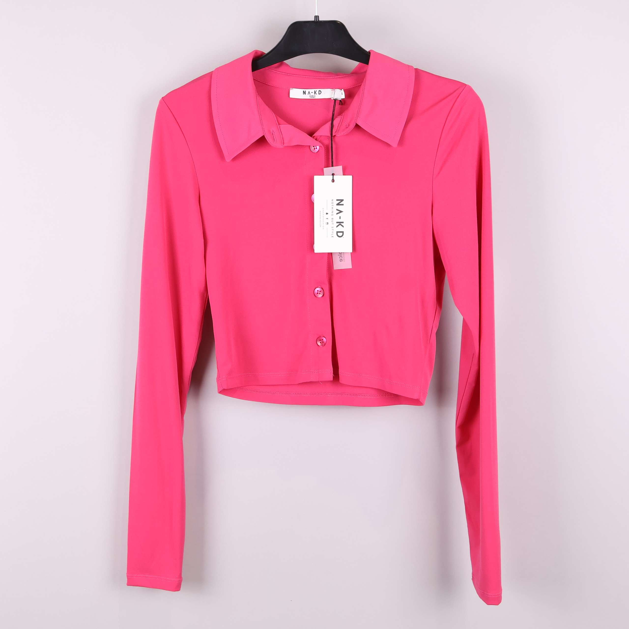 Trendig långärmad tröja med krage och knappar framtill i en cerise. Tillverkad i mjukt material som innehåller elastan för ökad komfort och passform.