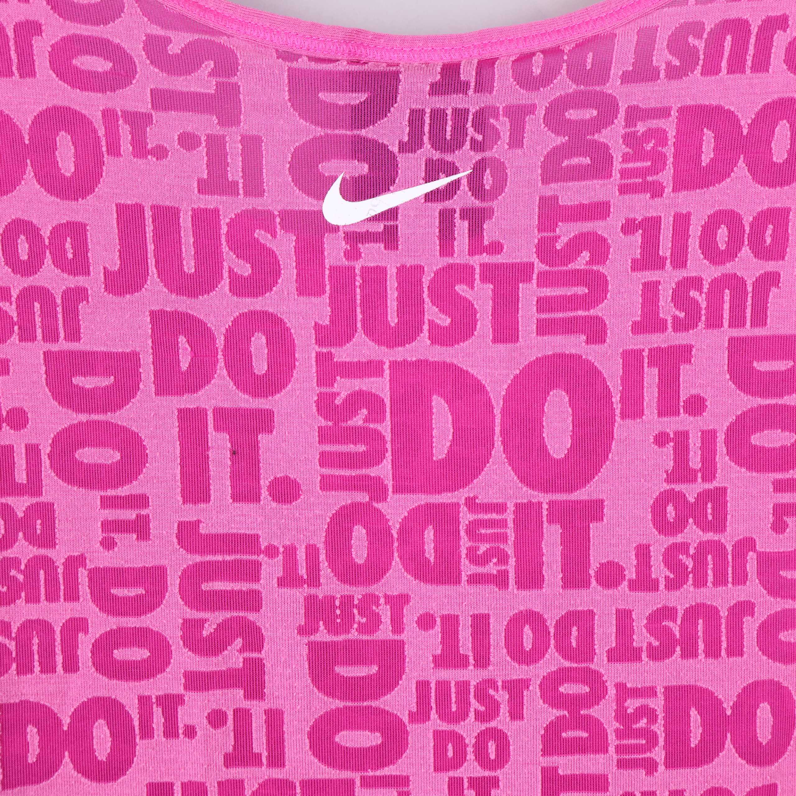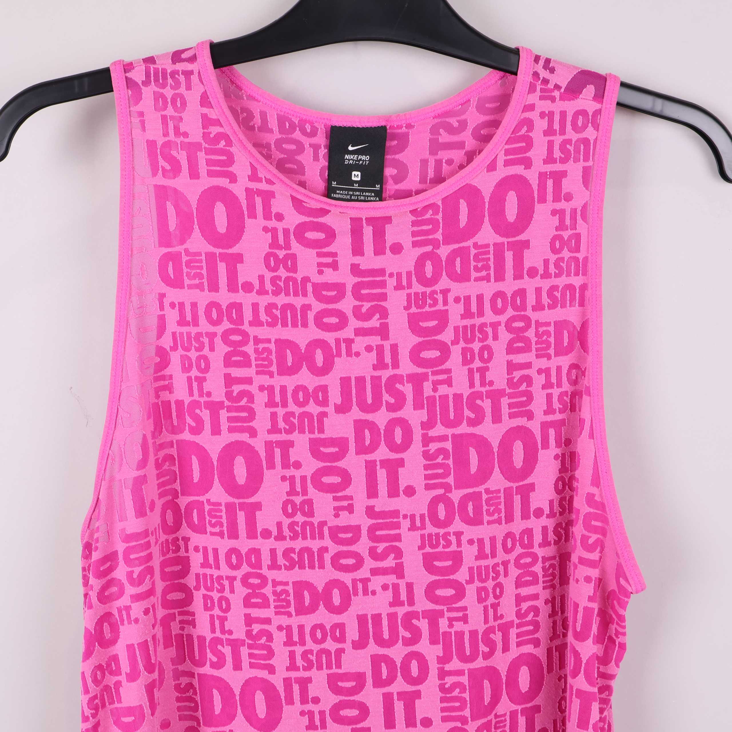 Sportigt linne från Nike i intensiv rosa färg med genomgående textmönster och ikoniska 'Just Do It.'-tryck över hela tyget. Avslappnad passform och bekväm Dri-FIT-kvalitet.