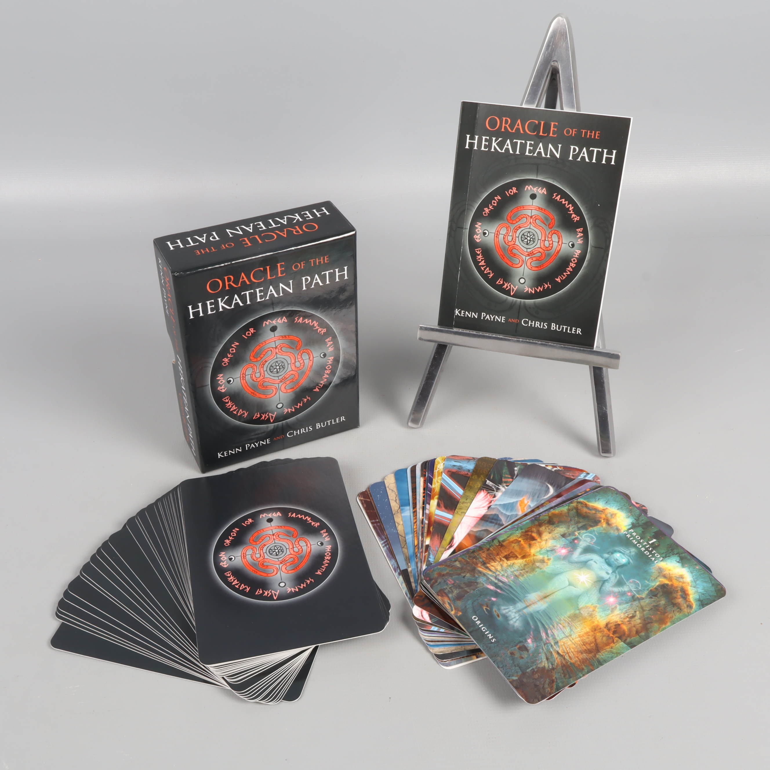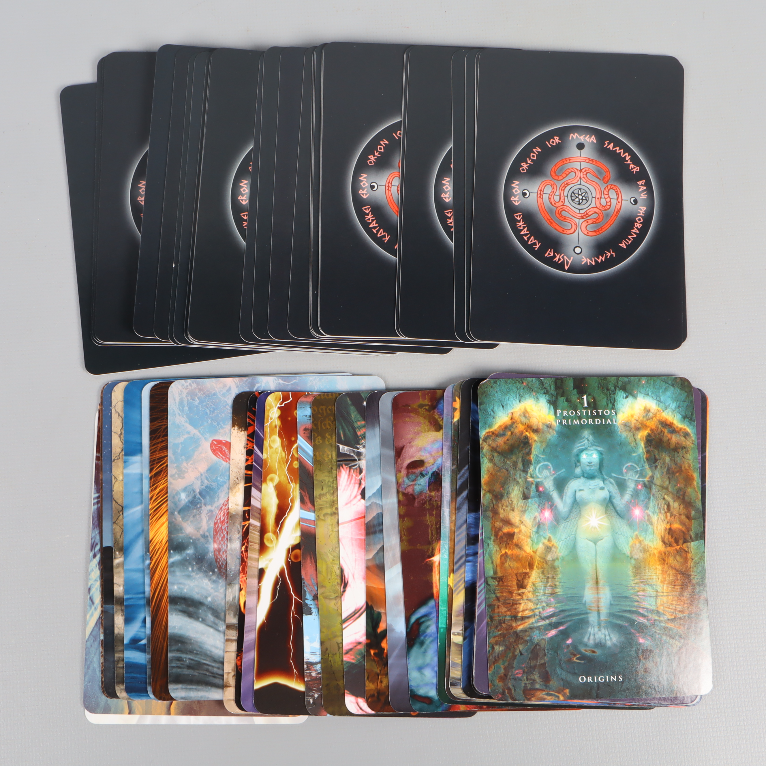 Unikt set med 60 illustrerade orakelkort och tillhörande guidebok på engelska. Korten har fantasifulla motiv och en mörk, ikonisk design med mystiska symboler. Guideboken ger tydliga tolkningar för varje kort. Perfekt för dig som vill utforska nya sätt att tolka symbolik.