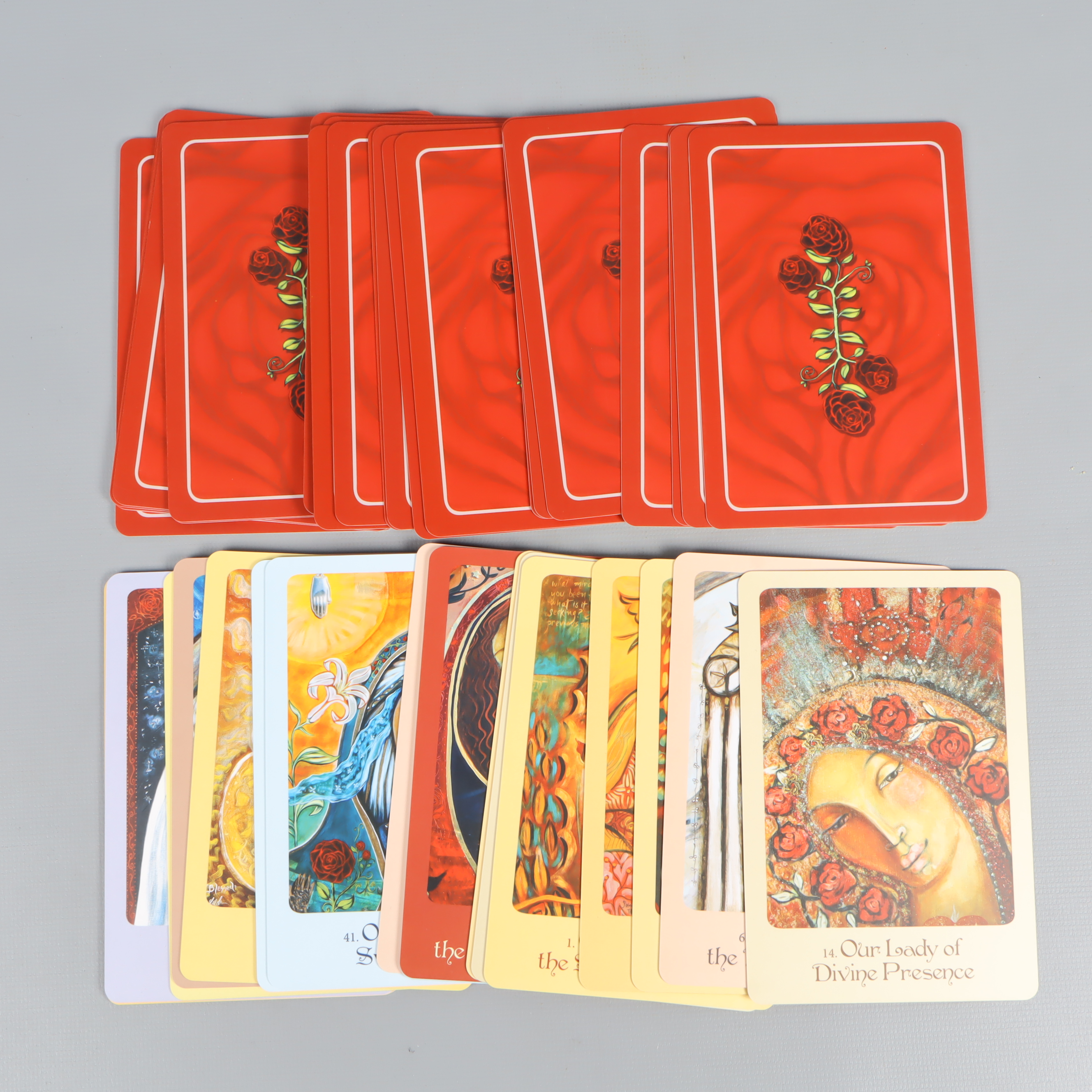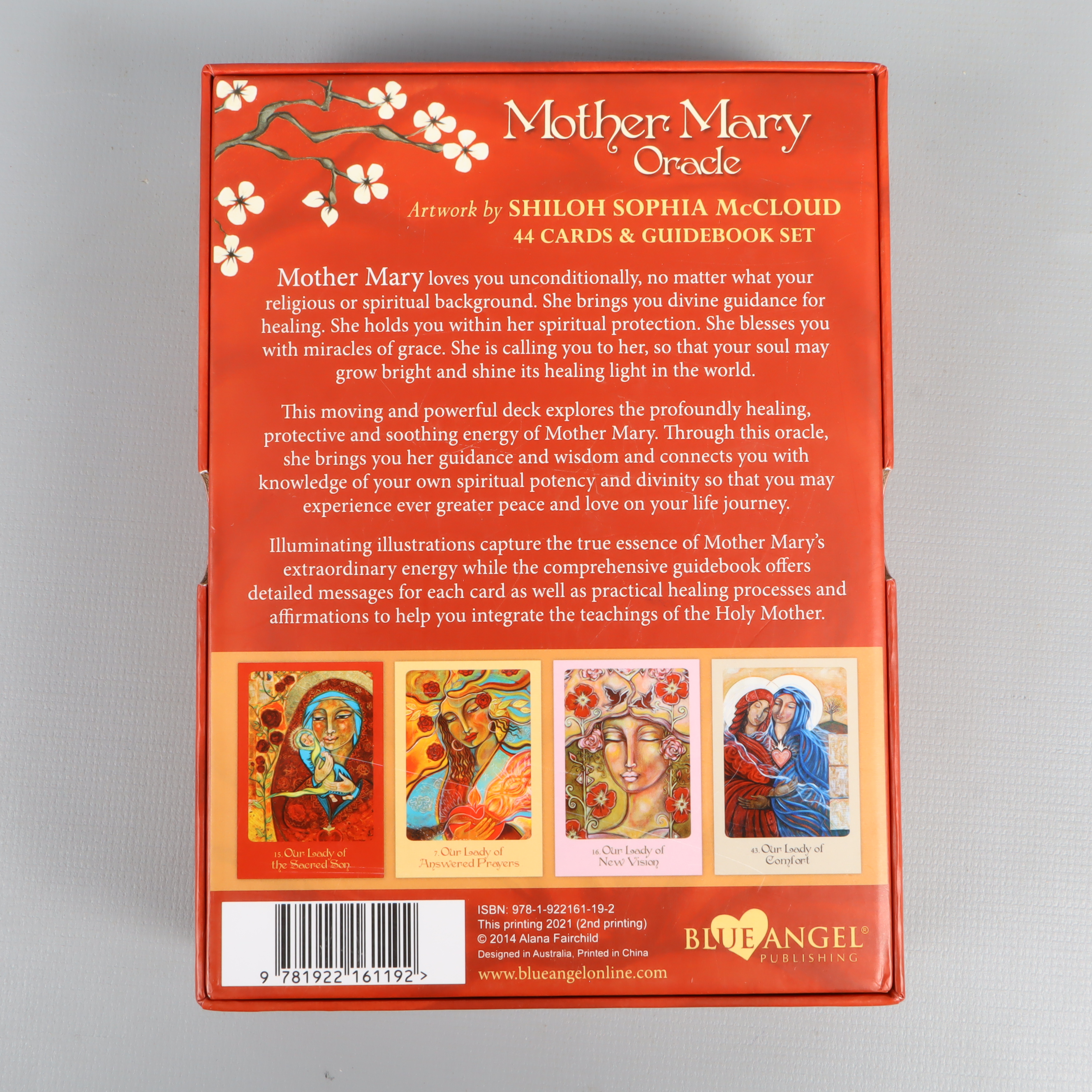 Färgstarka orakelkort med guidebok och vackert illustrerade motiv inspirerade av Moder Maria. Kortens baksidor och låda har en djup röd färg med dekorativa detaljer. Korten känns rejäla och är lätta att hantera. Guideboken är på engelska och innehåller utförliga tolkningar för varje kort.