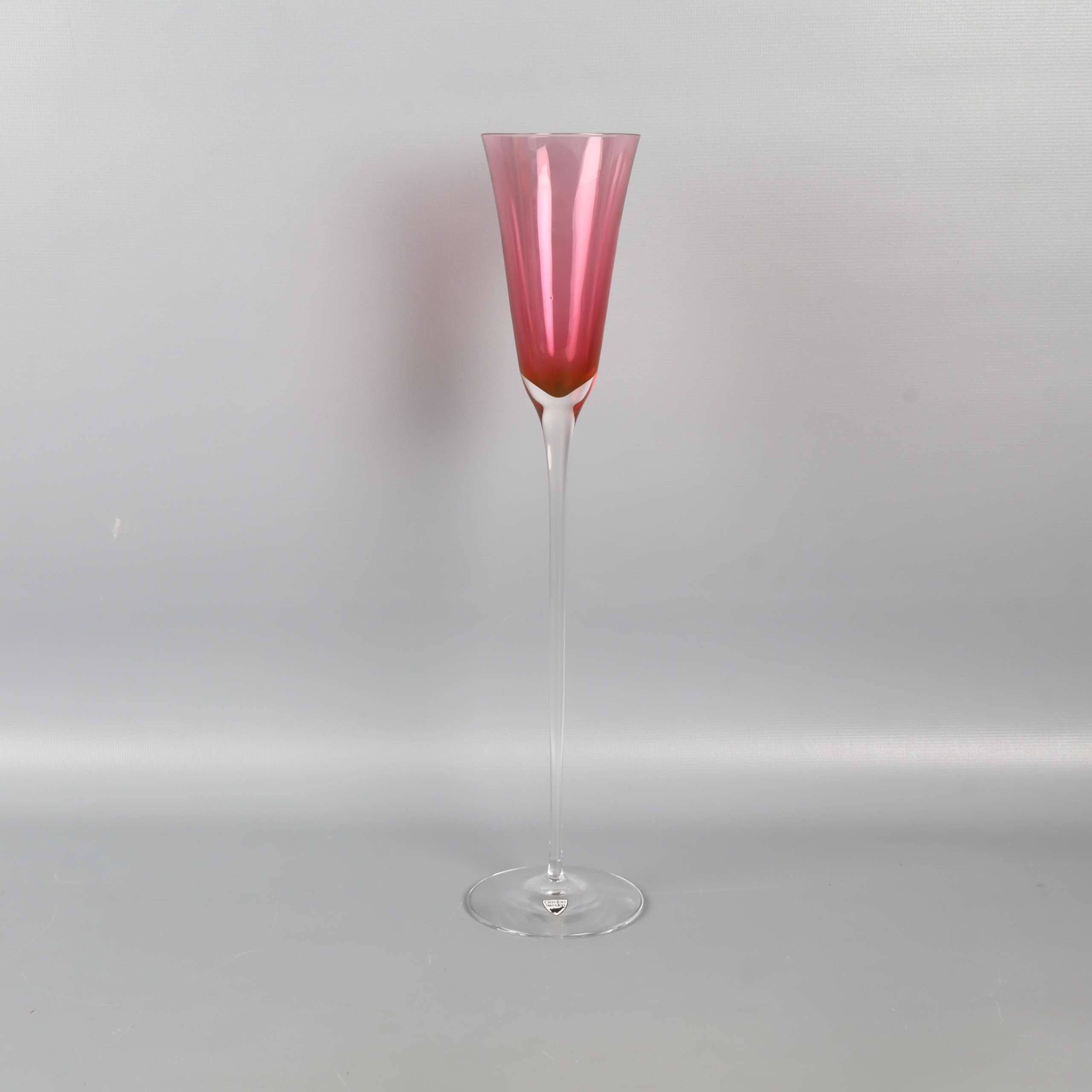 Elegant högt glas med lång smal fot och rosa kupa som ger en modern och exklusiv känsla. Kupan har mjuka former och glaset är genomskinligt framtill med snygg färgtoning. Perfekt till dig som gillar unik design och detaljer med det lilla extra.