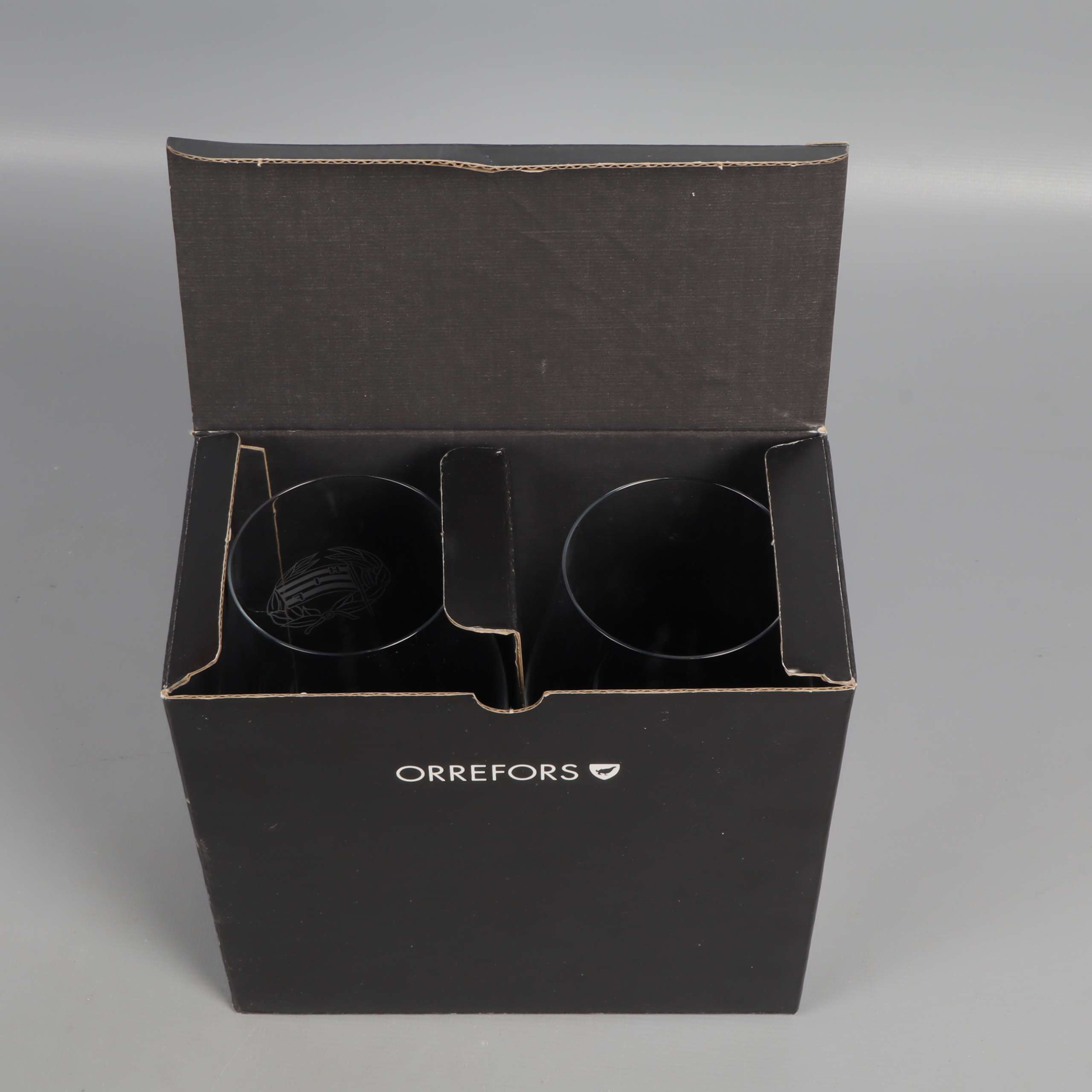 Två eleganta ölglas från Orrefors med graverad dekor på kupan och stilren fot. Transparent kristallglas ger en exklusiv känsla som passar till både fest och vardag. Levereras i originalförpackning och har modern, tidlös design.