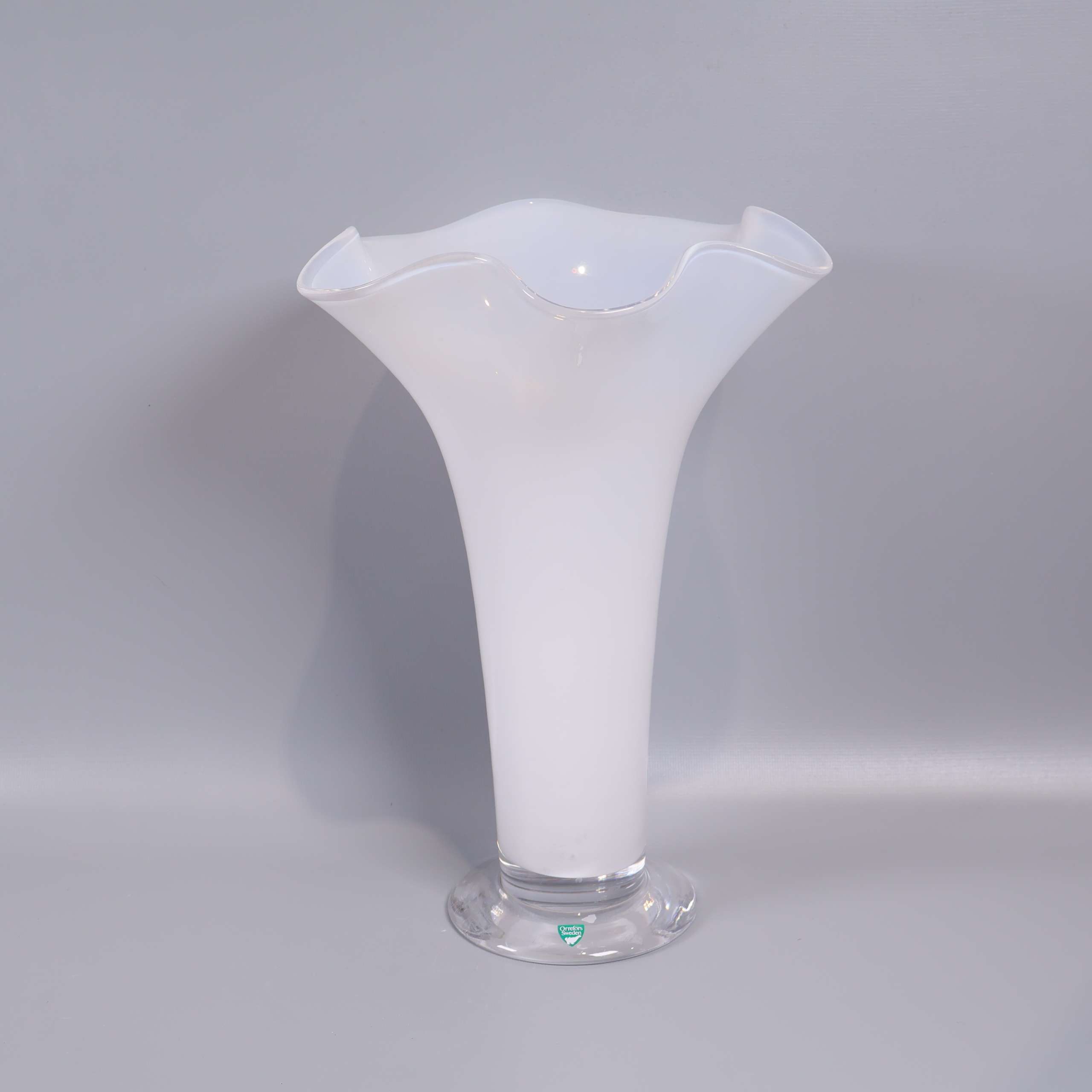 Orrefors - Kantarell - Anne Nilsson - Vit vågig glas vas